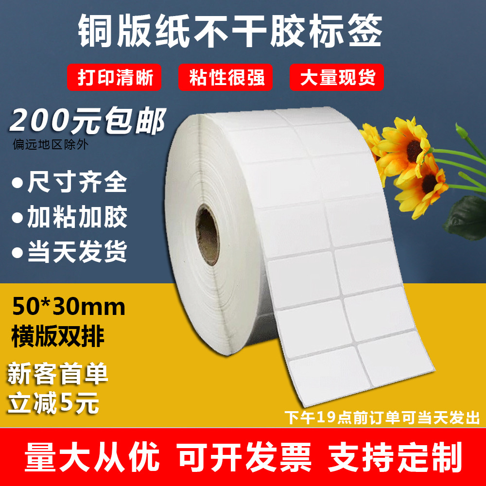 铜板纸不干胶标签打印纸50X30标签贴纸封口贴批发供应商姓名贴