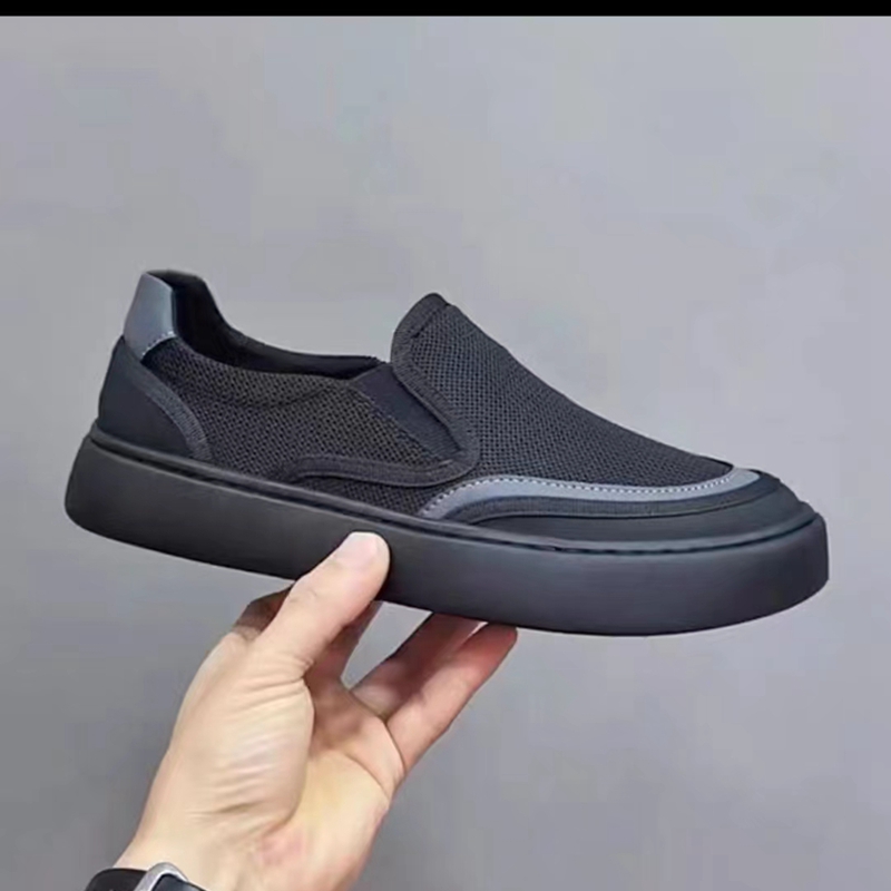 老北京布鞋男2023夏季新款透氣飛織網面休閒平板鞋套腳懶人樂福鞋