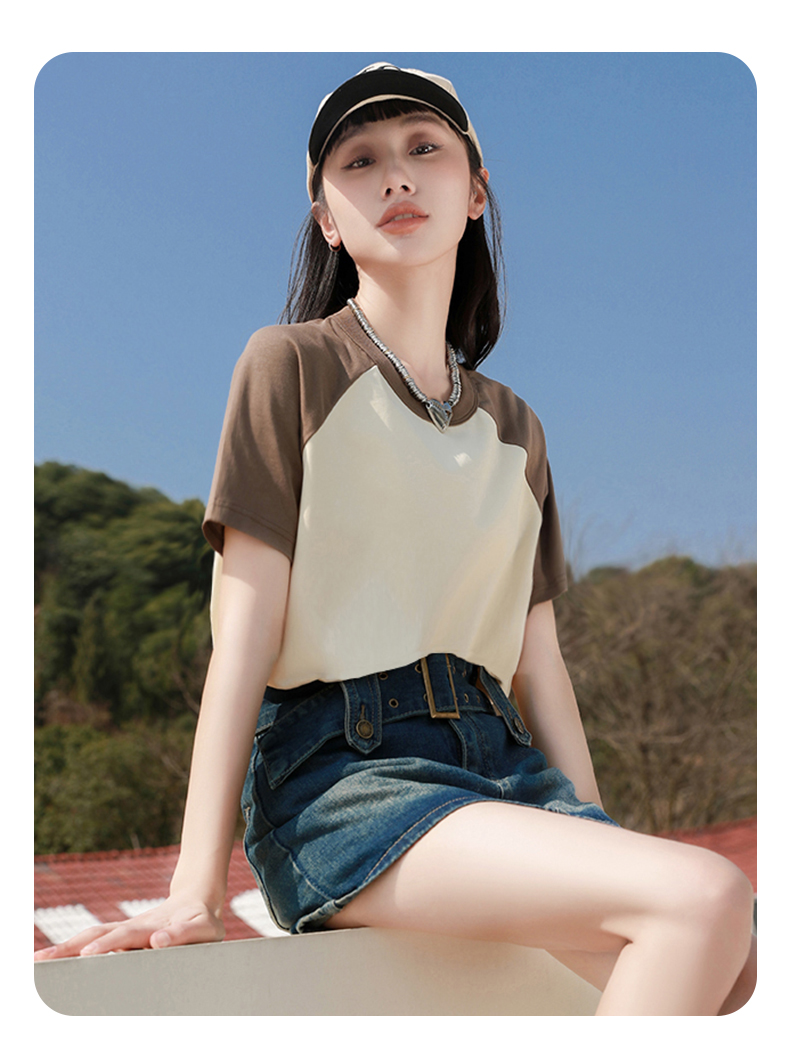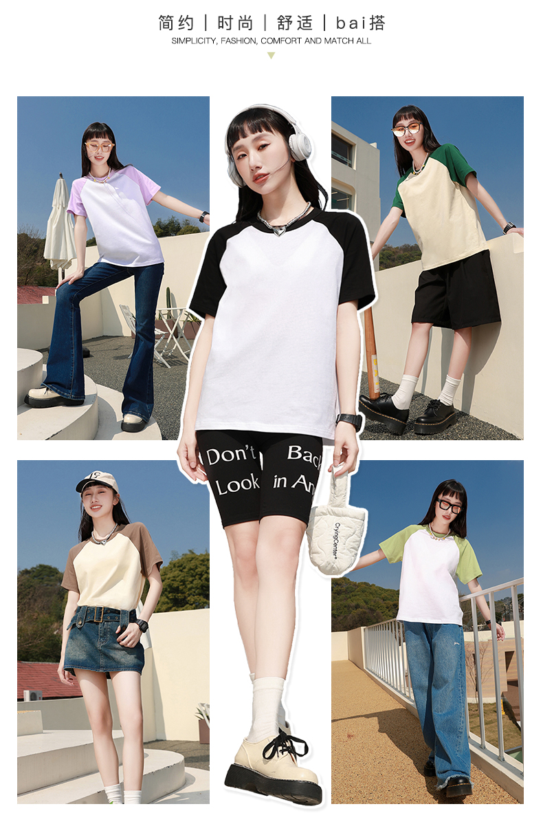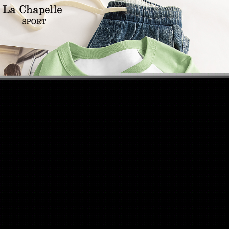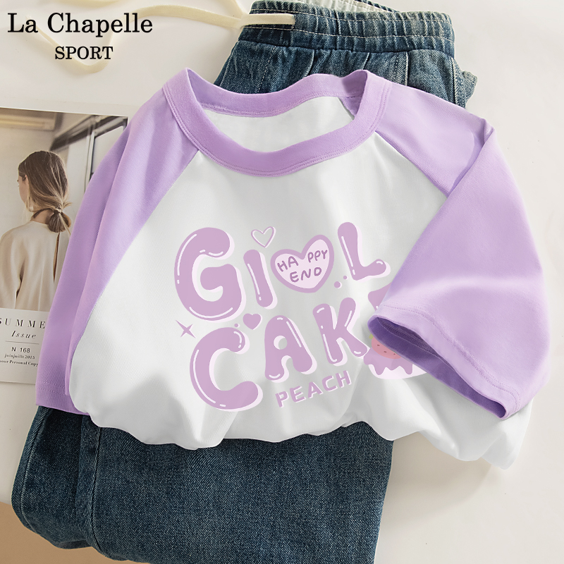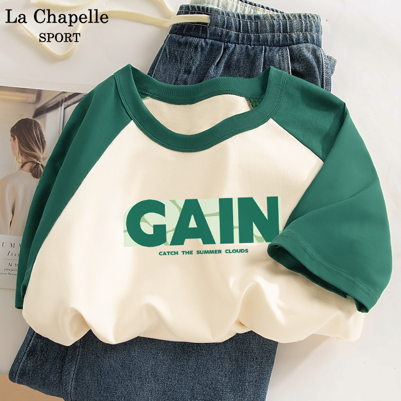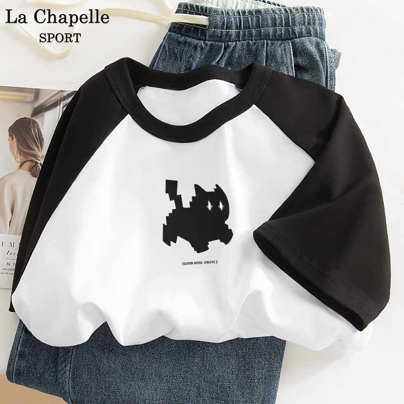 拉夏貝爾正肩短袖女2023新款夏季純棉美式復古T恤撞色插肩T恤衫X