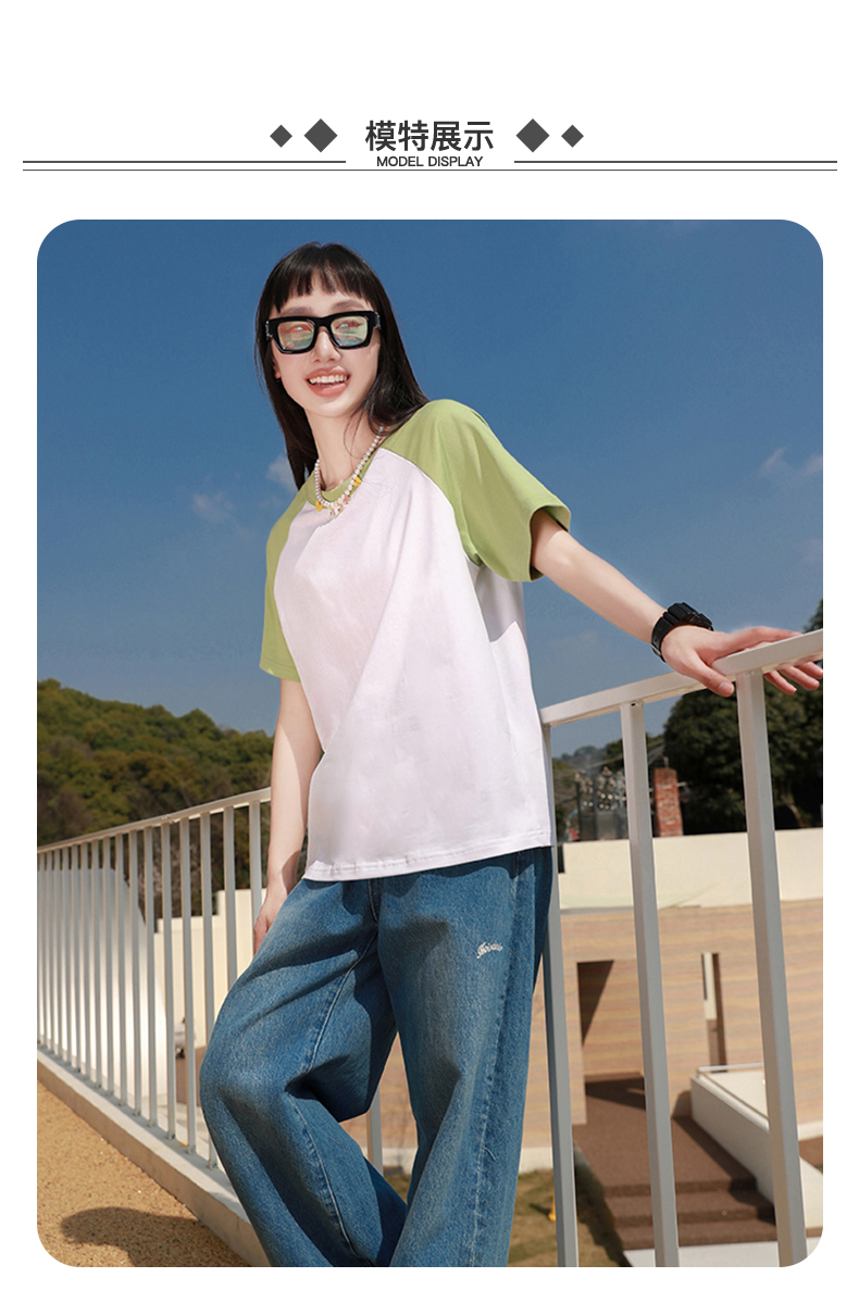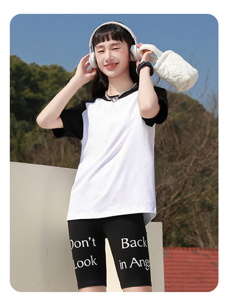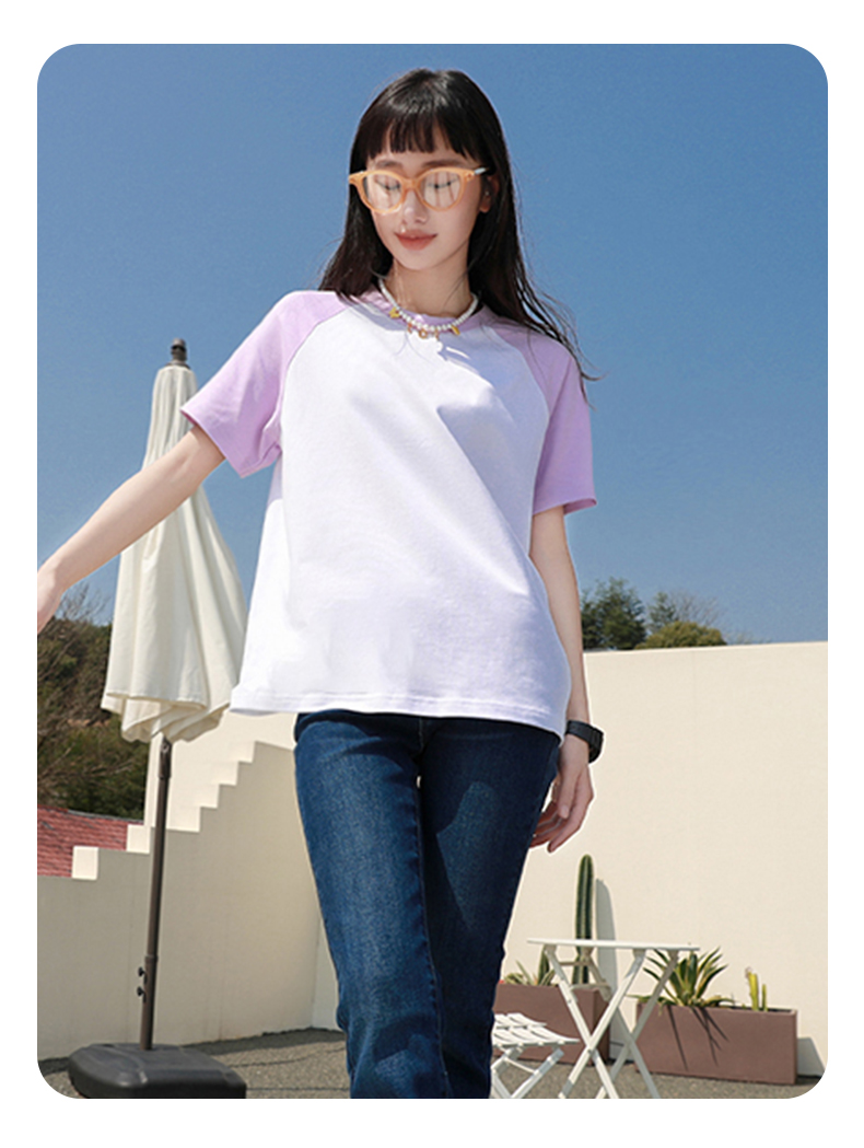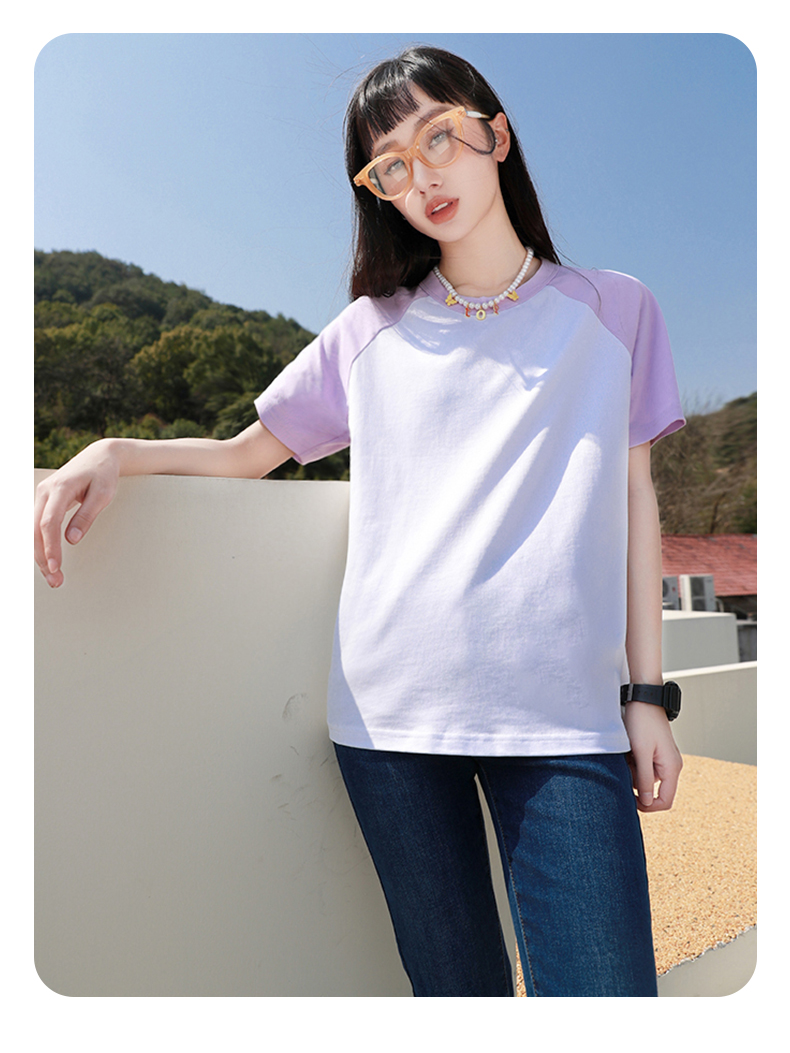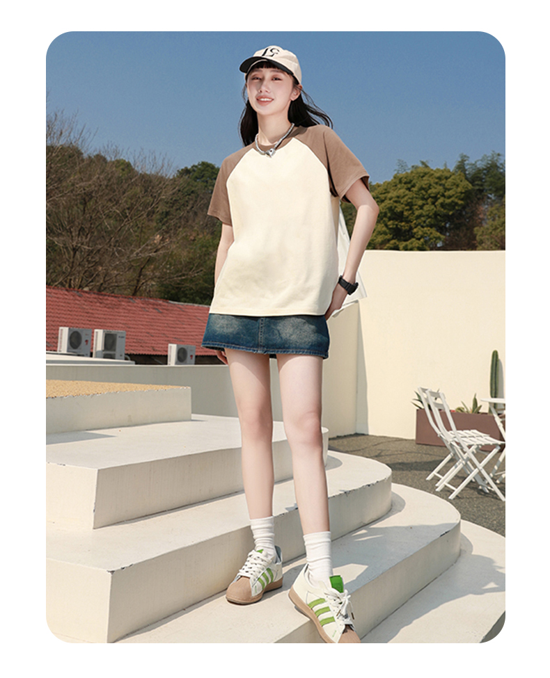 拉夏貝爾正肩短袖女2023新款夏季純棉美式復古T恤撞色插肩T恤衫X