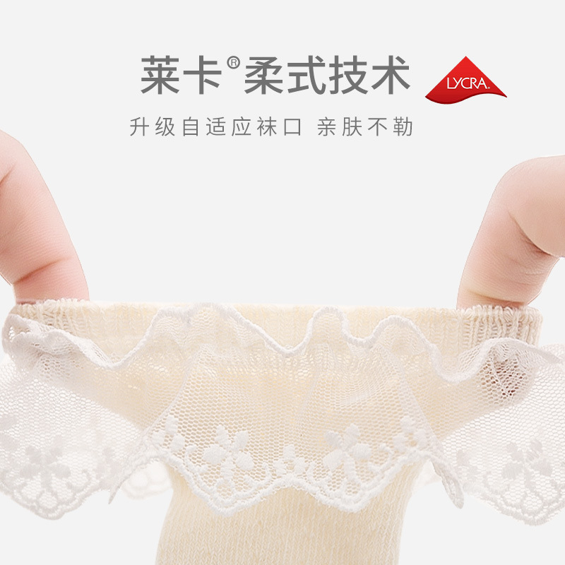 女童袜子夏季薄款网眼镂空蕾丝花边夏天公主宝宝婴儿松口中筒棉袜