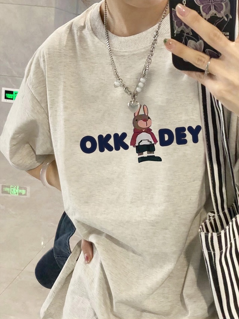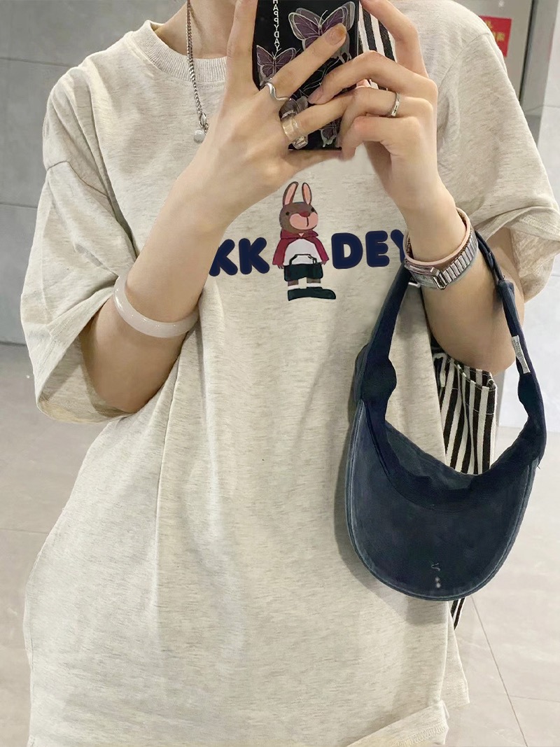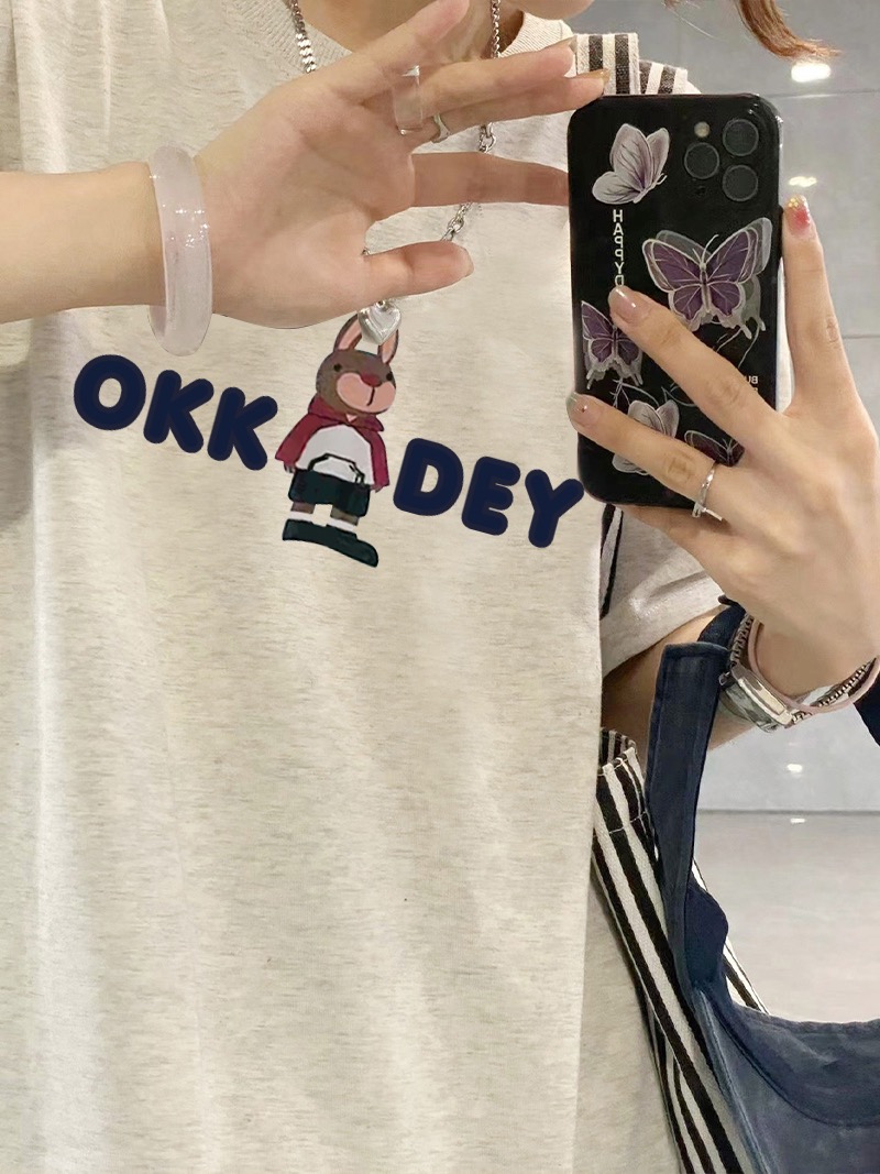 漂亮純棉灰色短袖T恤女夏季設計感小眾美式正肩上衣寬鬆半袖T恤