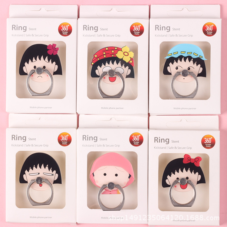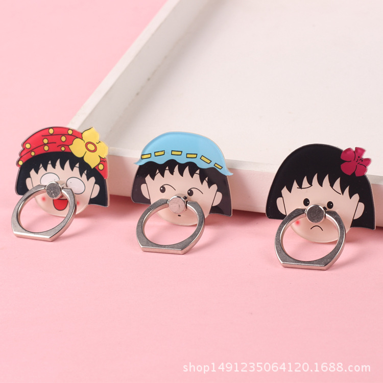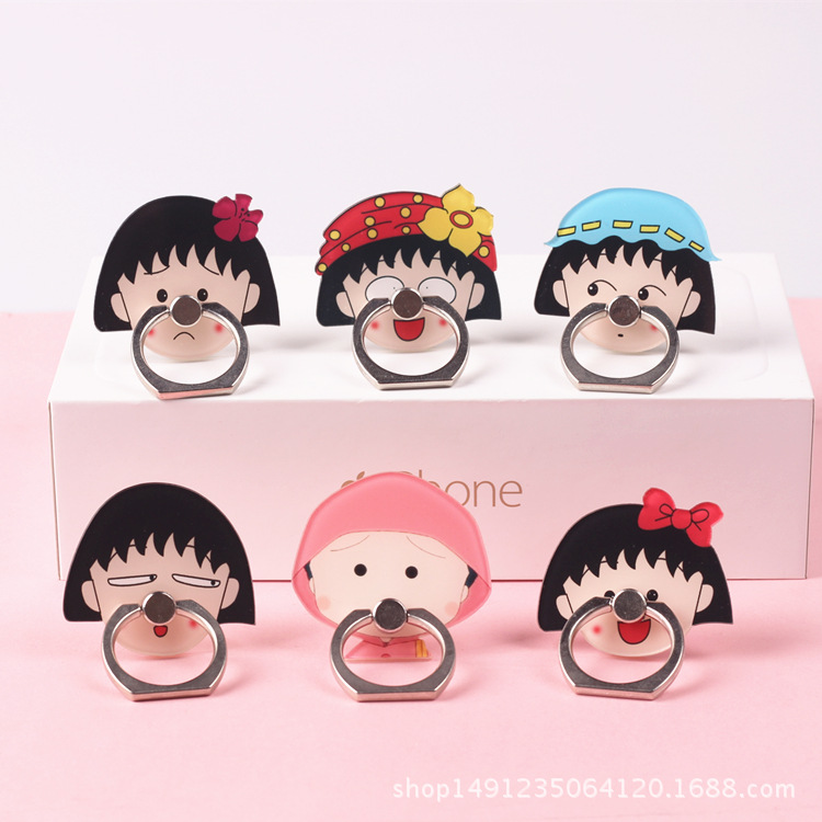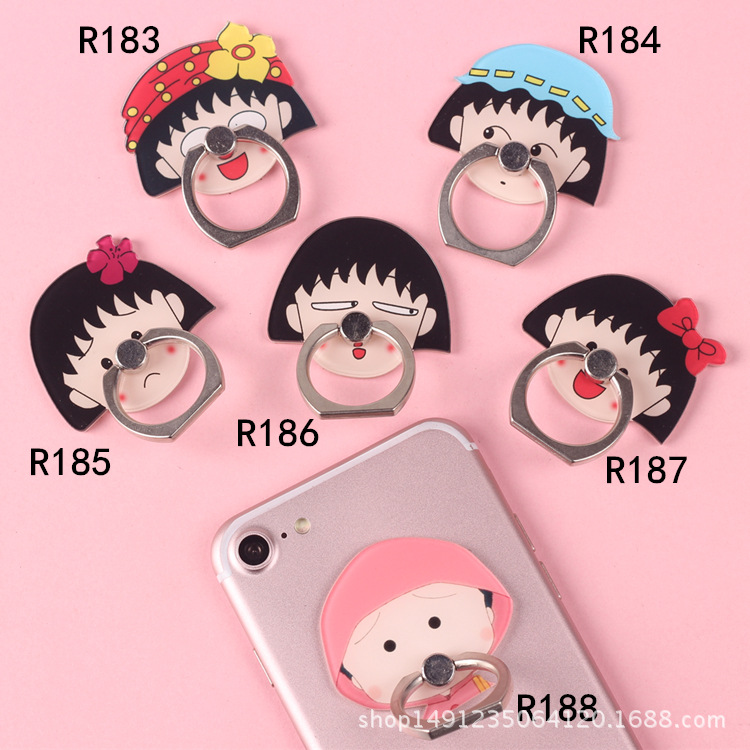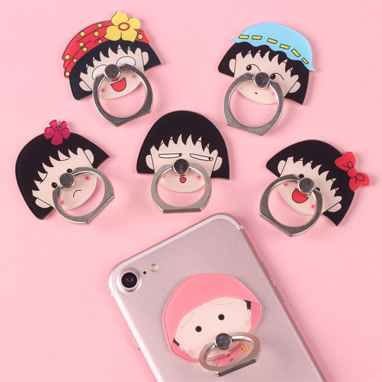 日韩卡通创意樱桃小丸子手机指环扣懒人平板支架logo金属手环扣女