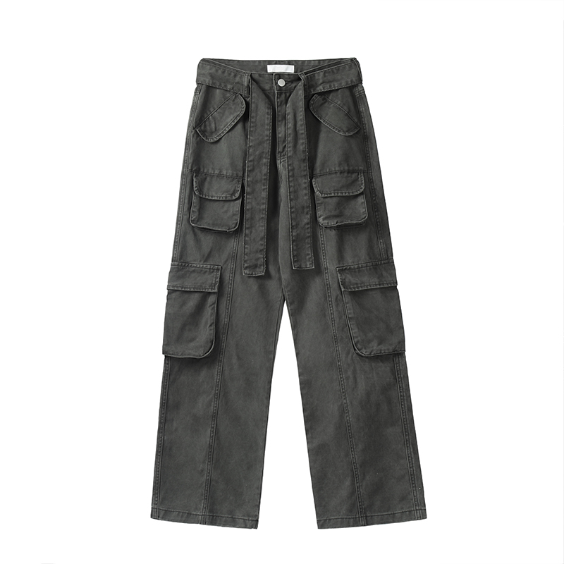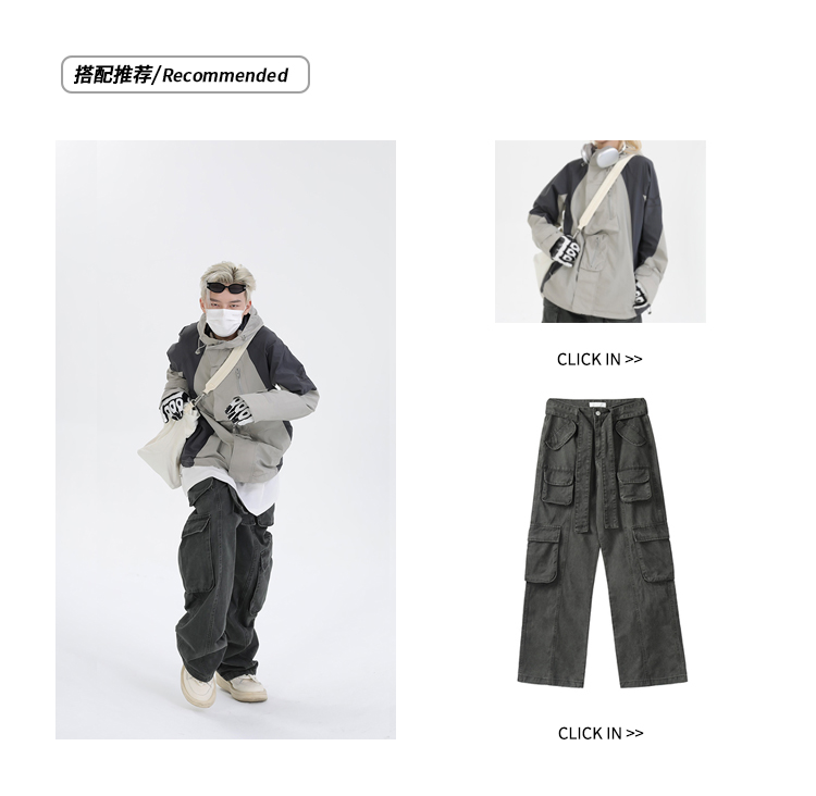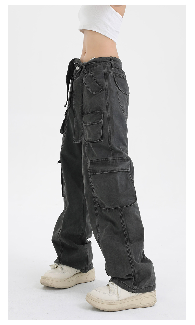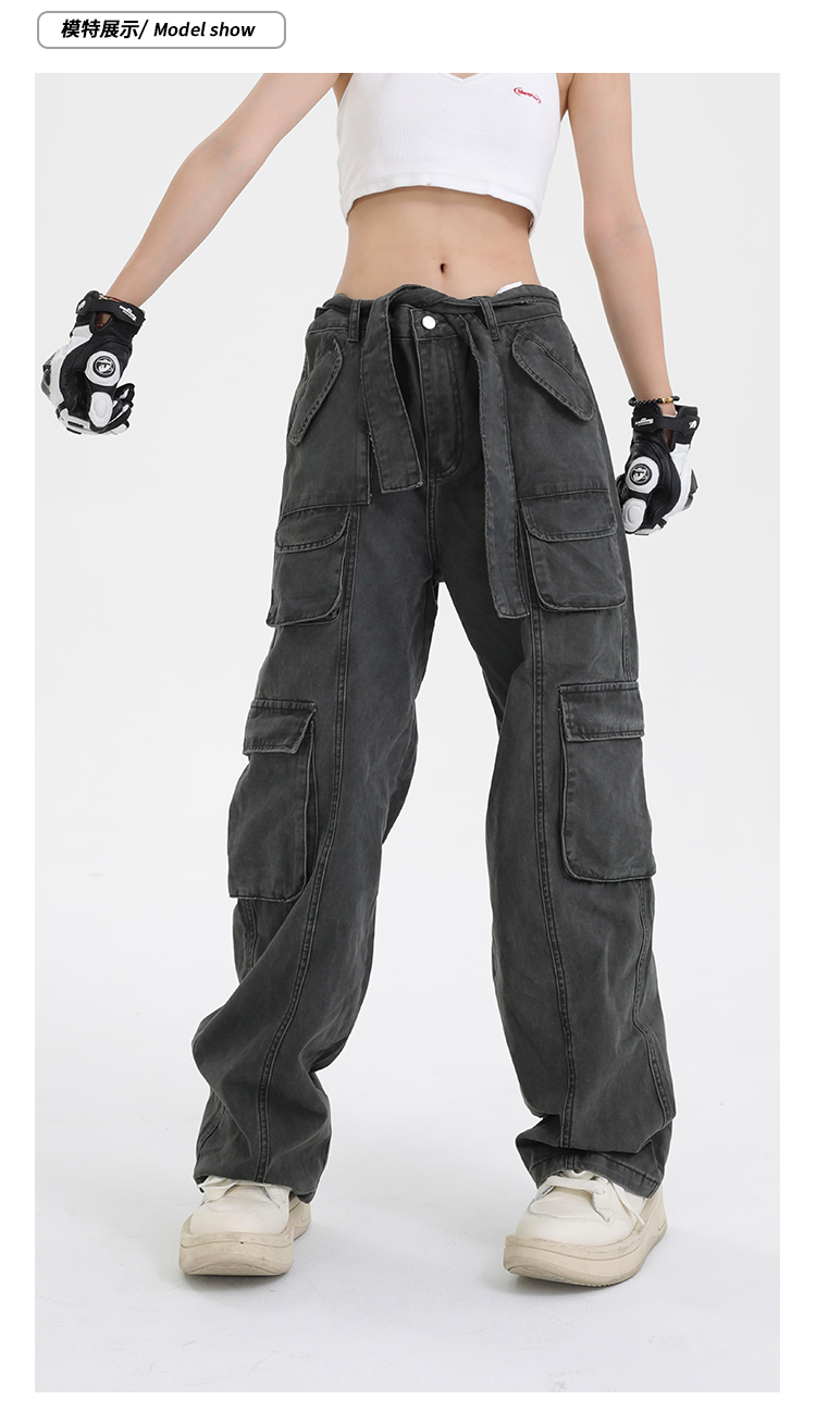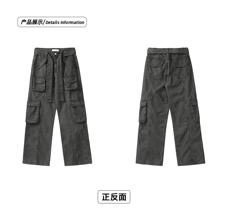 NECOYEP2023美式街頭男女潮多口袋設計感工裝褲直筒寬鬆休閒長褲
