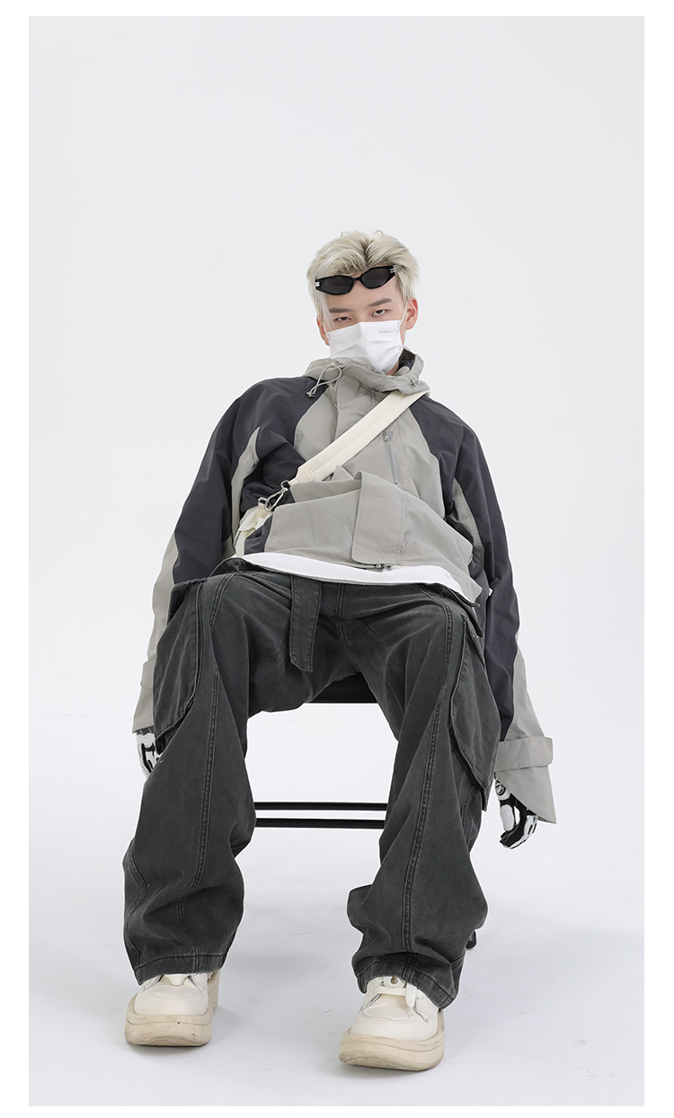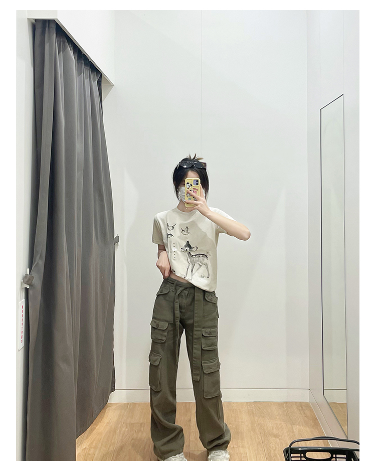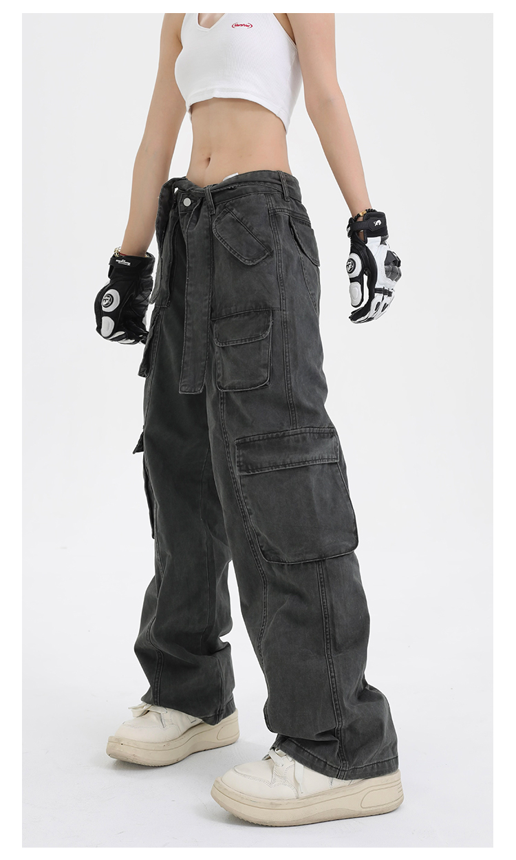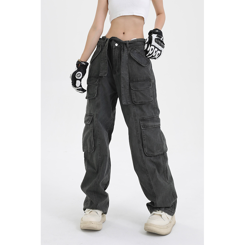 NECOYEP2023美式街頭男女潮多口袋設計感工裝褲直筒寬鬆休閒長褲