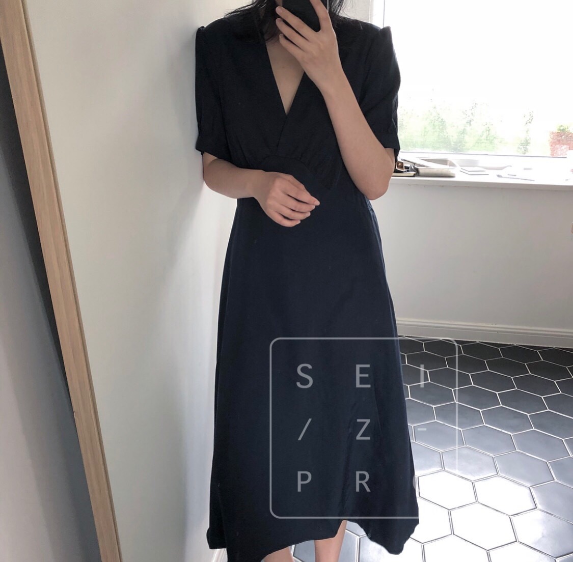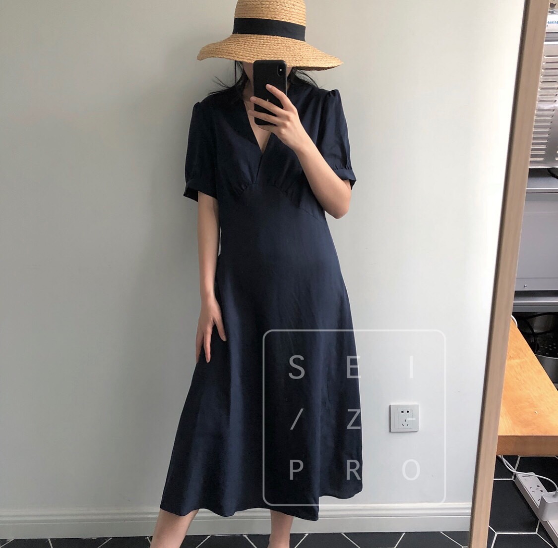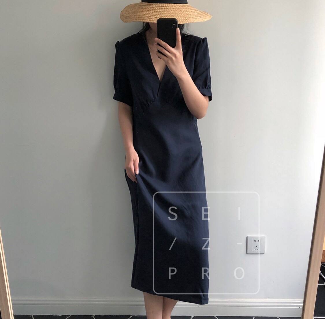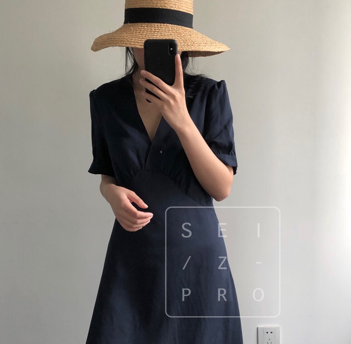 卢浮夏新款韩国简约优雅V领小性感泡泡袖短袖连衣裙高腰品质女