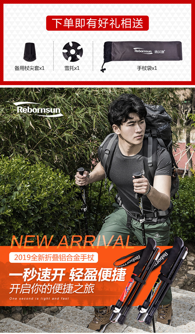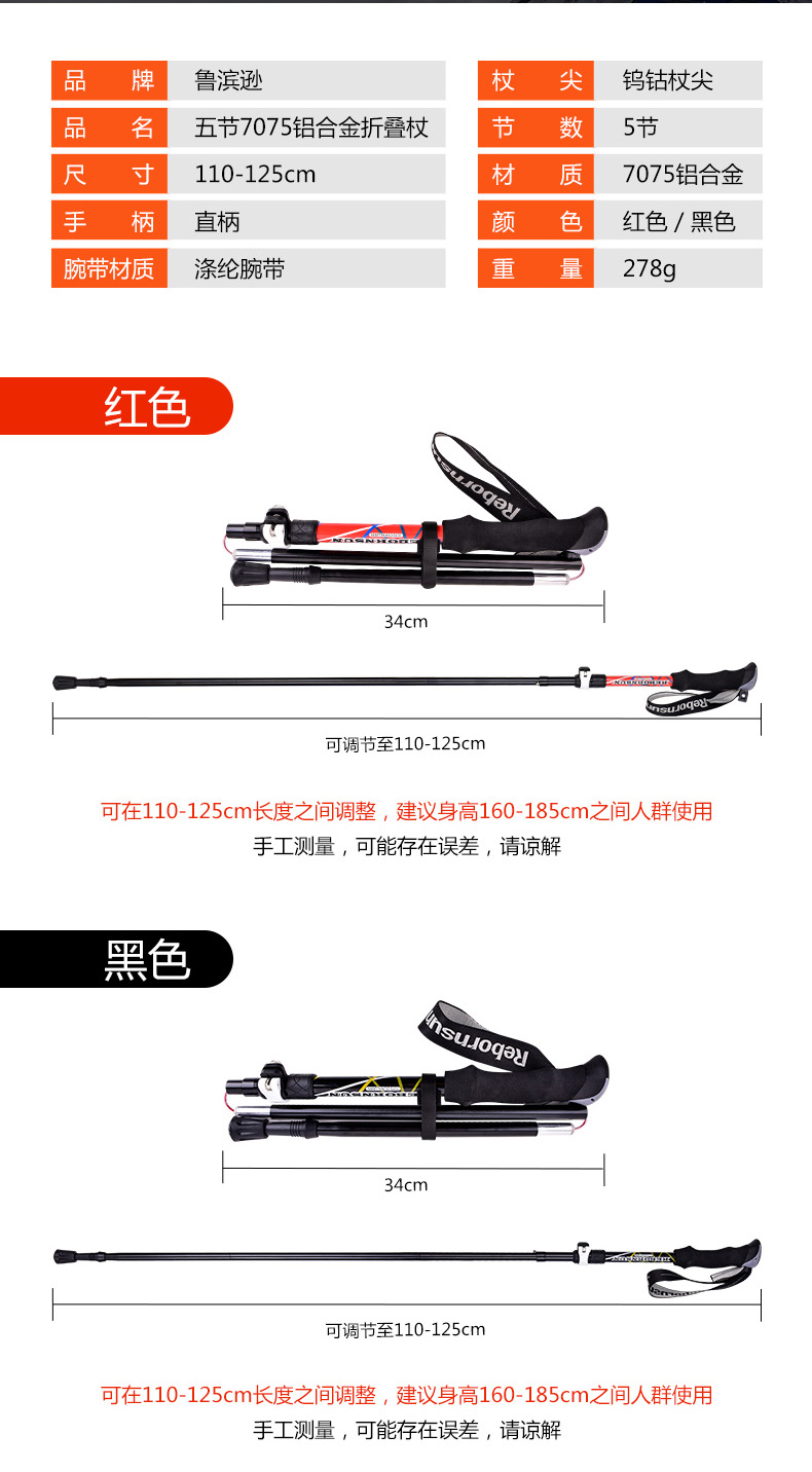 魯濱遜登山杖摺疊鋁合金超輕伸縮戶外五節超短越野跑專業爬山手杖
