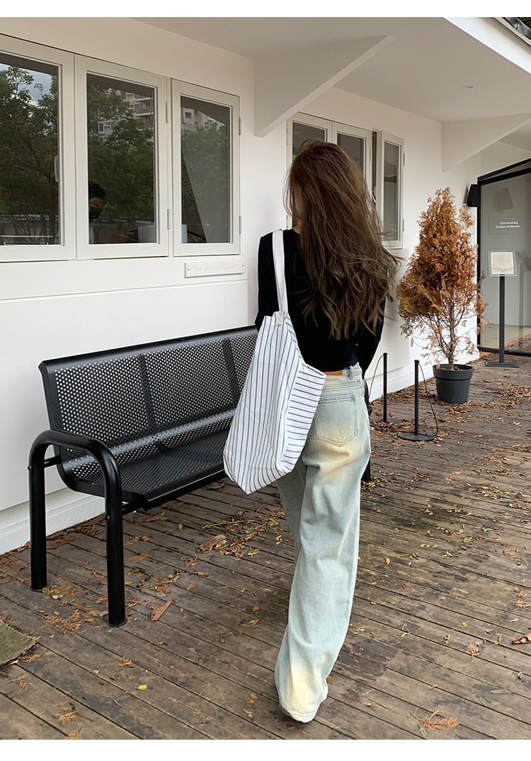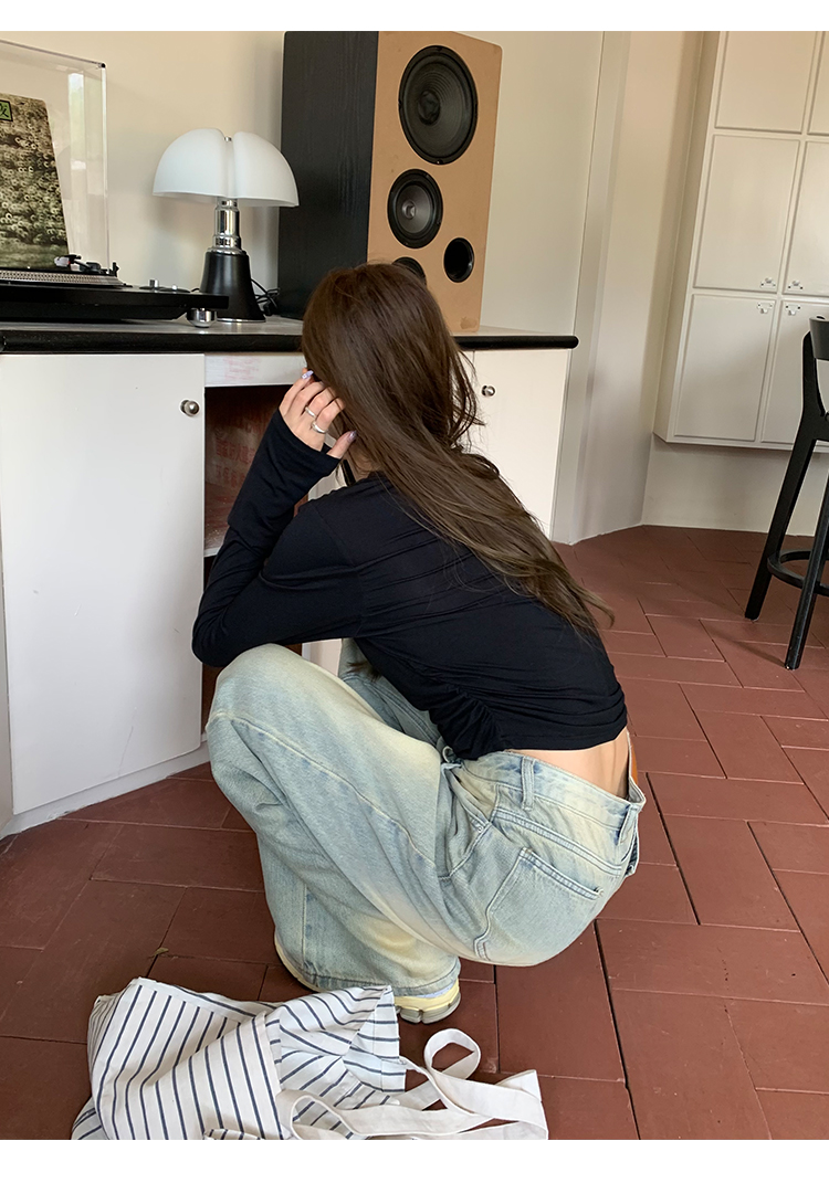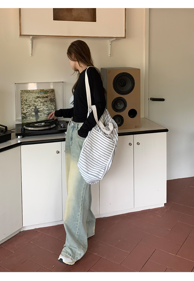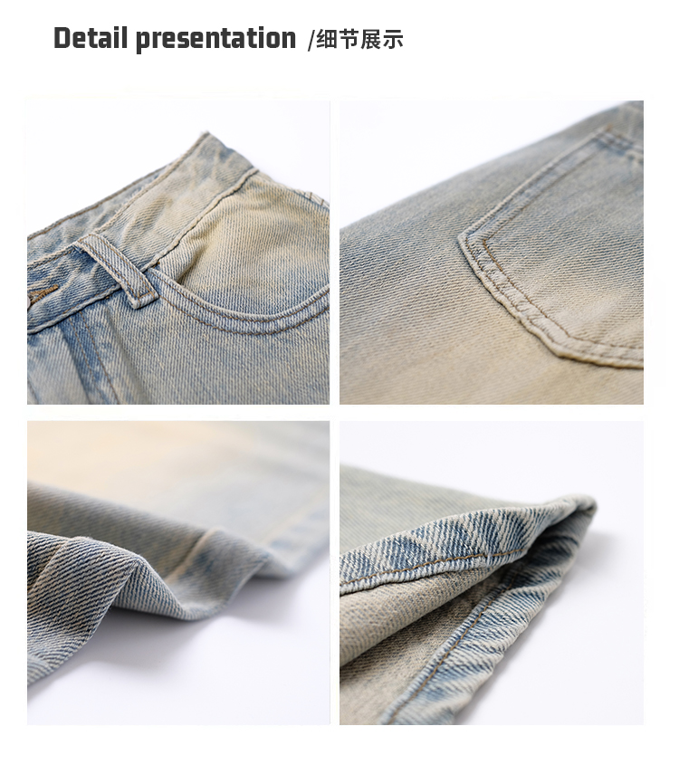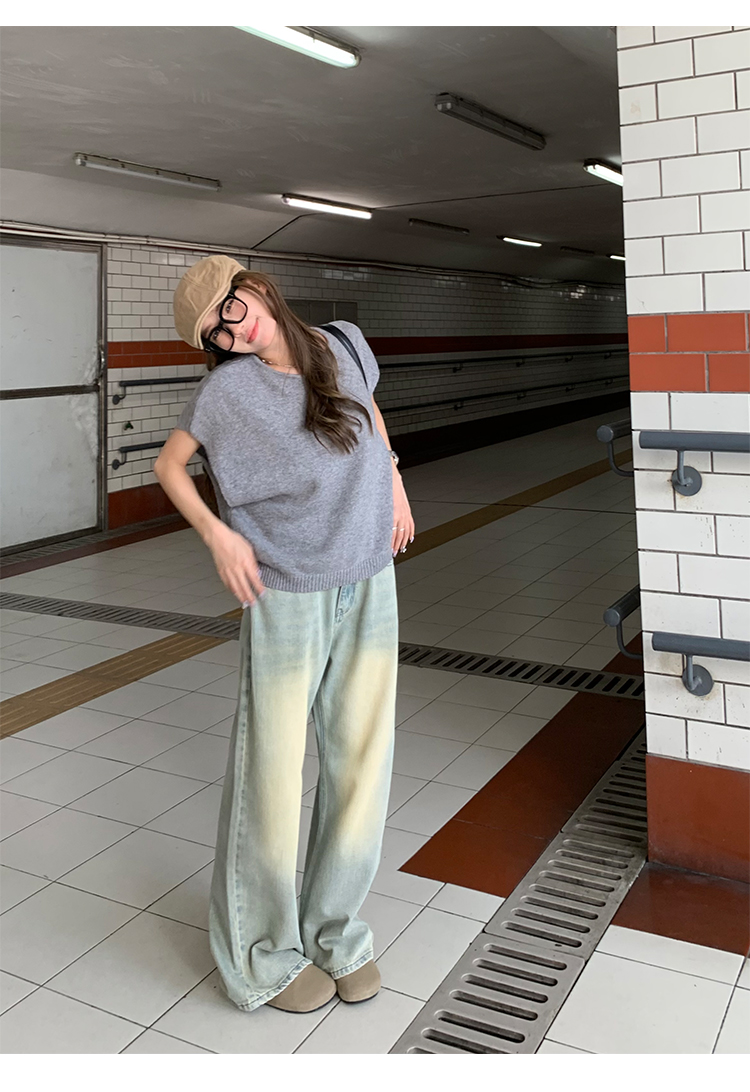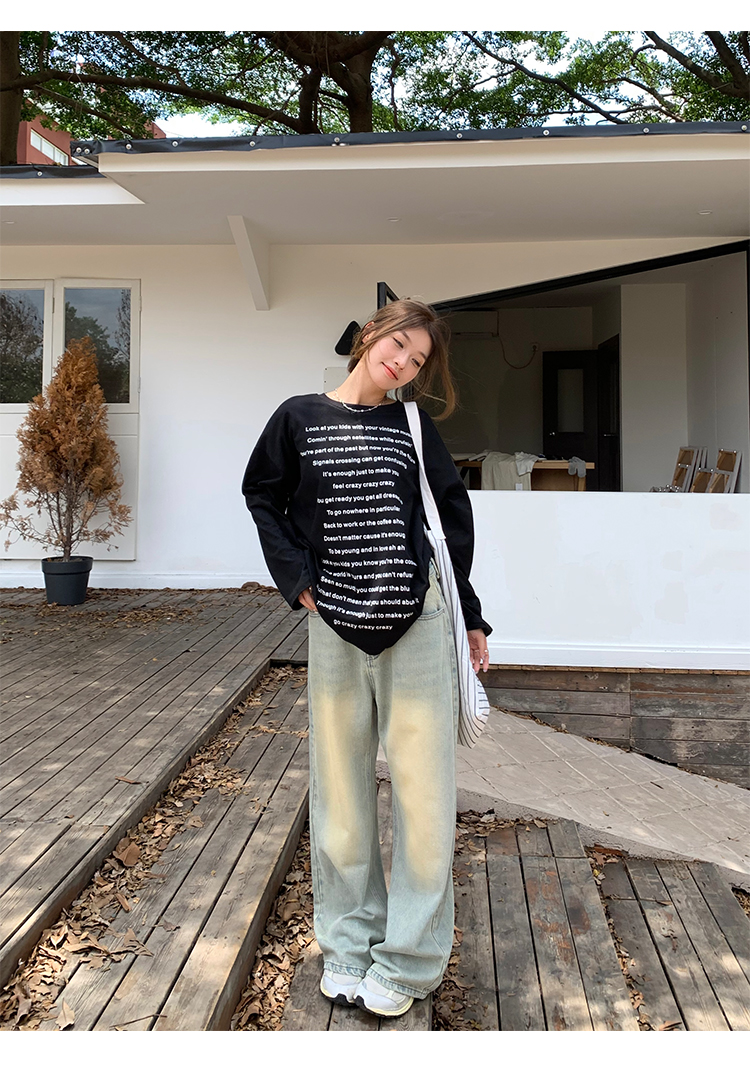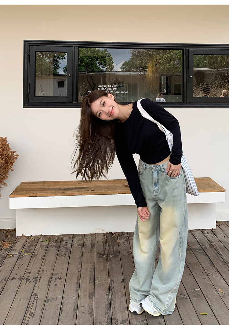 荒荒家水洗做舊牛仔褲2023年秋款美式復古淺色高腰寬鬆拖地闊腿褲