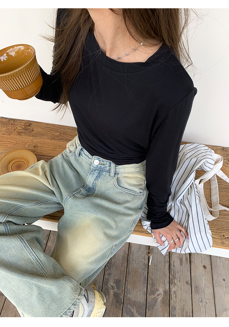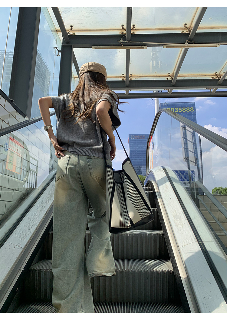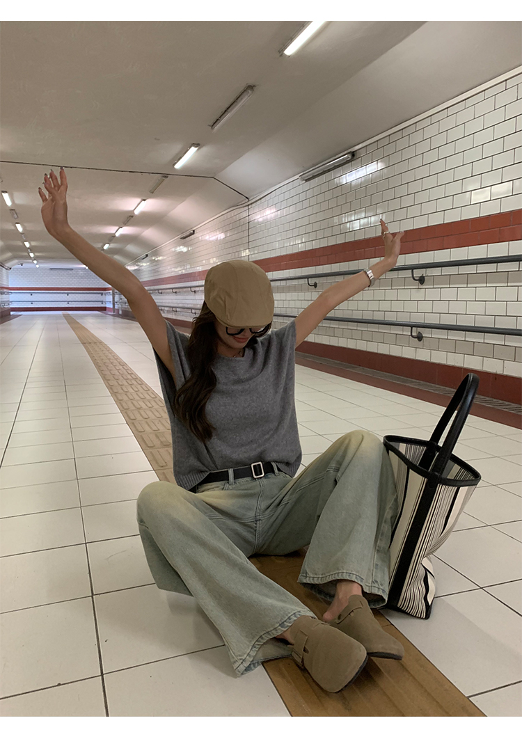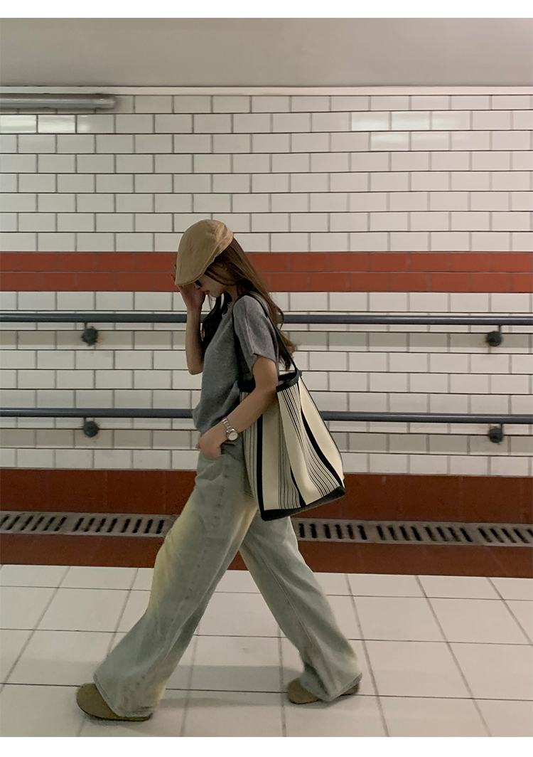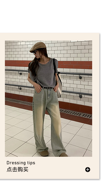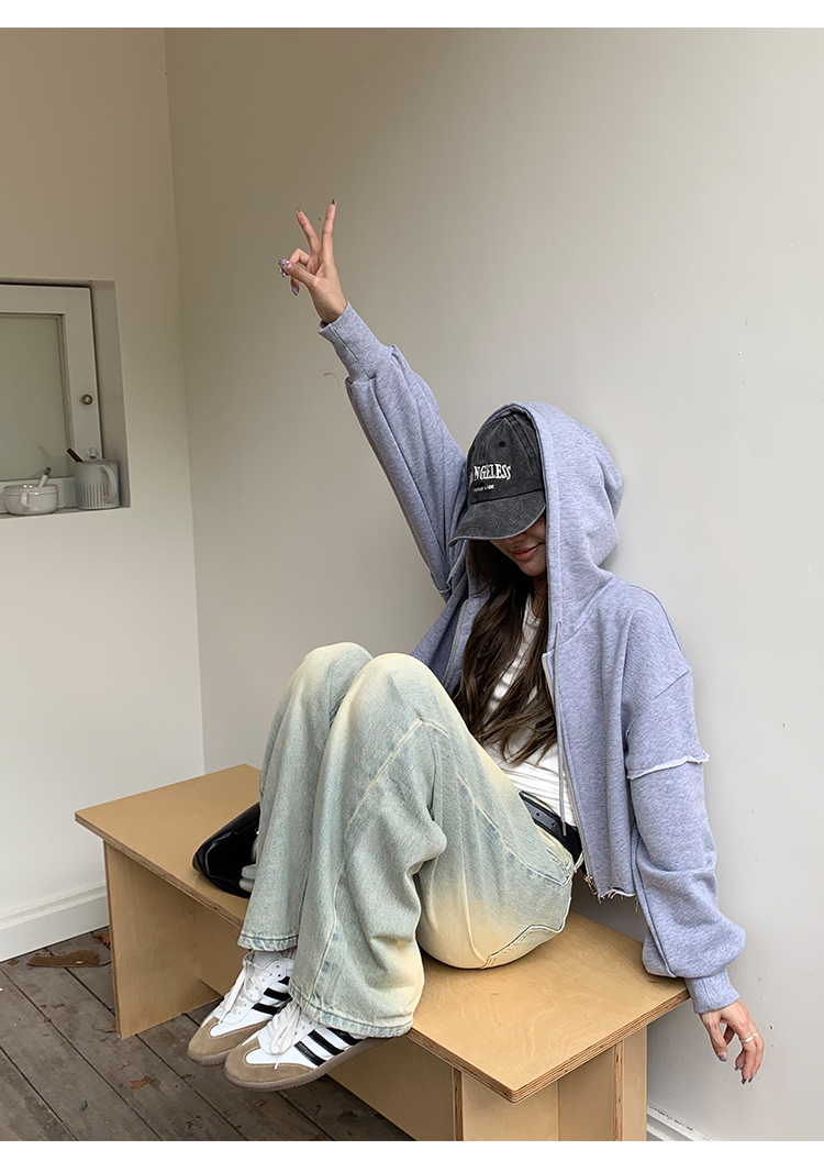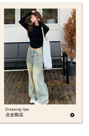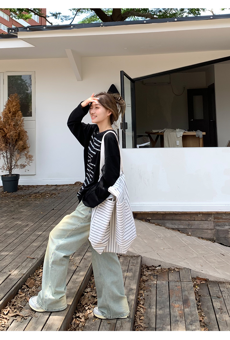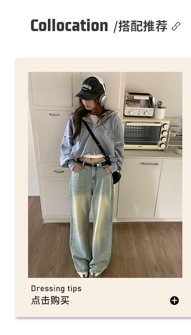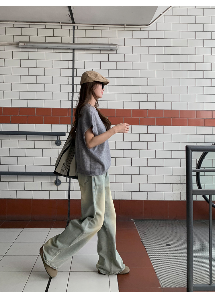 荒荒家水洗做舊牛仔褲2023年秋款美式復古淺色高腰寬鬆拖地闊腿褲