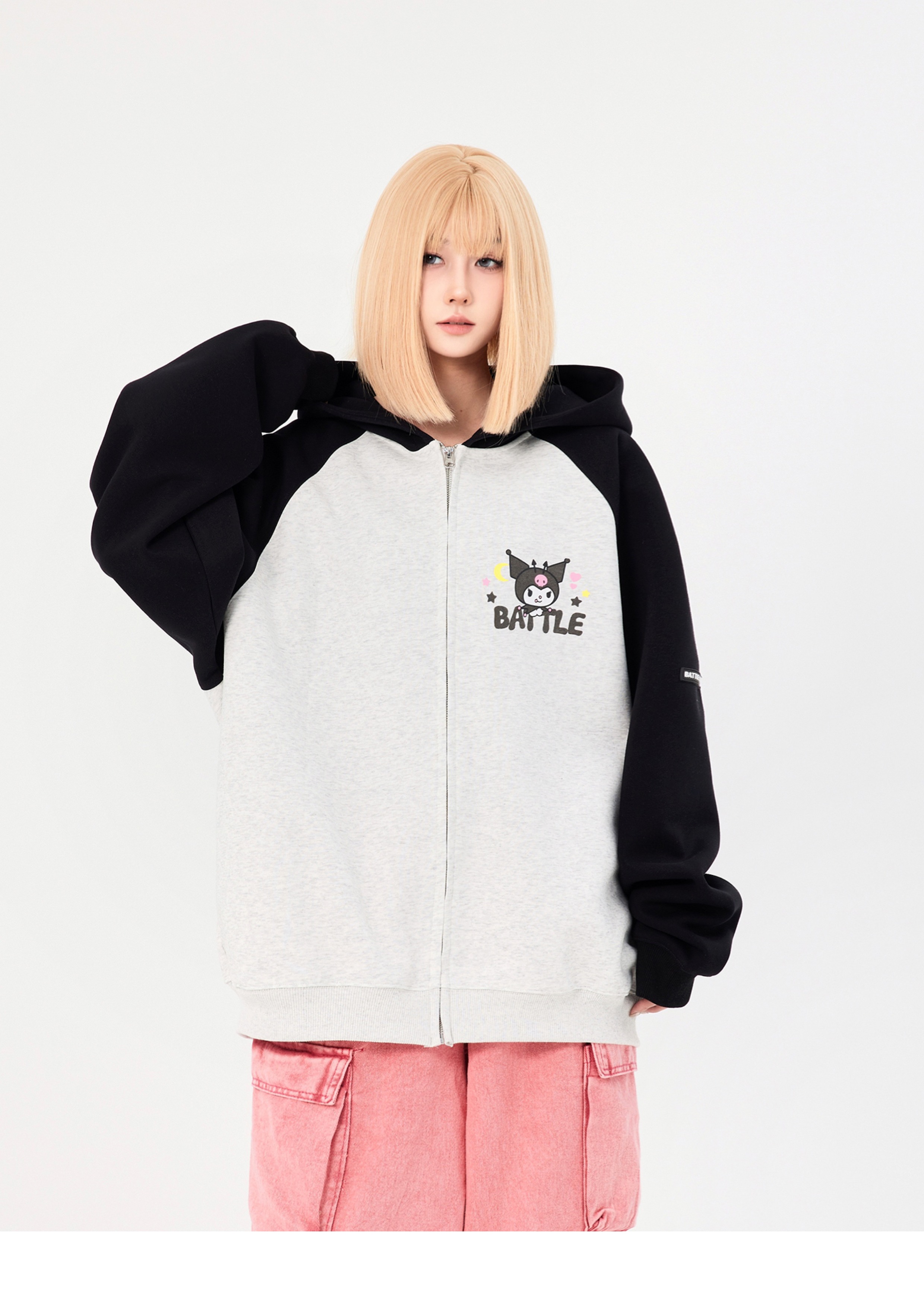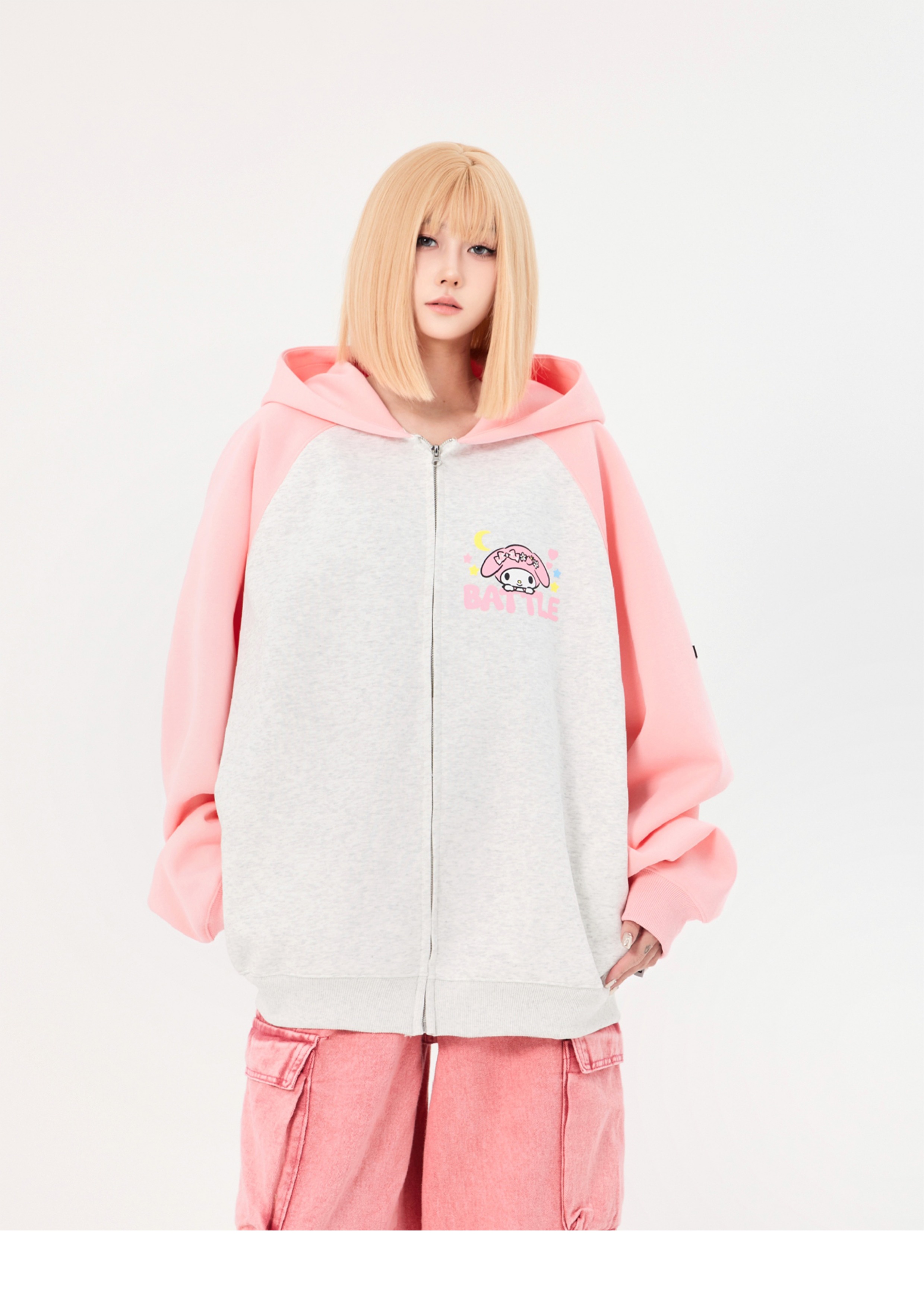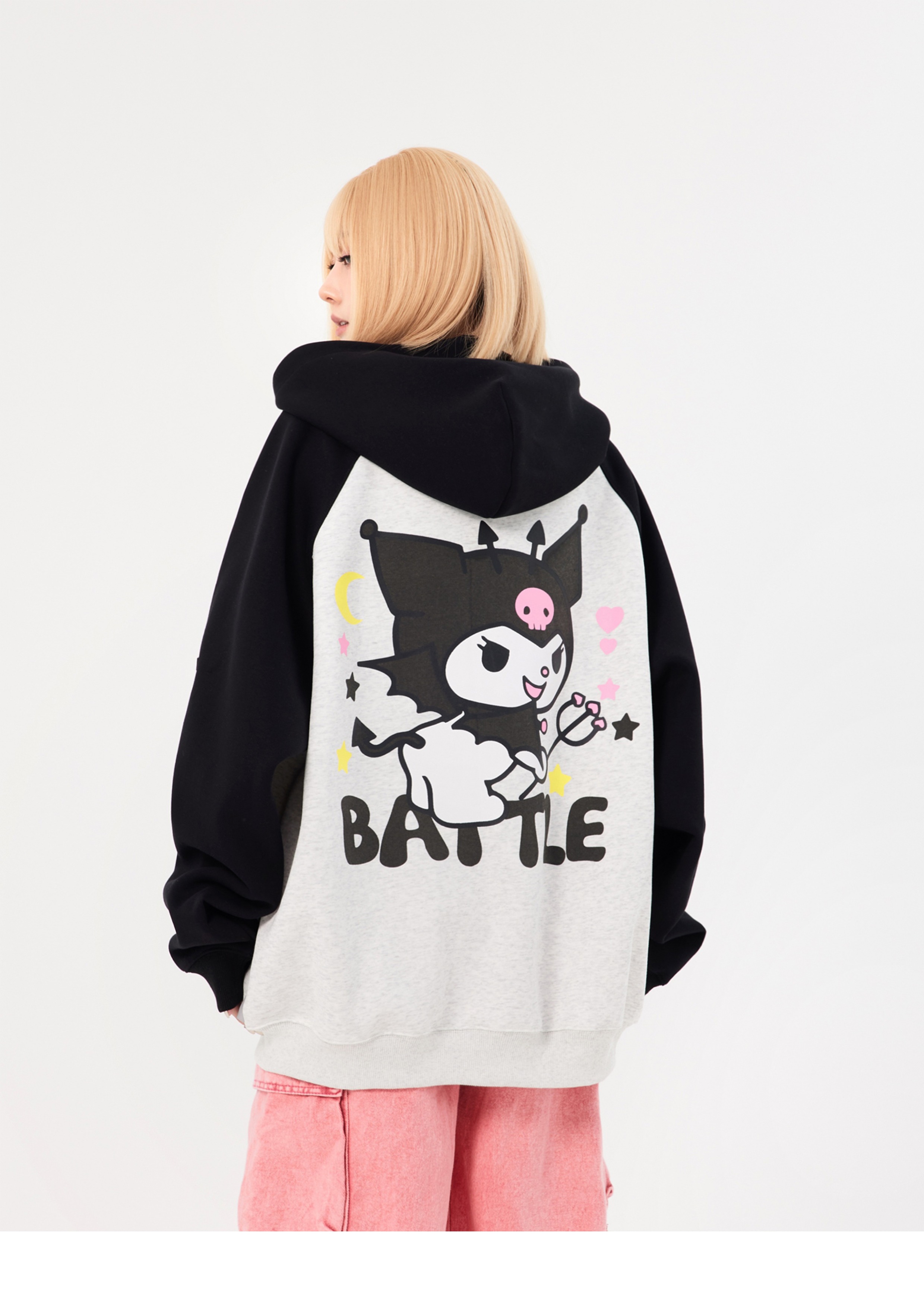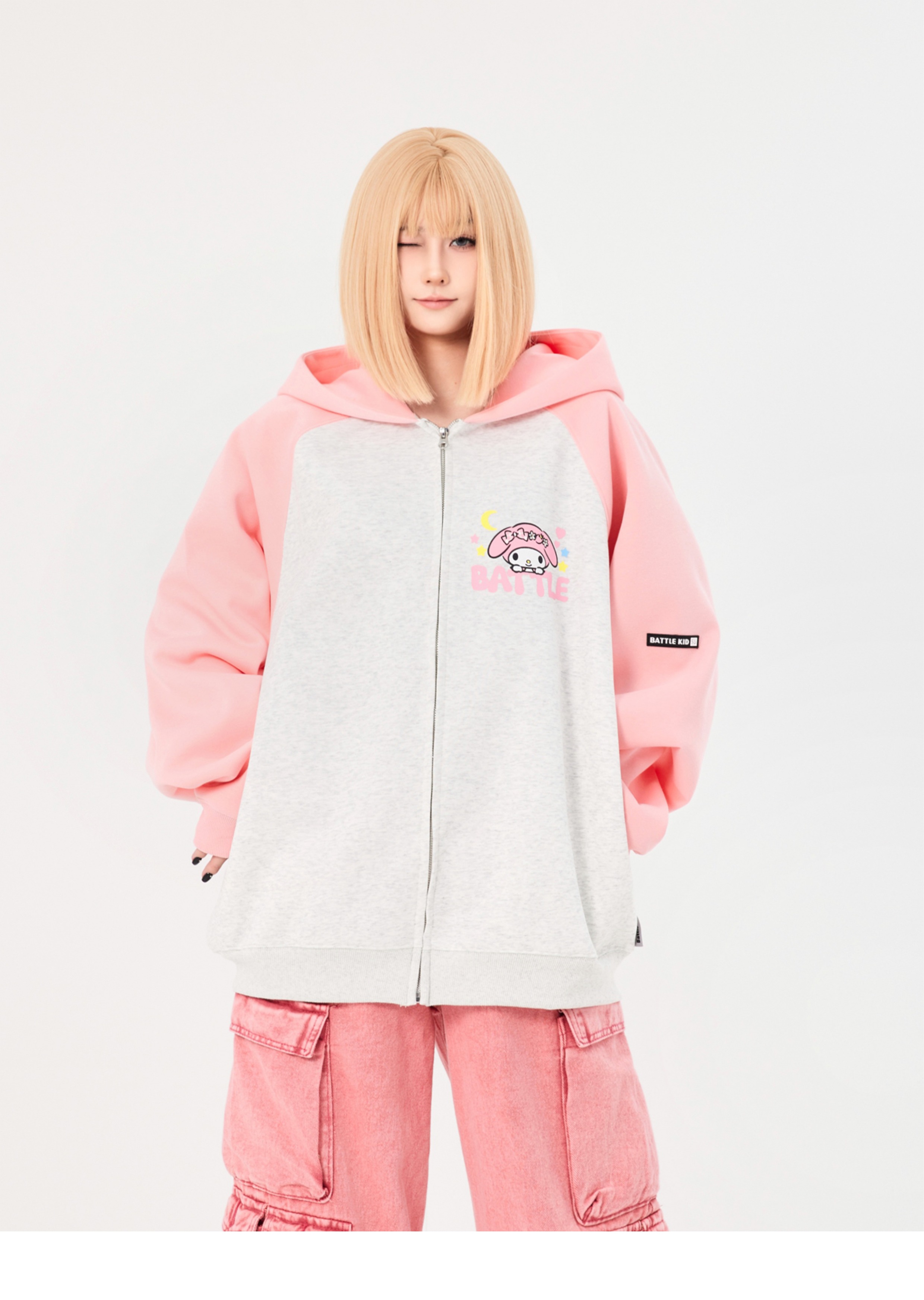 打怪 國潮萌寵印花插肩開衫連帽運動衫外套女秋季美式情侶上衣帽衫
