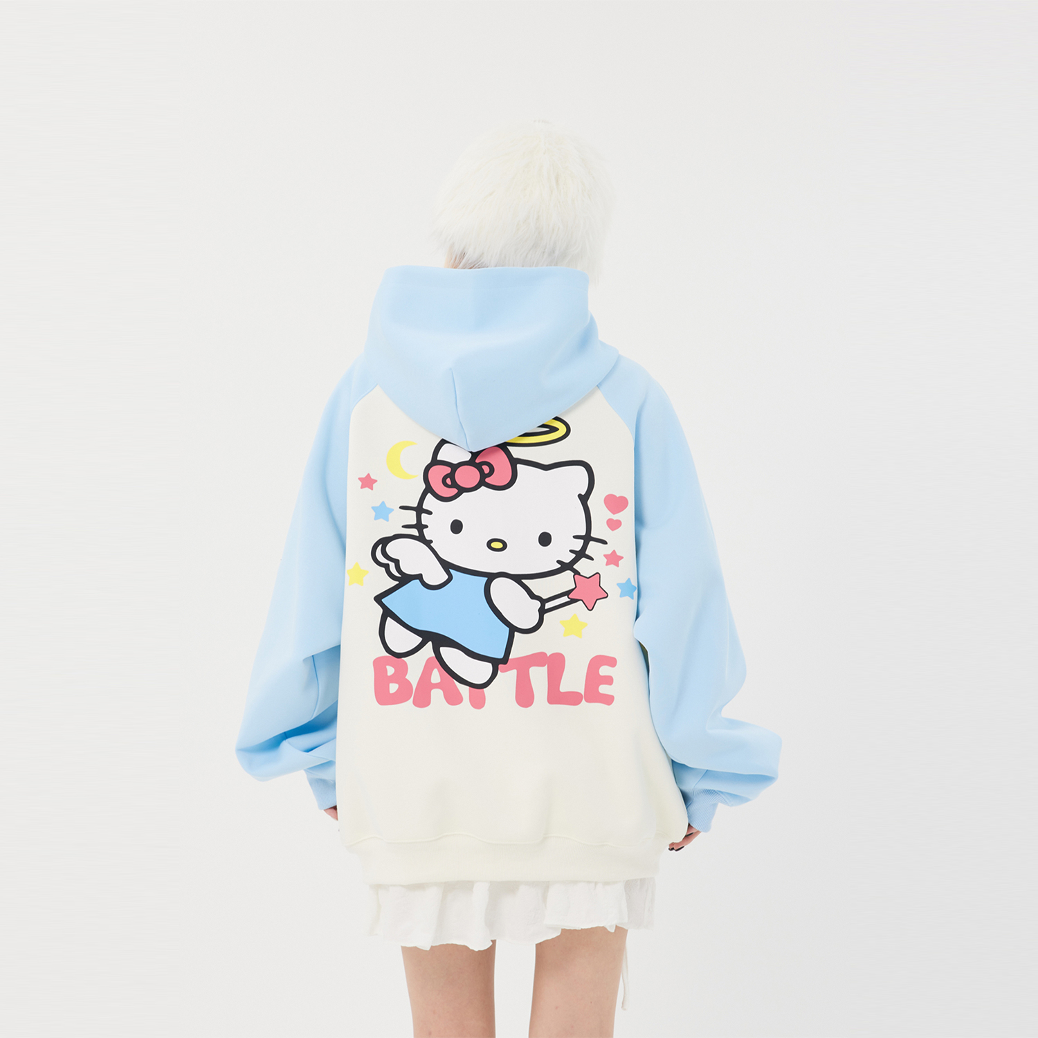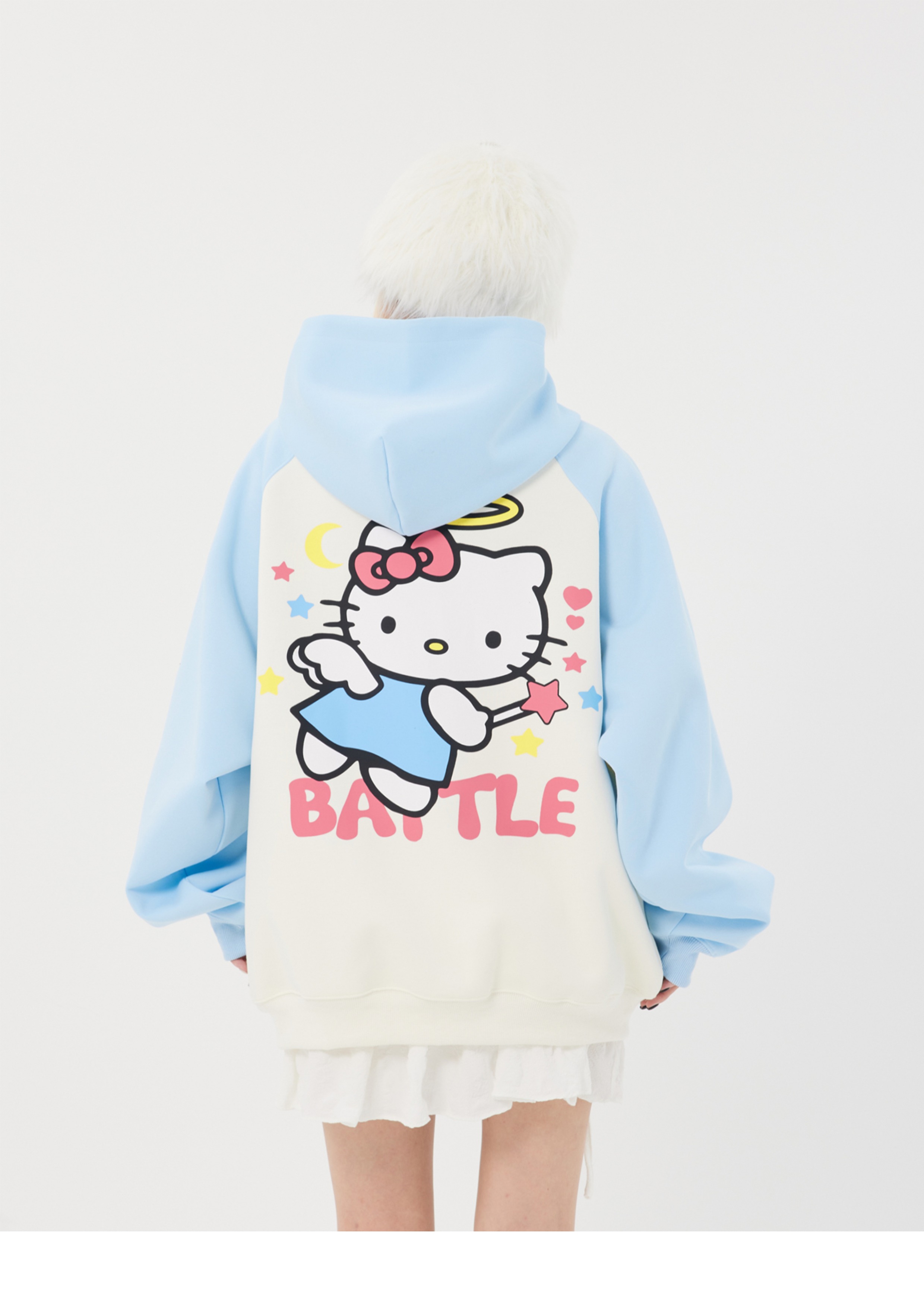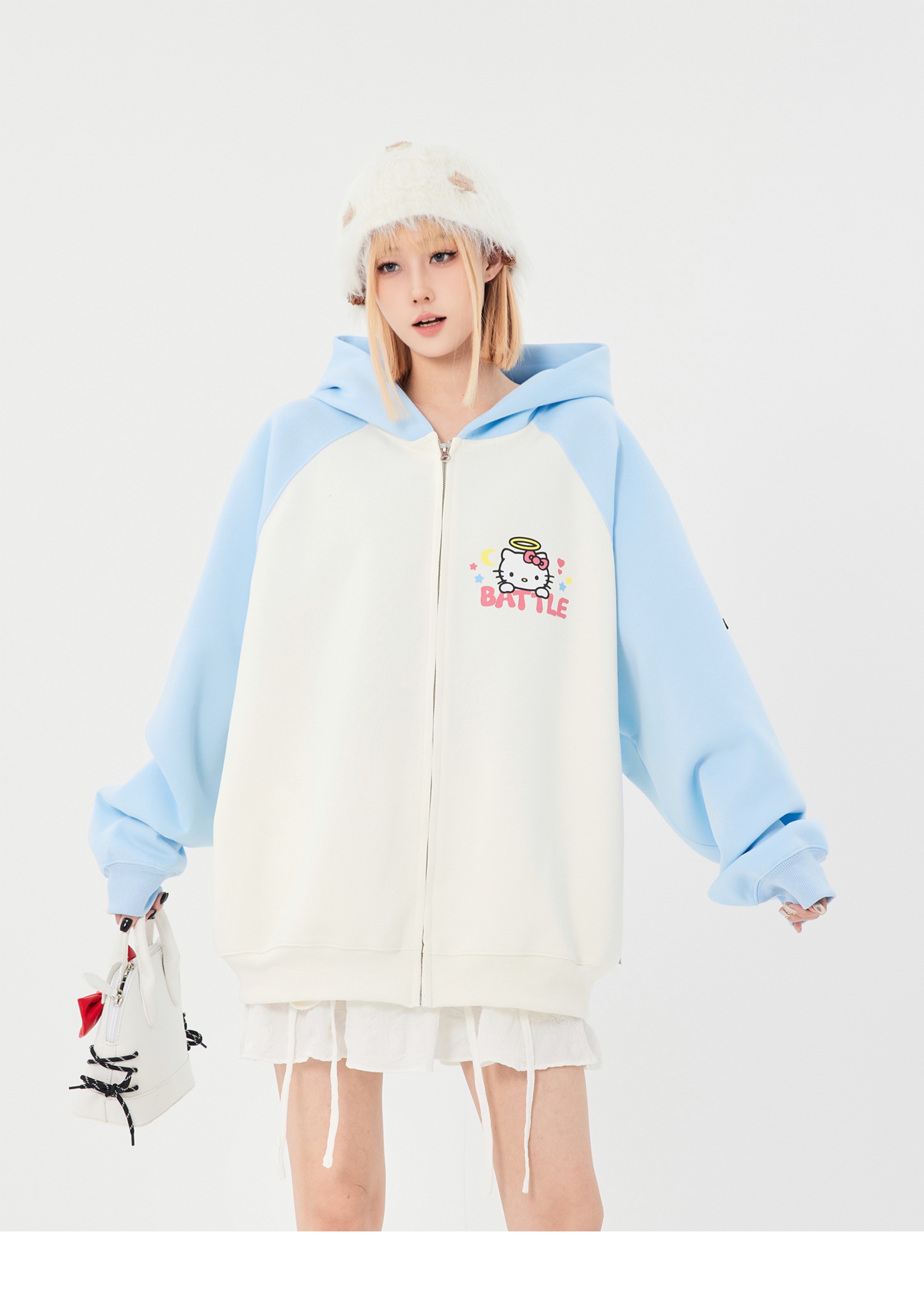 打怪 國潮萌寵印花插肩開衫連帽運動衫外套女秋季美式情侶上衣帽衫