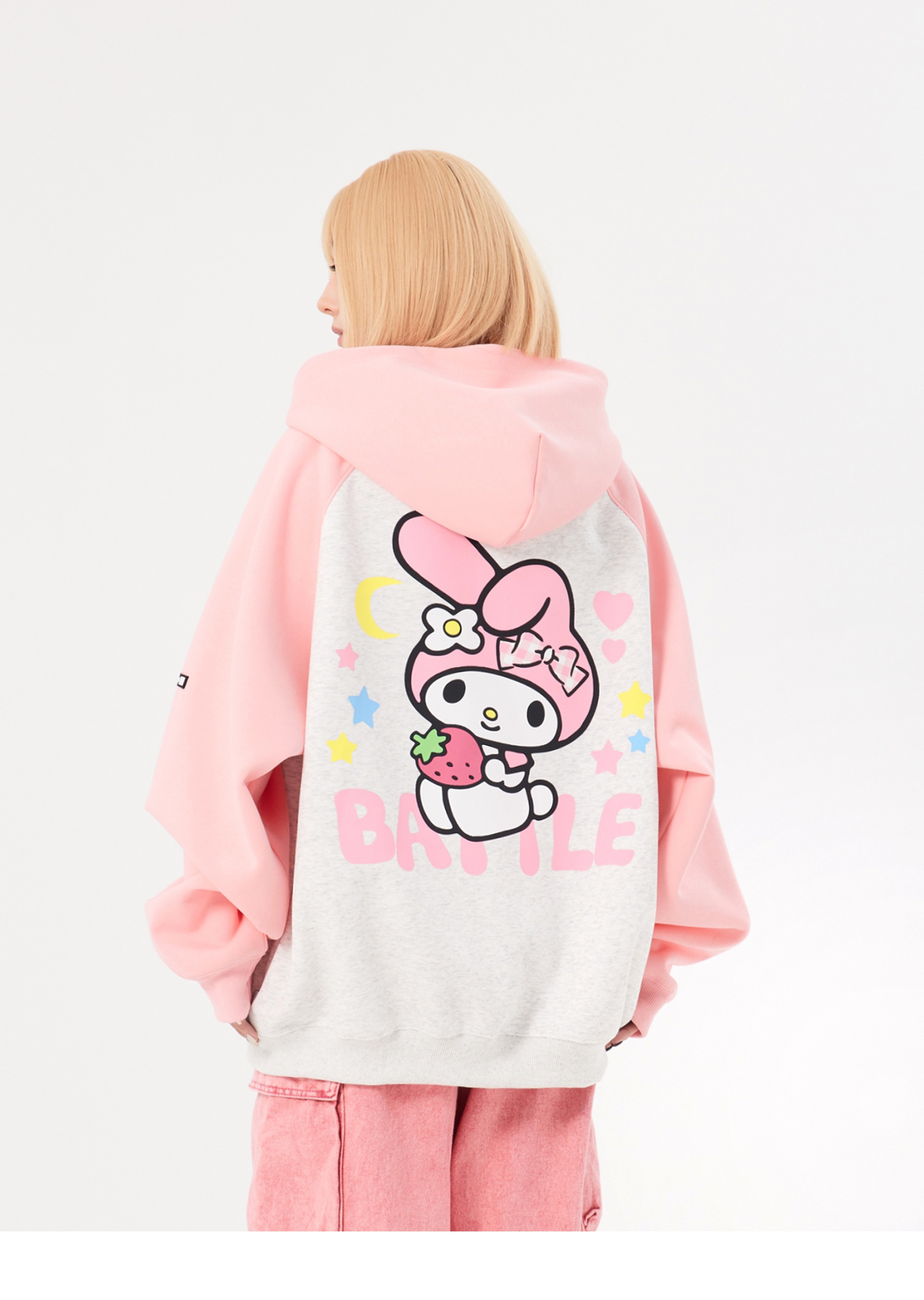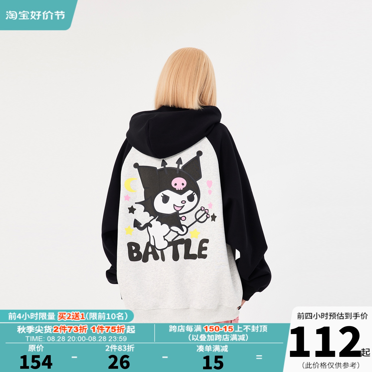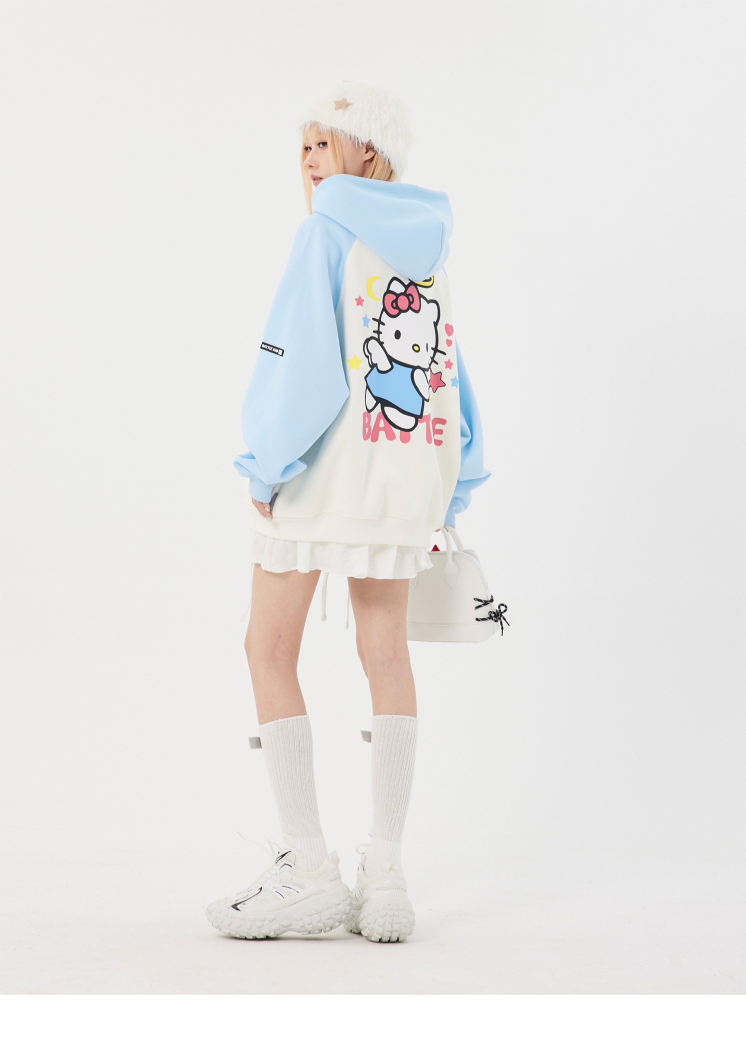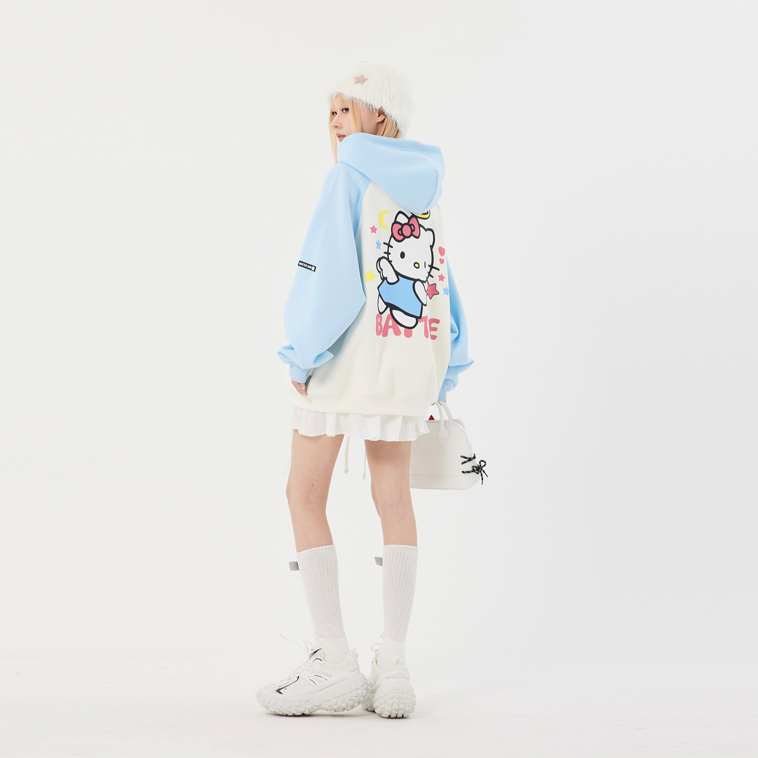 打怪 國潮萌寵印花插肩開衫連帽運動衫外套女秋季美式情侶上衣帽衫