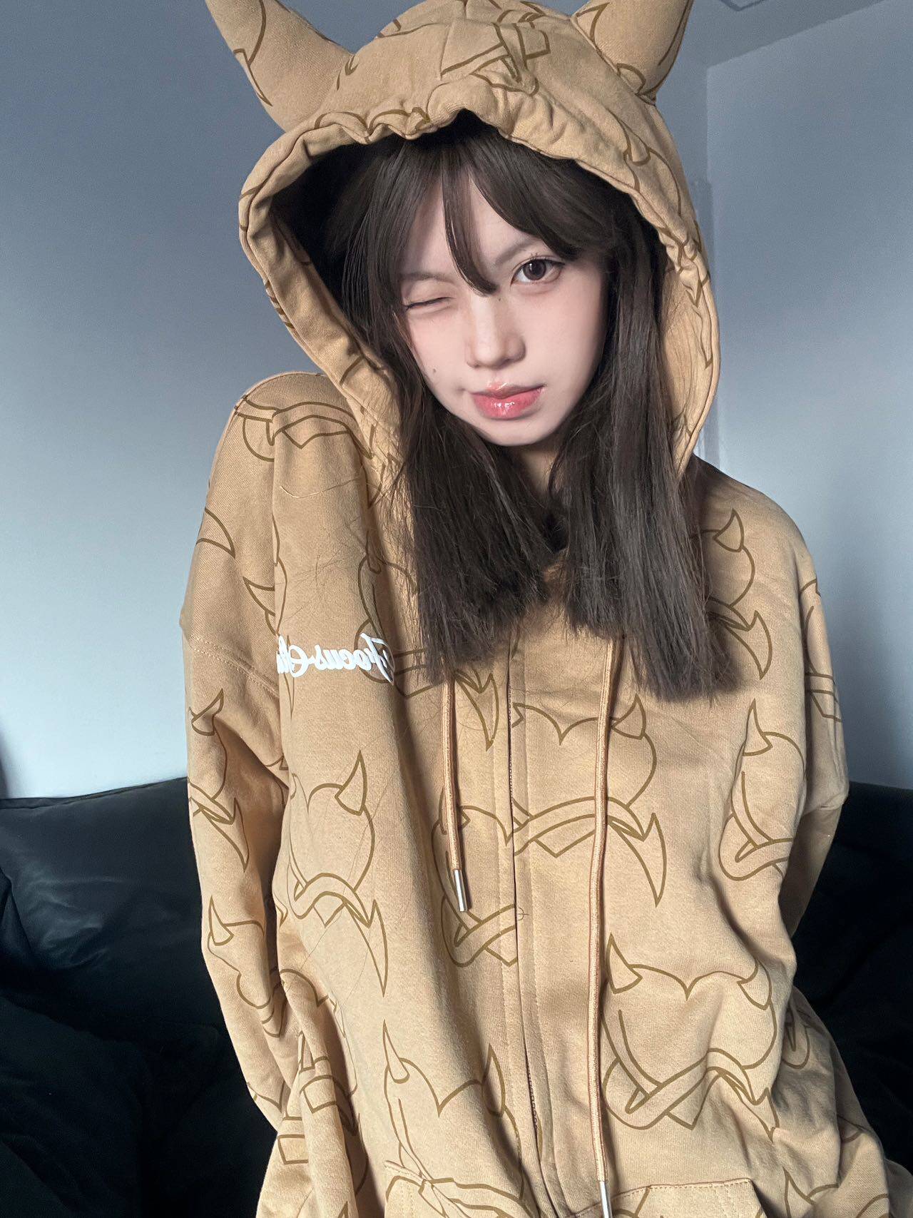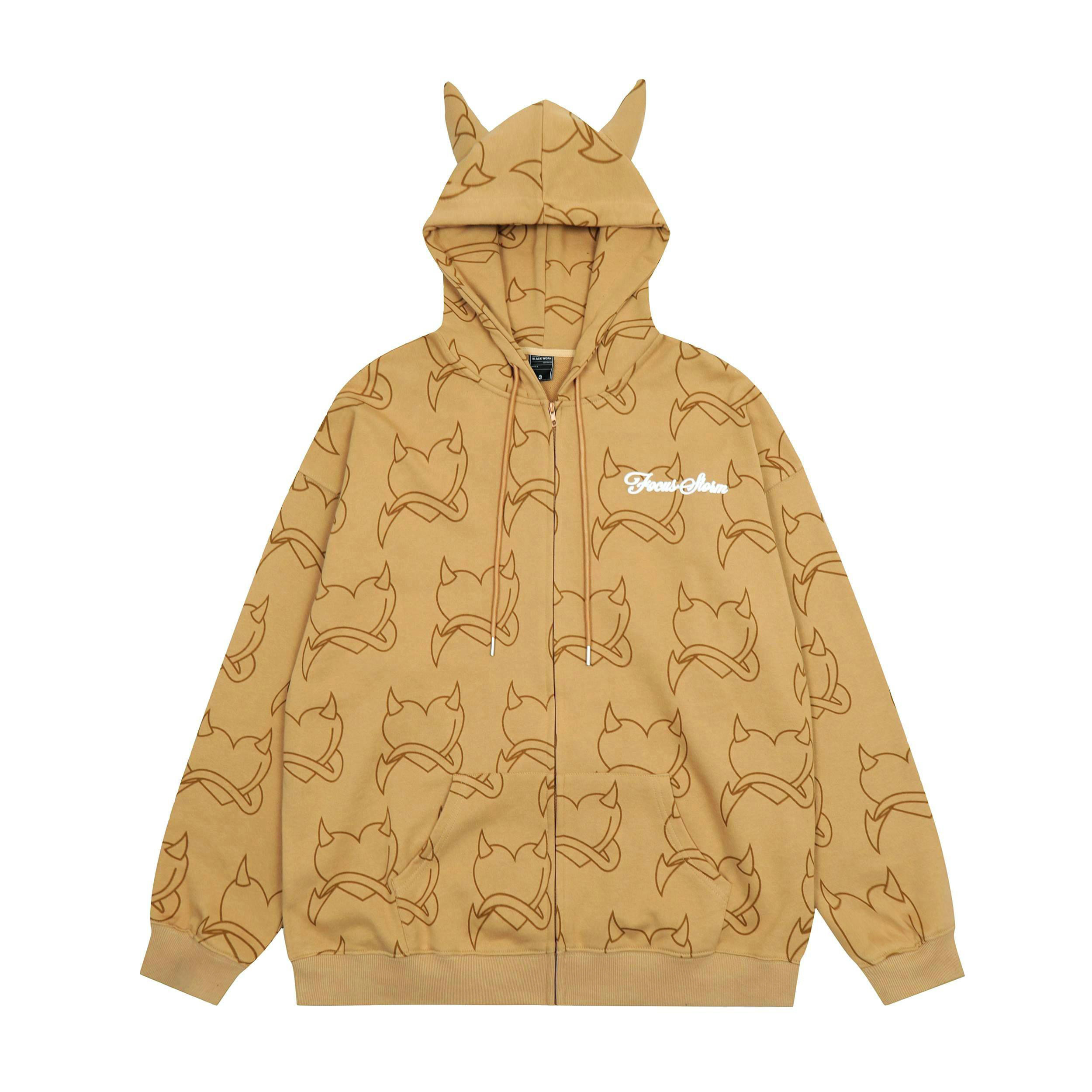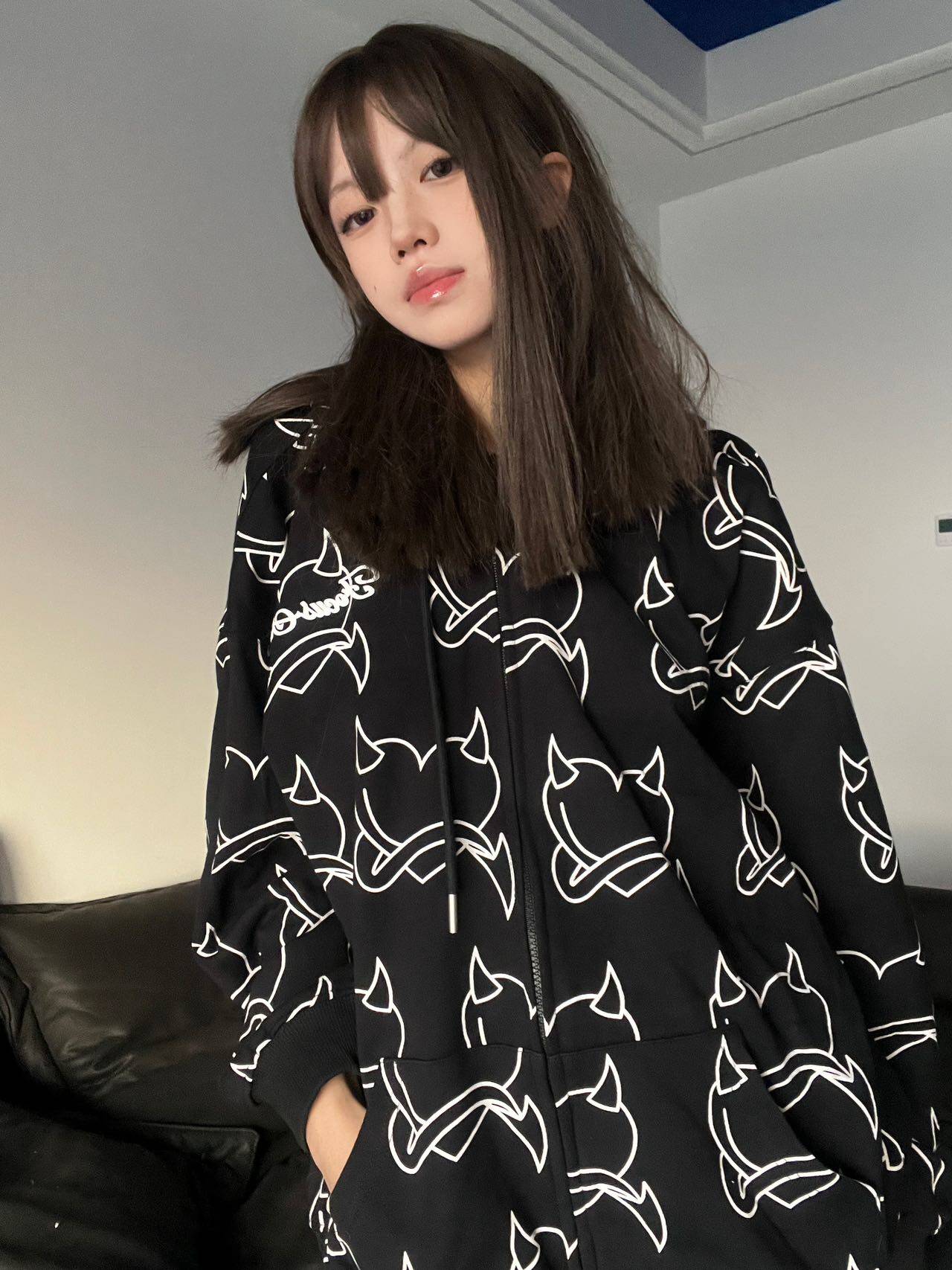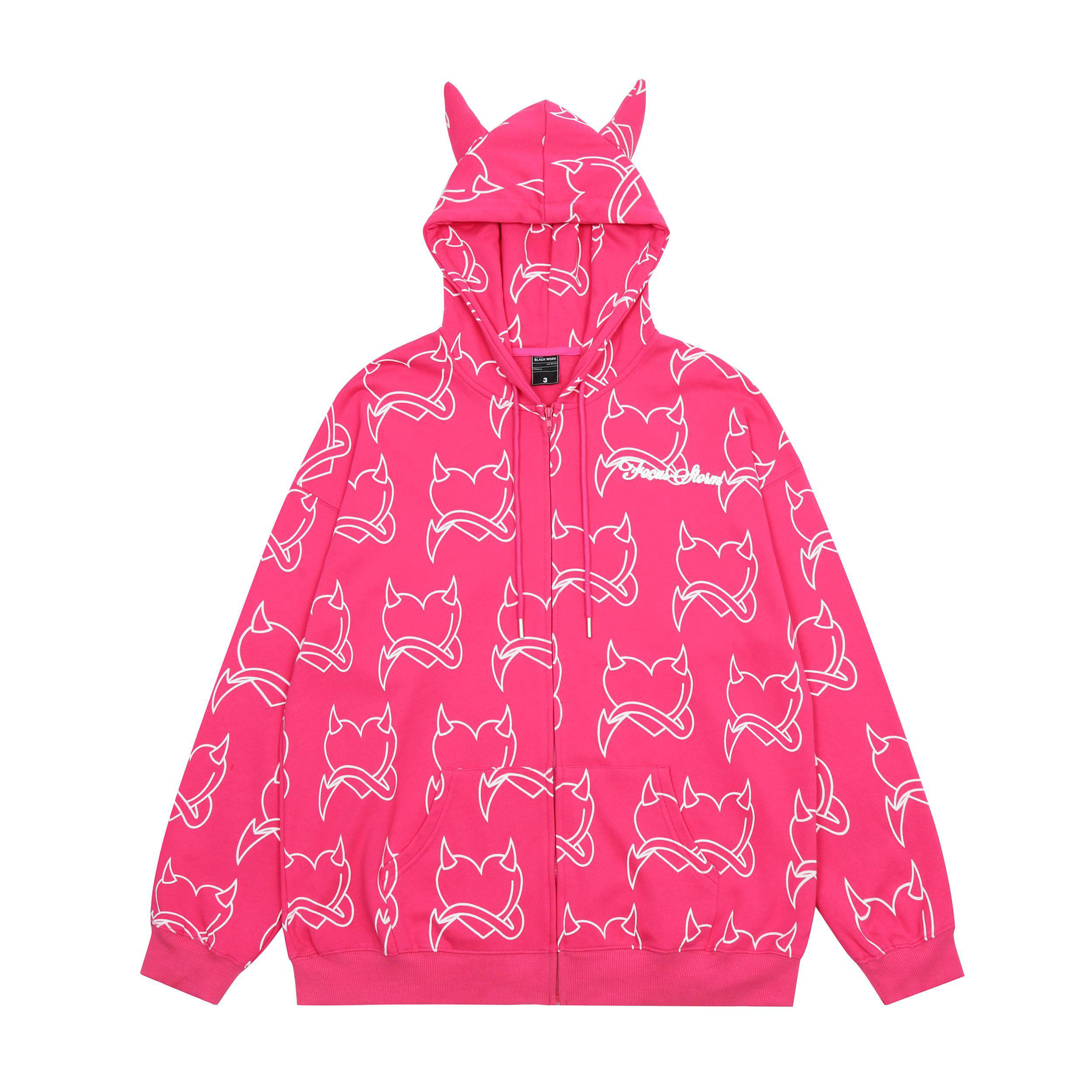 BANGU 原創正品男女款帶角惡魔外套連帽運動衫秋季純棉愛心滿印長袖