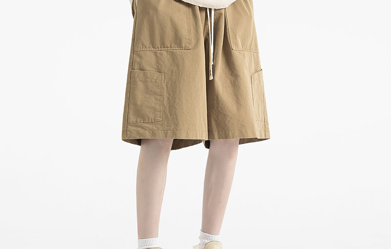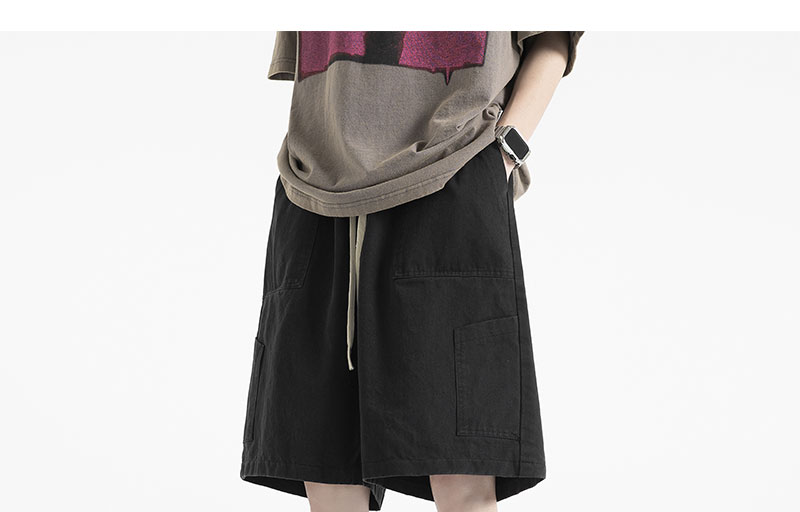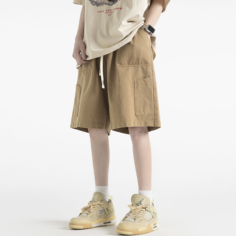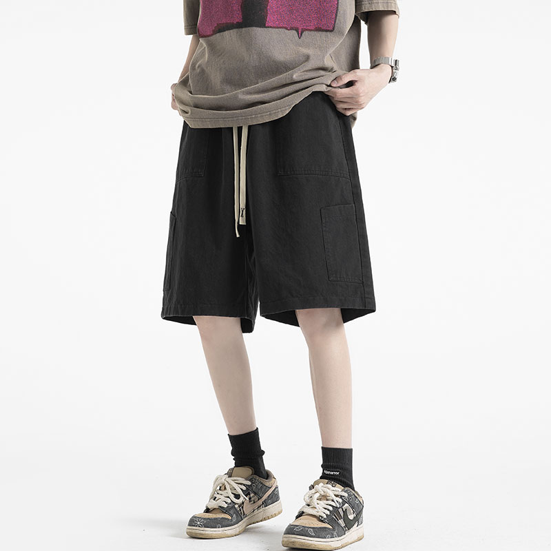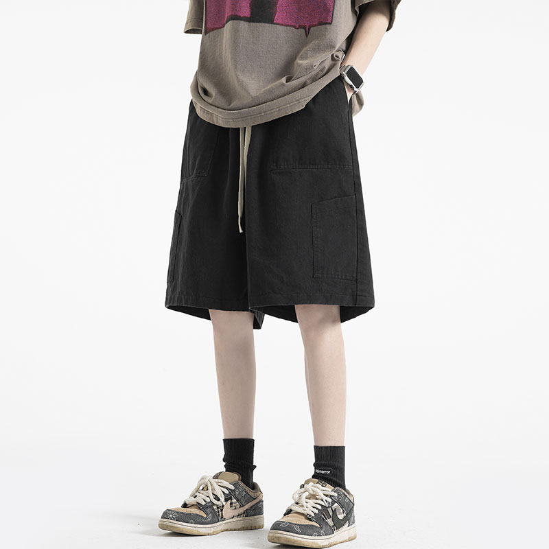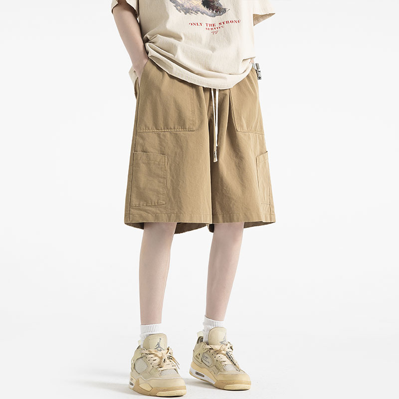 美式街頭純色多口袋工裝短褲女夏季寬鬆百搭情侶高腰5分闊腿褲子