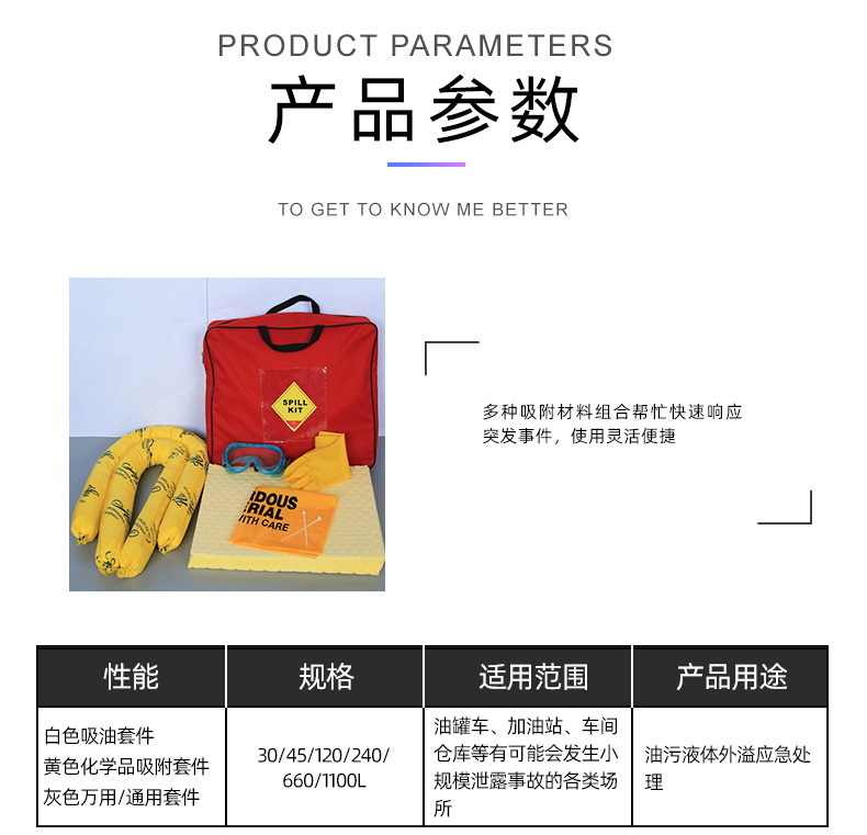 用途范围 油罐车、加油站、车间仓库等发生小规模泄露的各类场所