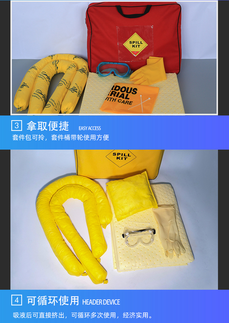 应急处理套装防污吸液棉套件包工业通用化学液体应急防污处理套件