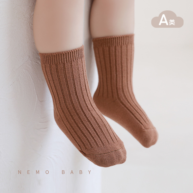 儿童袜子2023秋季新品纯色双针宝宝袜子韩国潮范男女童大童中筒袜