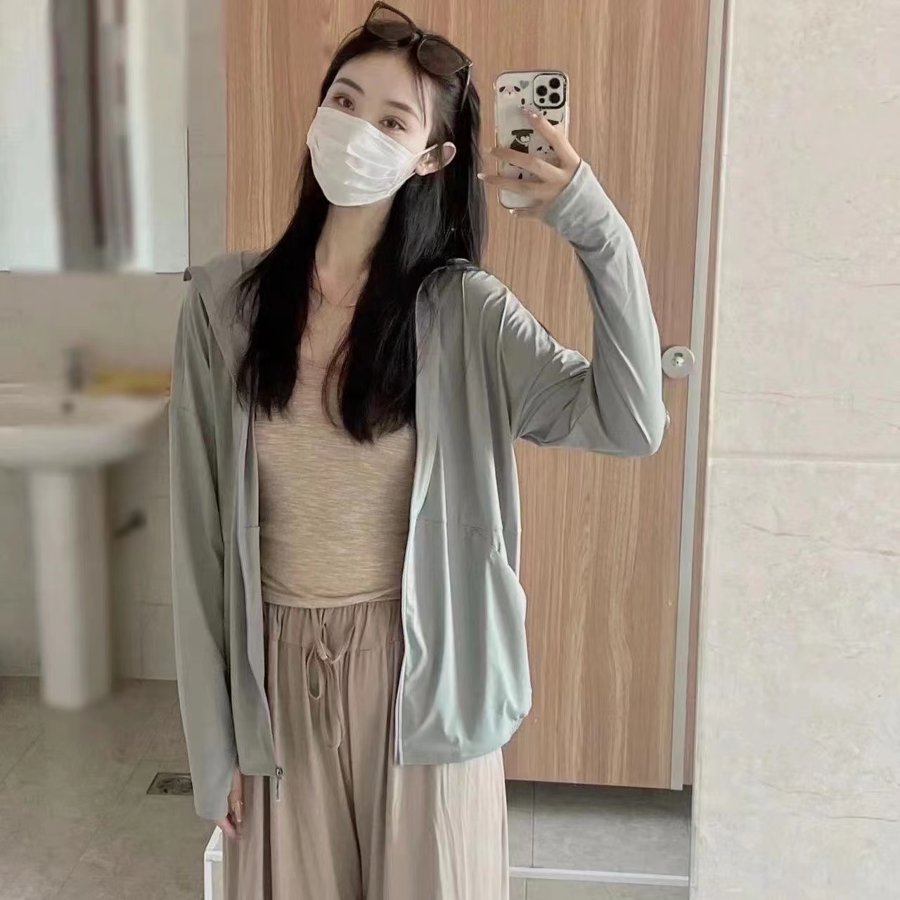 夏季冰絲顯瘦防曬衣女薄款大尺碼胖mm抗UV長袖連帽透氣外套外穿