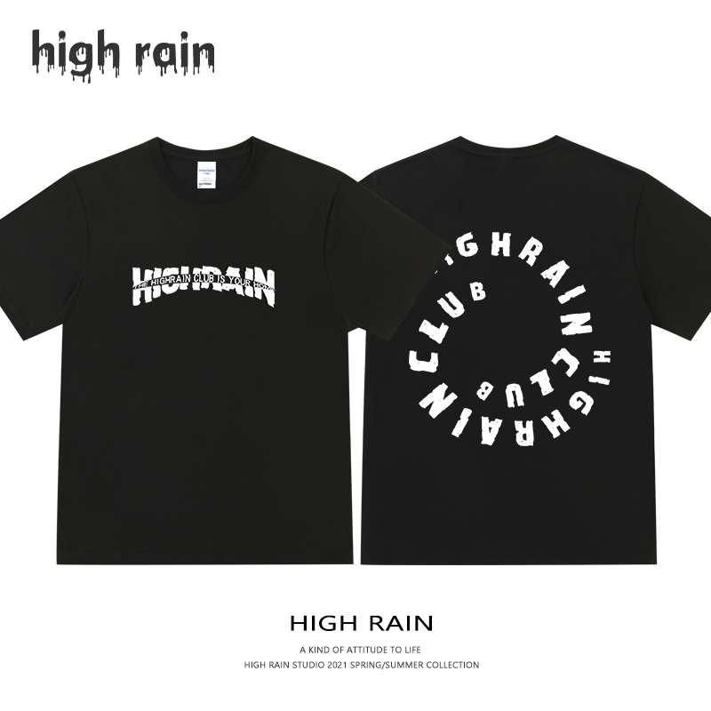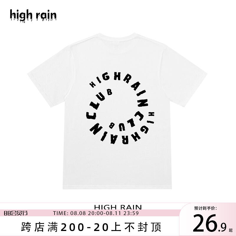 high rain夏季設計感小眾百搭T恤潮牌流行青少年白色純棉運動短袖