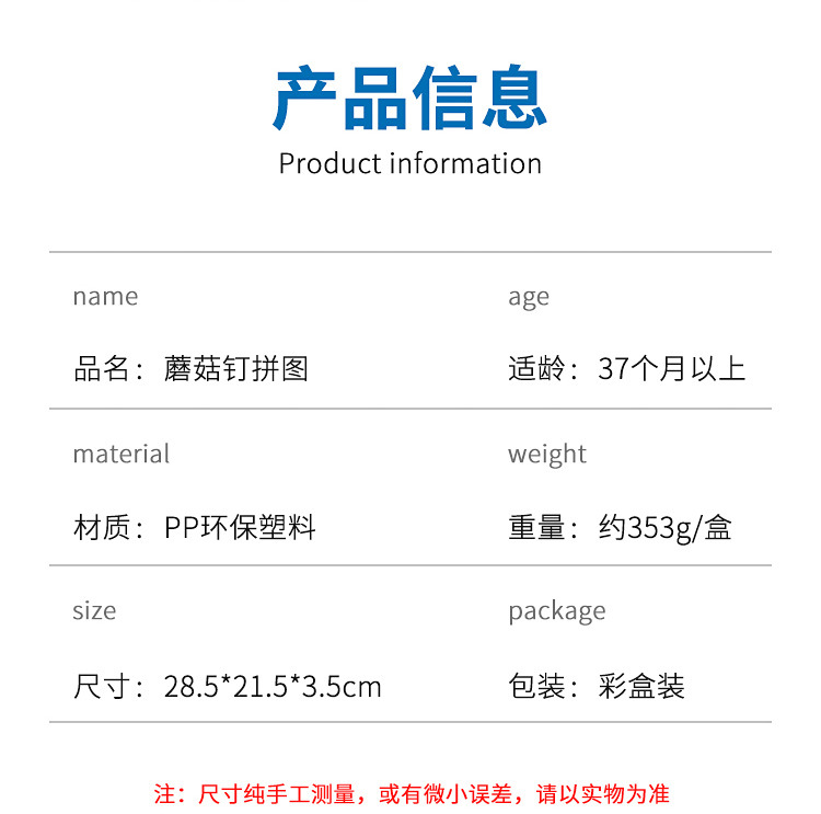 拼砌玩具类型 蘑菇钉拼图套装