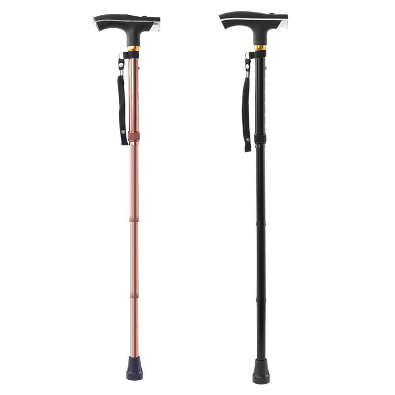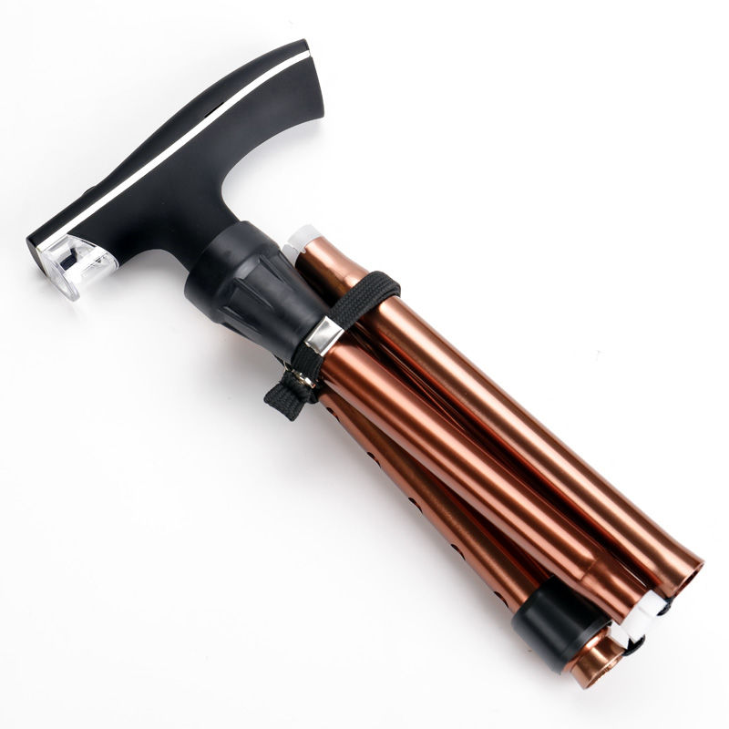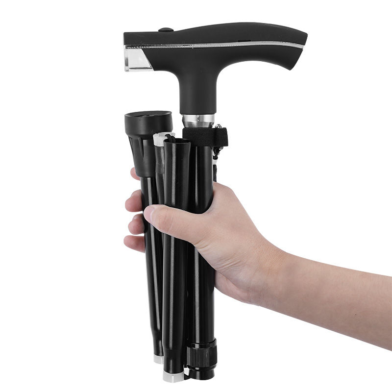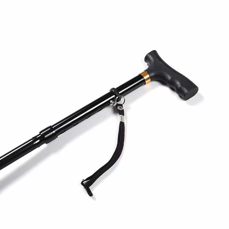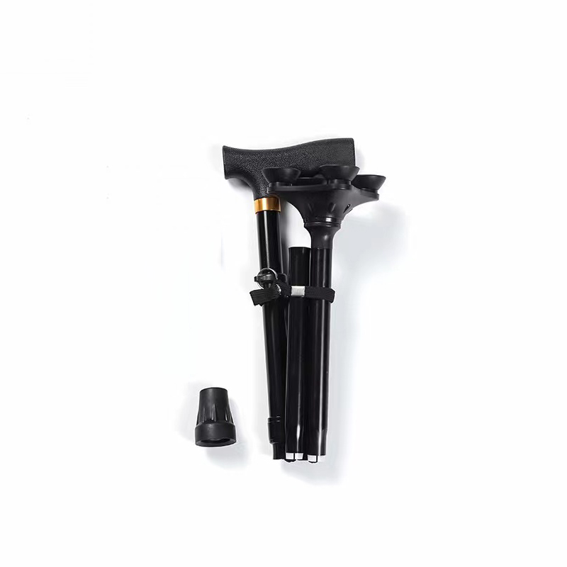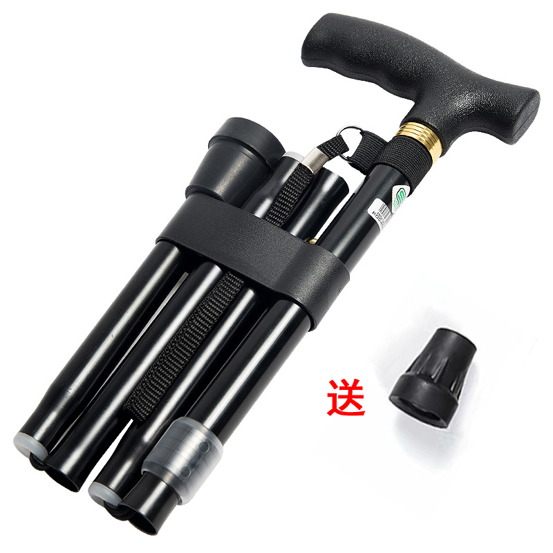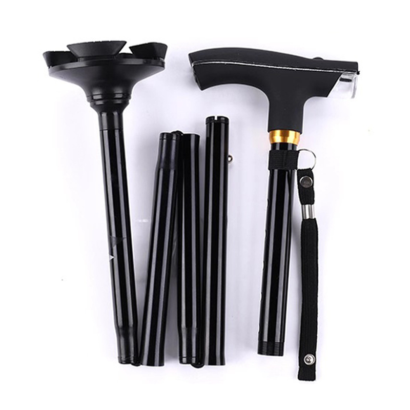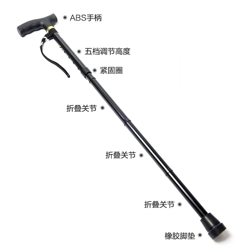 戶外四節摺疊可攜式登山柺杖老人多功能可伸縮防滑腳套帶燈可照明