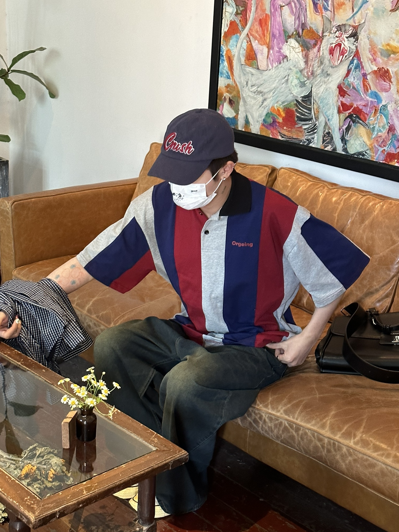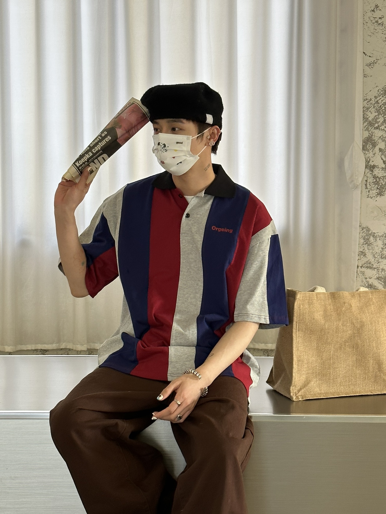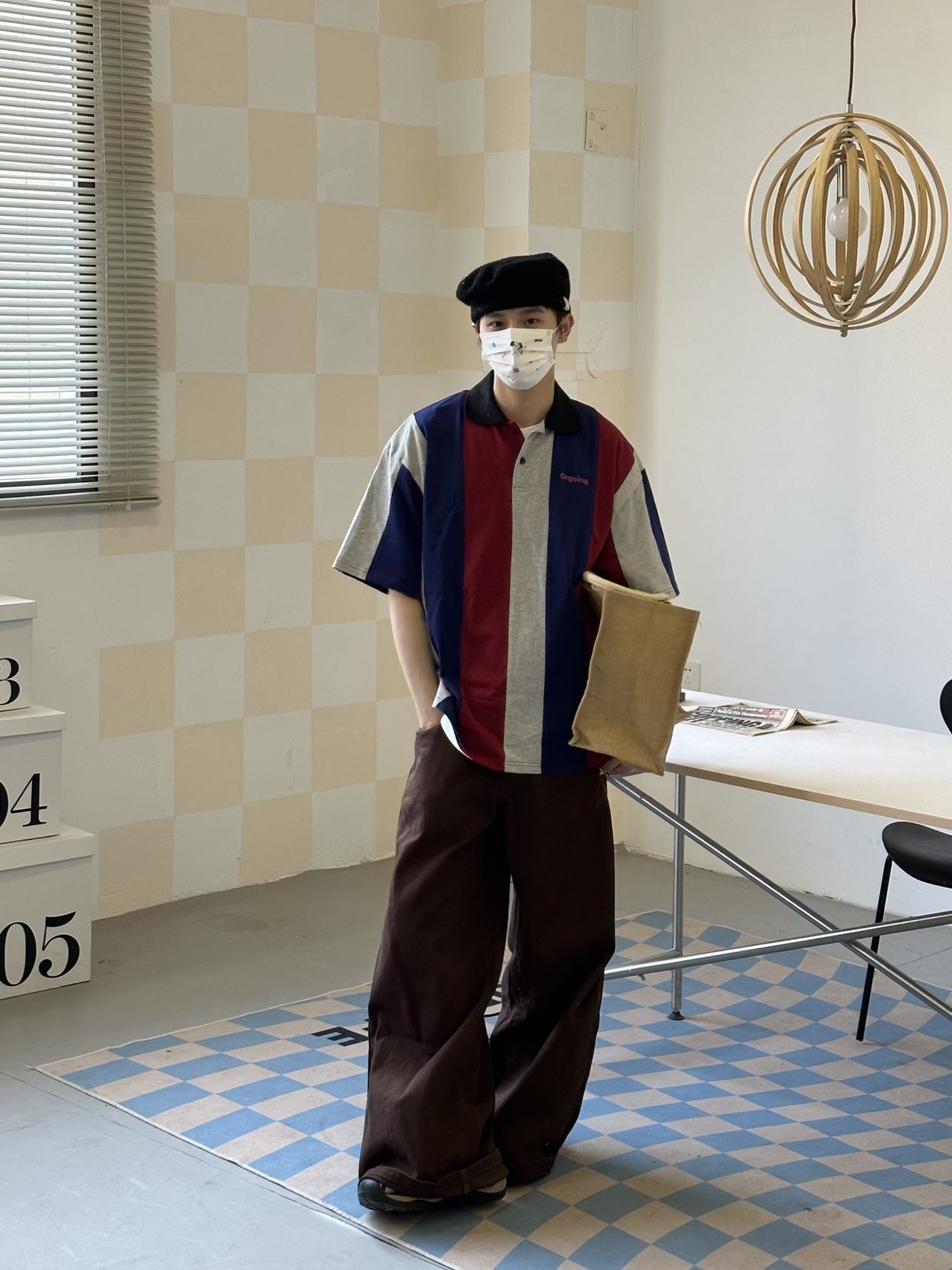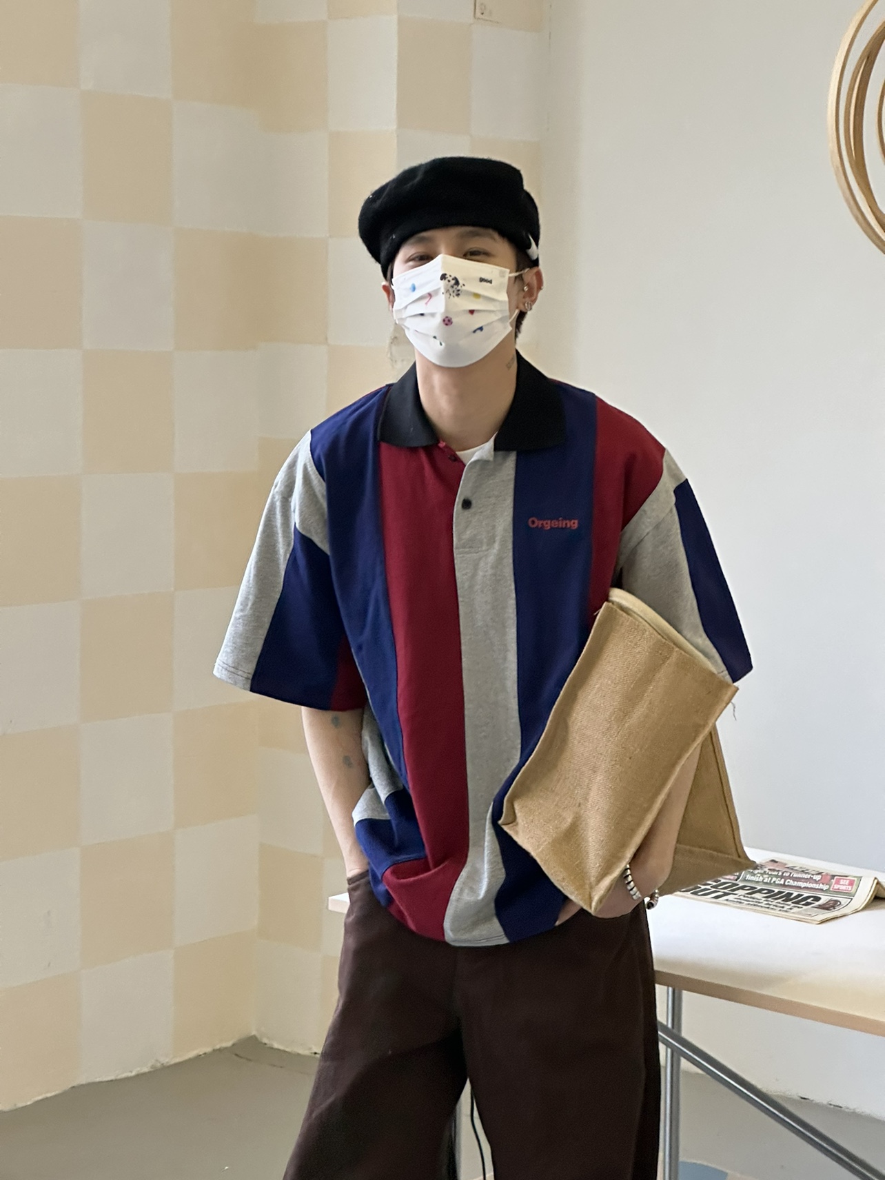ORGEING原創三色撞色拼接polo 寬鬆情侶套頭圓領休閒短袖T恤男女
