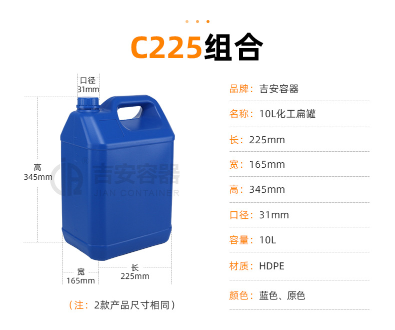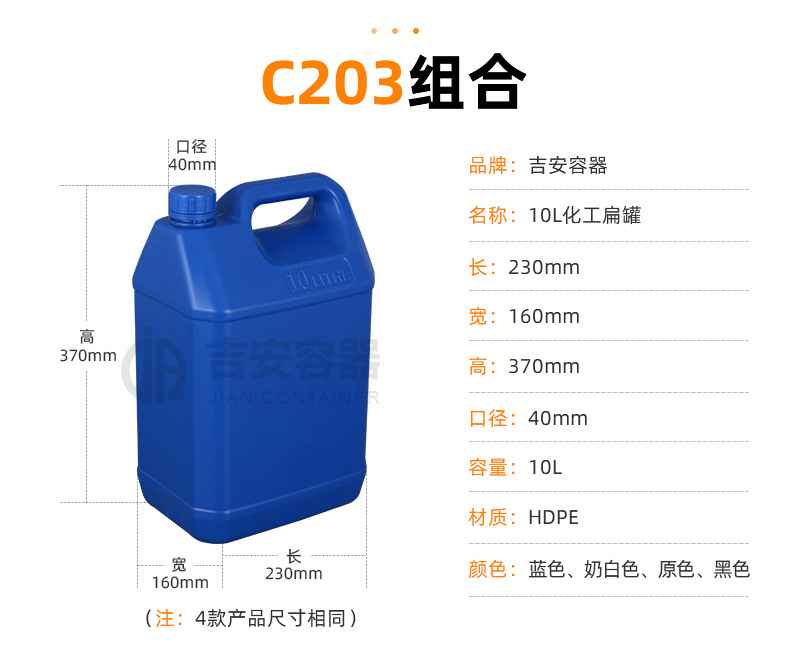 东莞市吉安包装容器有限公司创立于2000年8月1日,是中国知名品牌企业。已通过ISO 9001质量管理体系资质认证,加入了中国中空协会,并获得《中国知名品牌》,《质量检验·国家标准合格产品》等荣誉称号。根据材质的不同,我们的产品分为塑料容器、铁质容器、铝材容器、玻璃容器、纸质容器等五大类。按产品的名称分为塑料桶、塑料瓶、包装桶、涂料桶、机油桶、油脂桶、化工罐、胶水瓶、铁桶、铁罐、铝瓶、铝罐、阻隔瓶、 高阻隔瓶等,容量从3ML至1000L多种规格,多种款式。适合包装的产品包括:化学试剂、化工原料、化工助剂、饲料添加剂、油墨、油漆、树脂农药、日用化学品、聚氨脂、胶粘剂,广泛应用于化工、建筑、食品、医疗、生物等各领域。