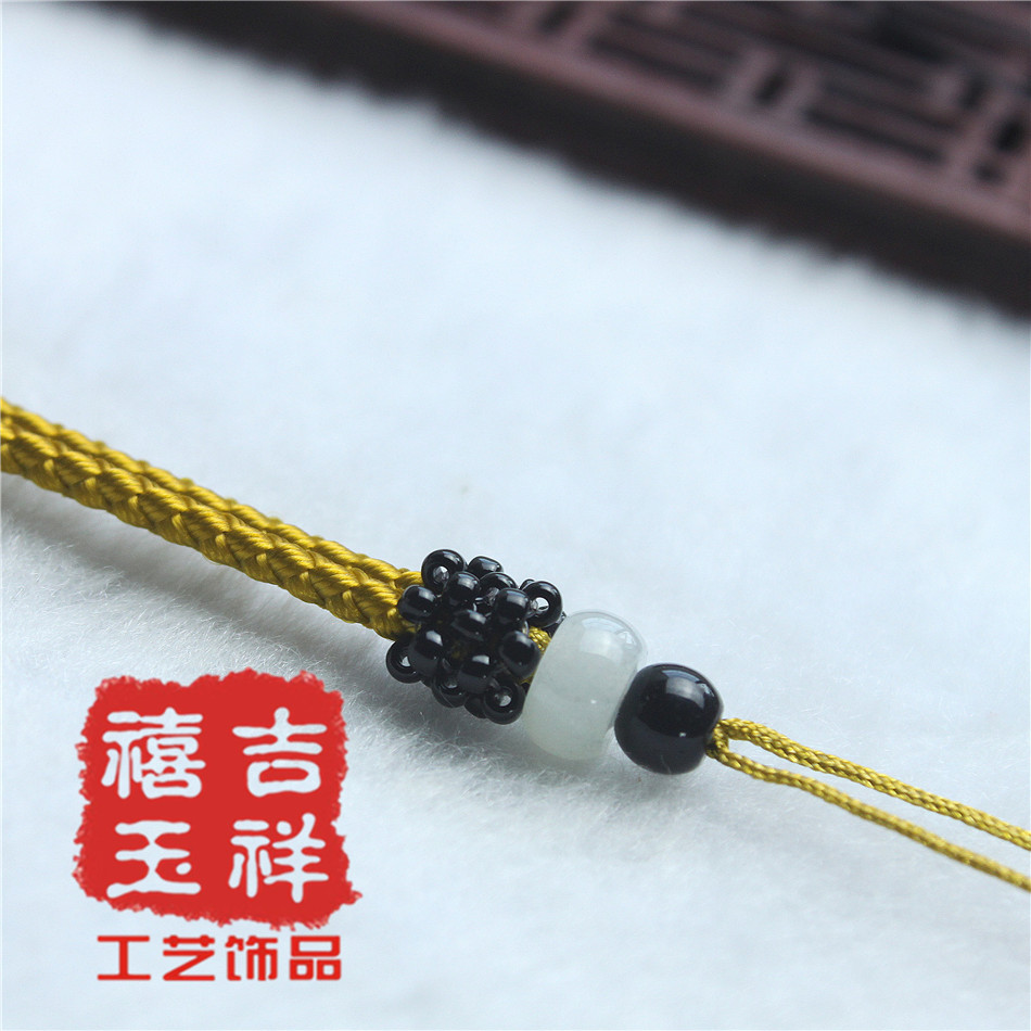 【材质】:台湾玉线【规格】:项链挂绳长短不可调节:约36cm【用途】:可用于挂金器、银器、玉器、陶瓷器、饰品配件等吊坠用【包装】:无单独的包装【说明】:手工编织项链挂绳,出现线头或者毛边的情况实属正常只要用打火机烧一下就能弄好。