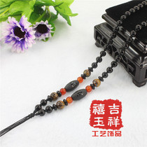 原创六字真言磨砂黑玛瑙全珠项链纯手工编织吊坠挂绳珠链批发6.00
