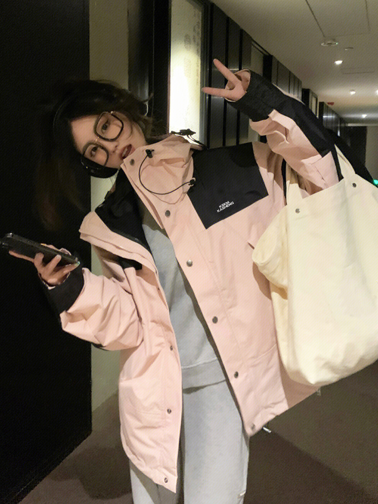粉色vintage山系衝鋒衣外套女春秋季新款美式戶外三合一情侶風衣