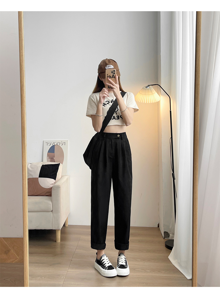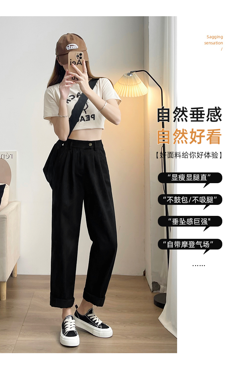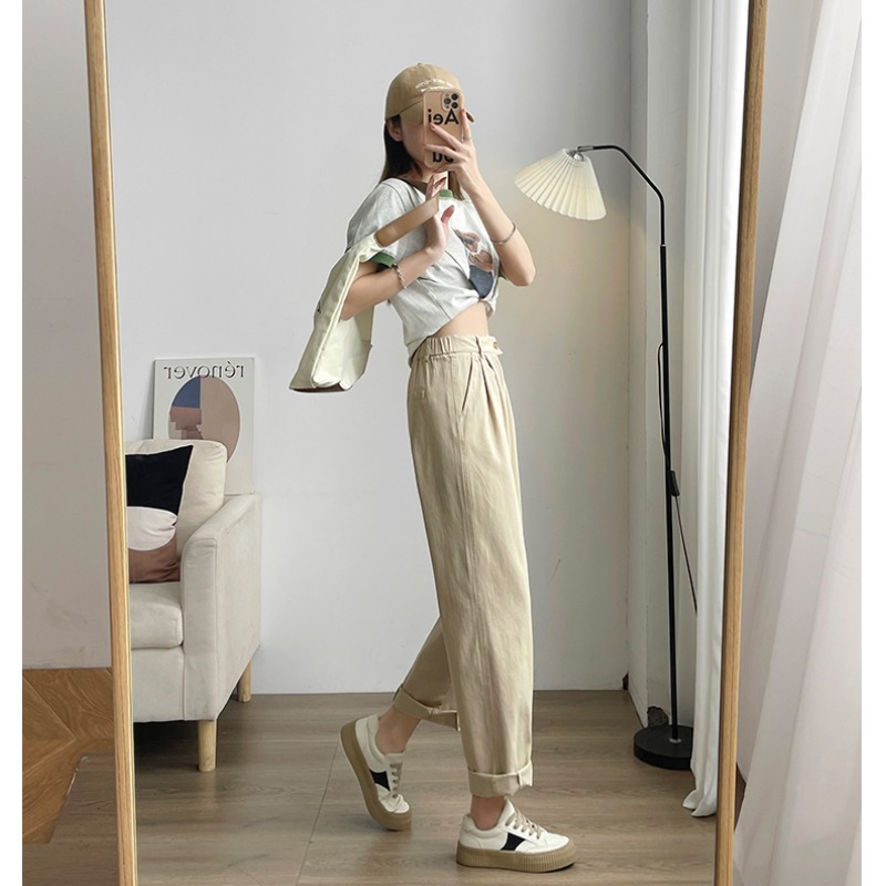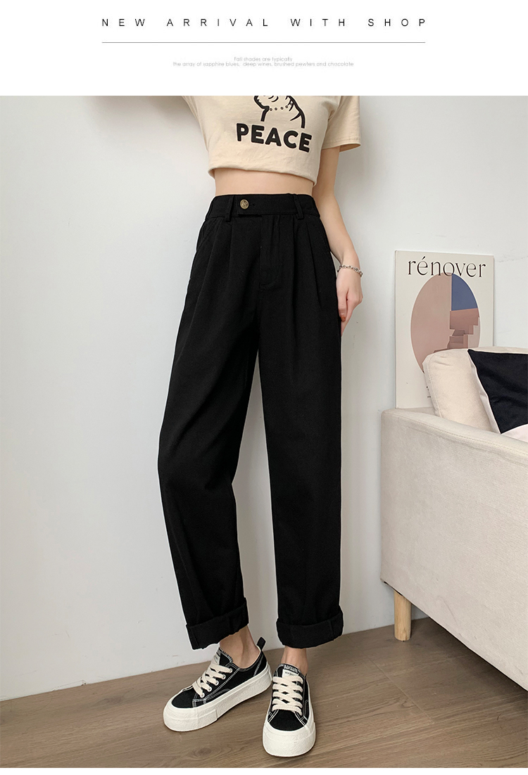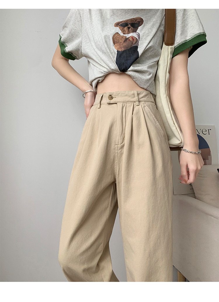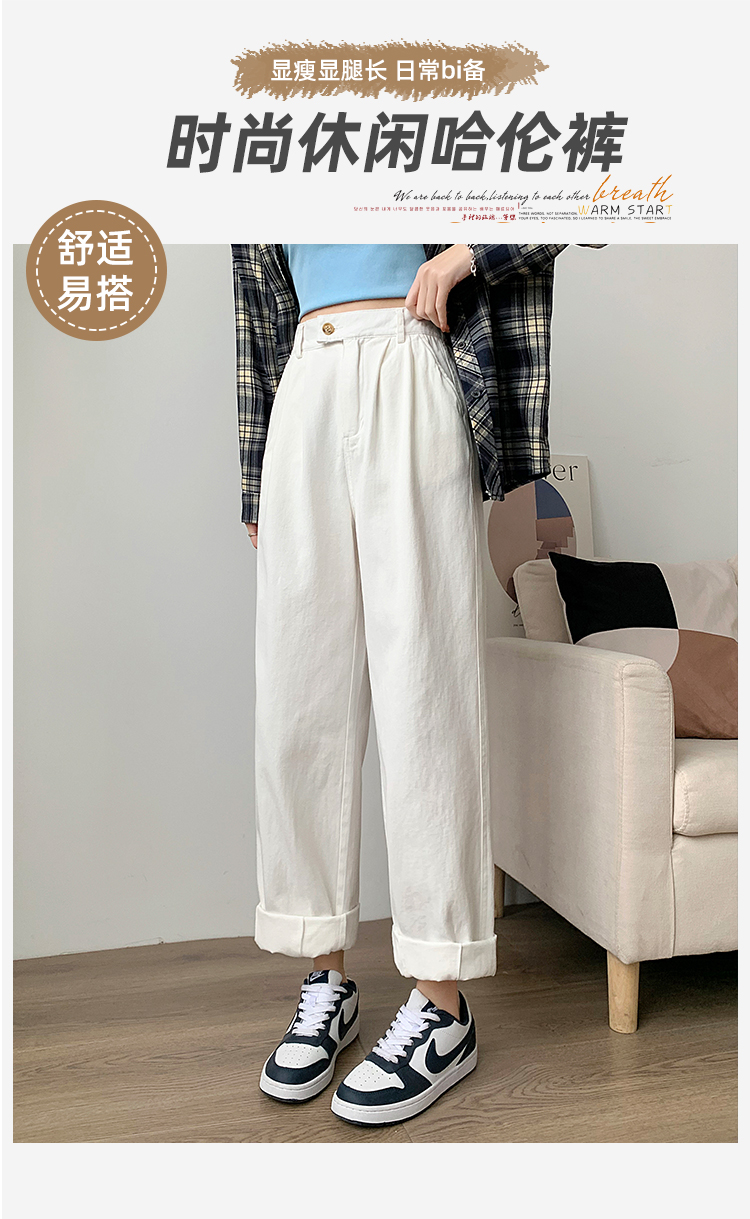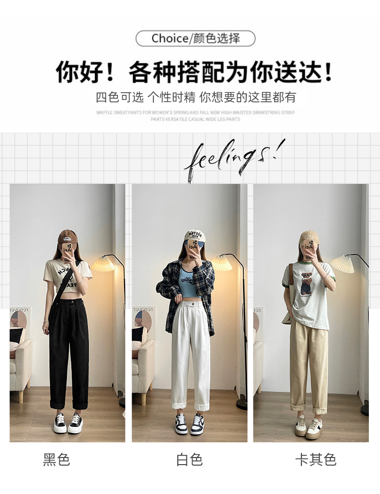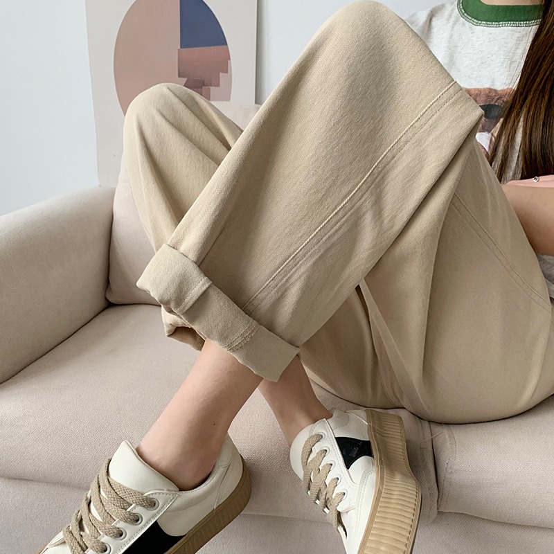 洗水棉工裝哈倫褲女秋季新款日系寬鬆羅蔔褲高腰顯瘦直筒老爹褲子