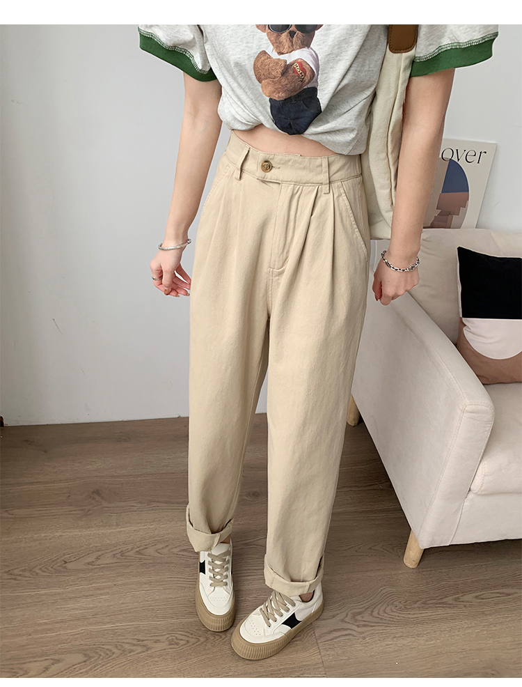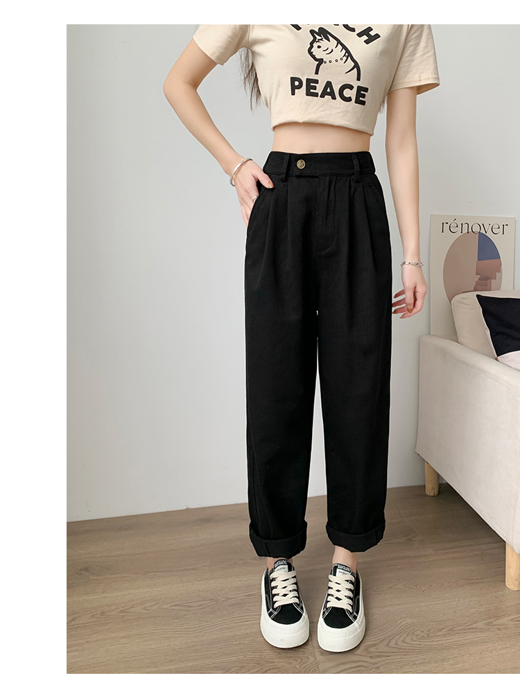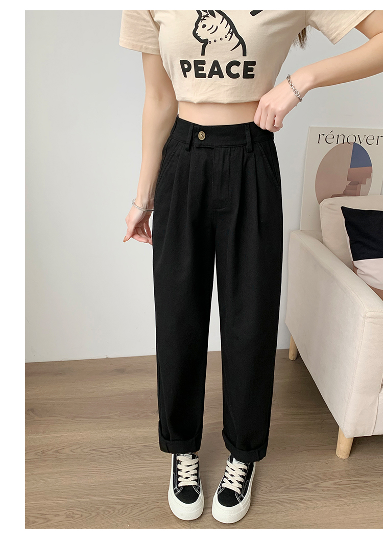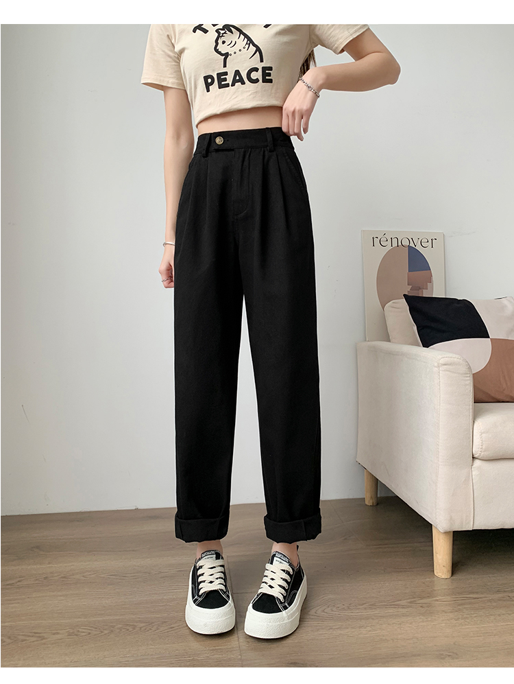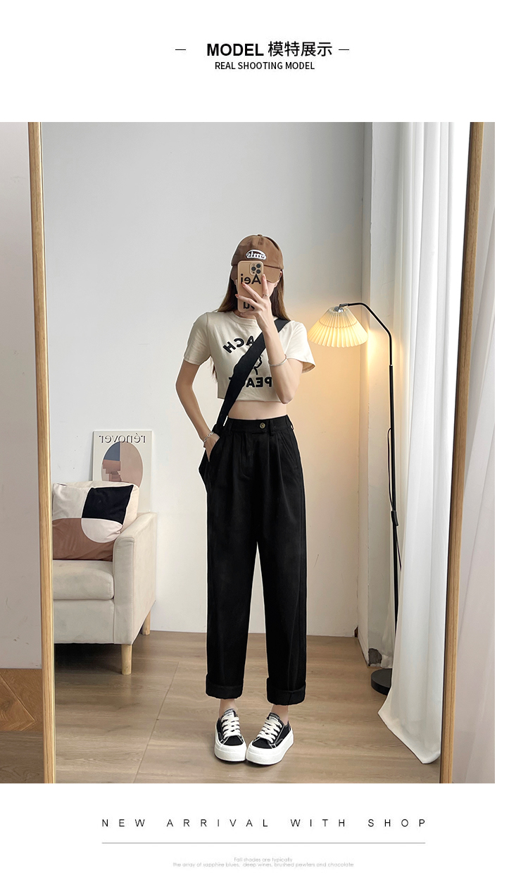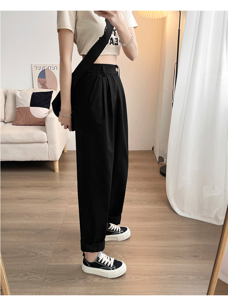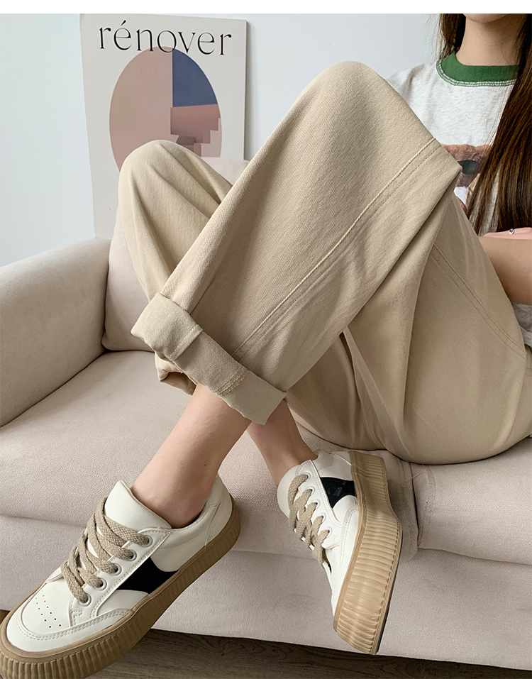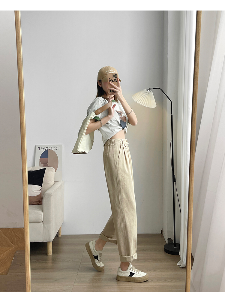 洗水棉工裝哈倫褲女秋季新款日系寬鬆羅蔔褲高腰顯瘦直筒老爹褲子