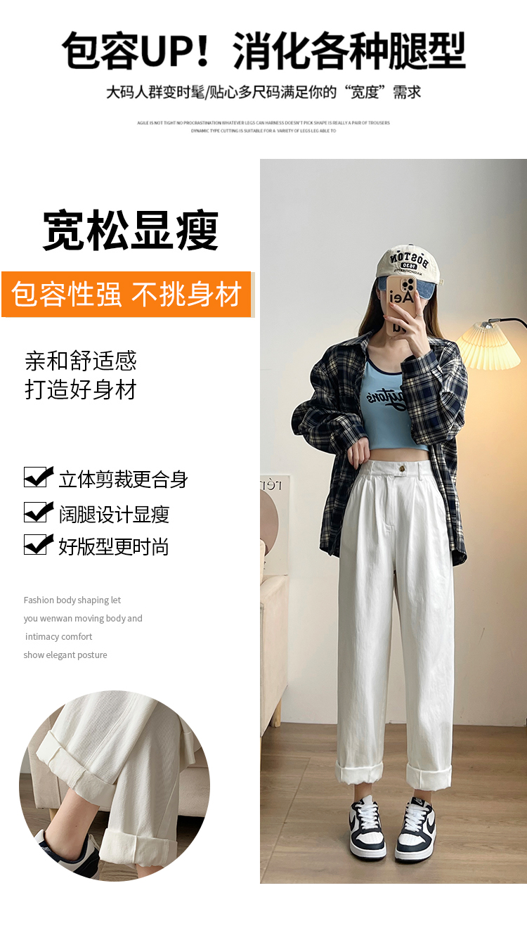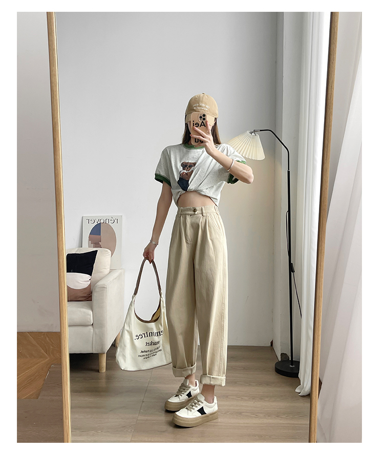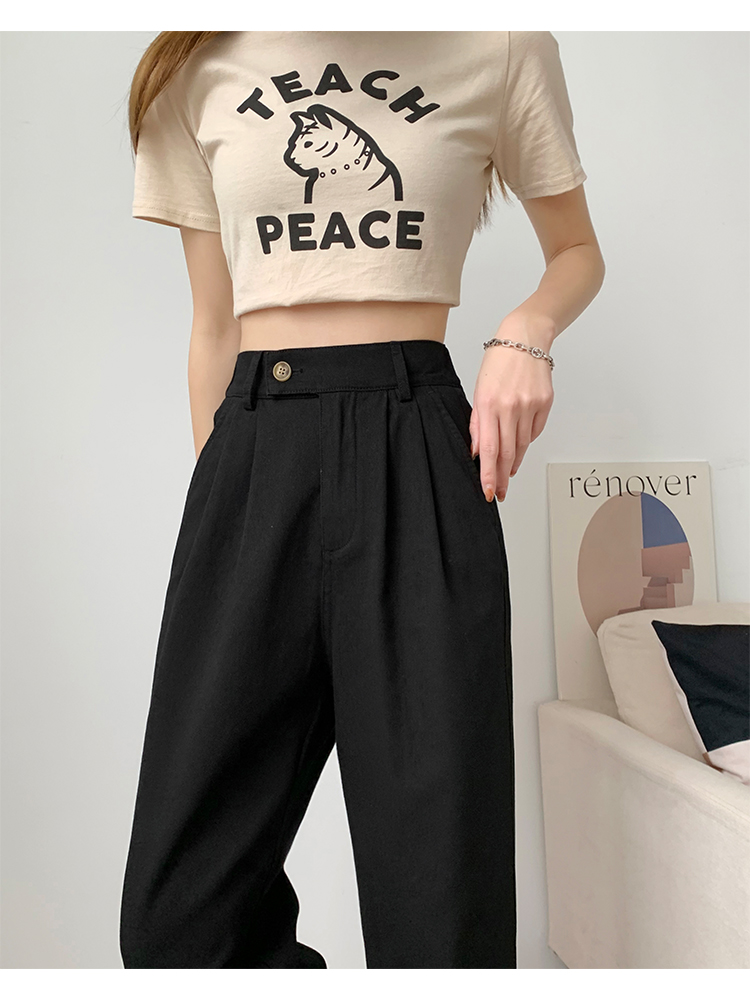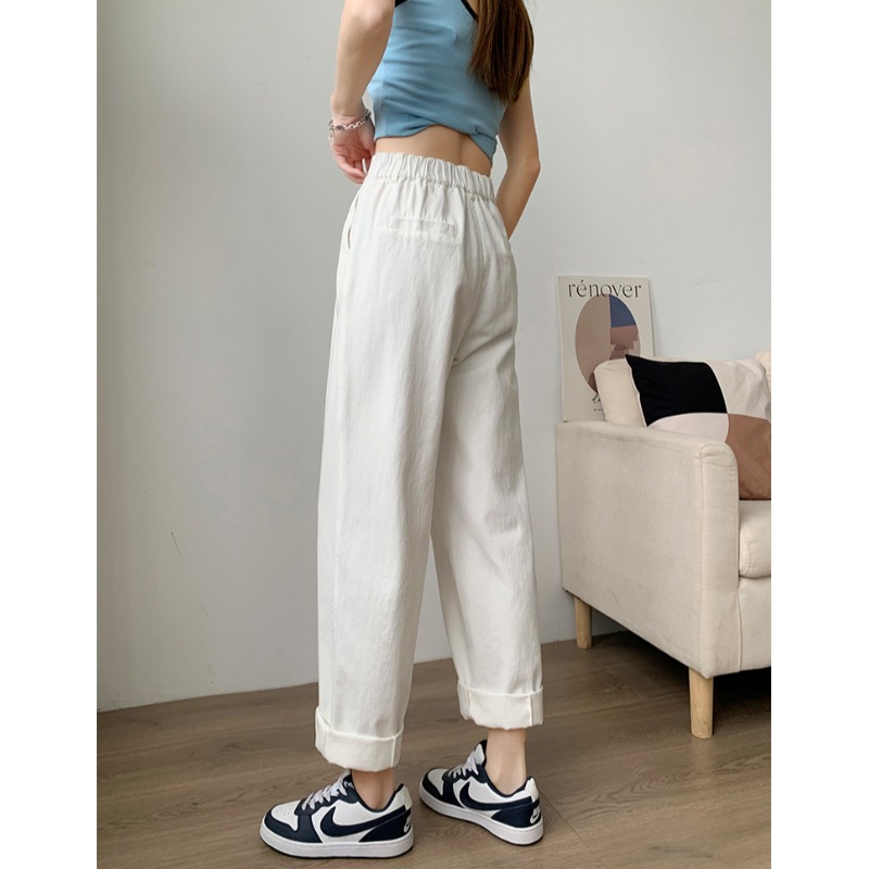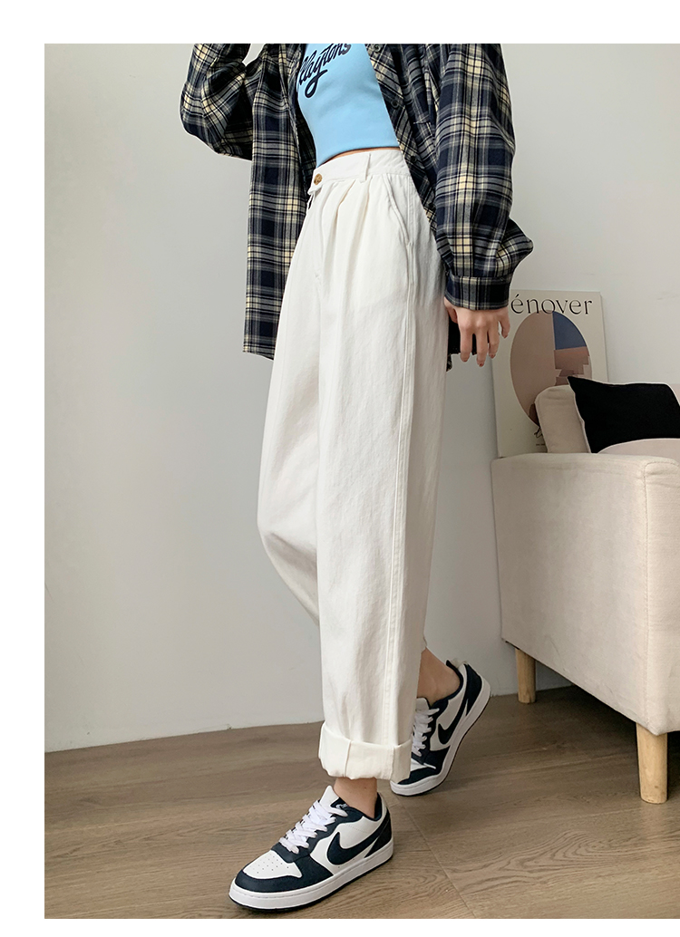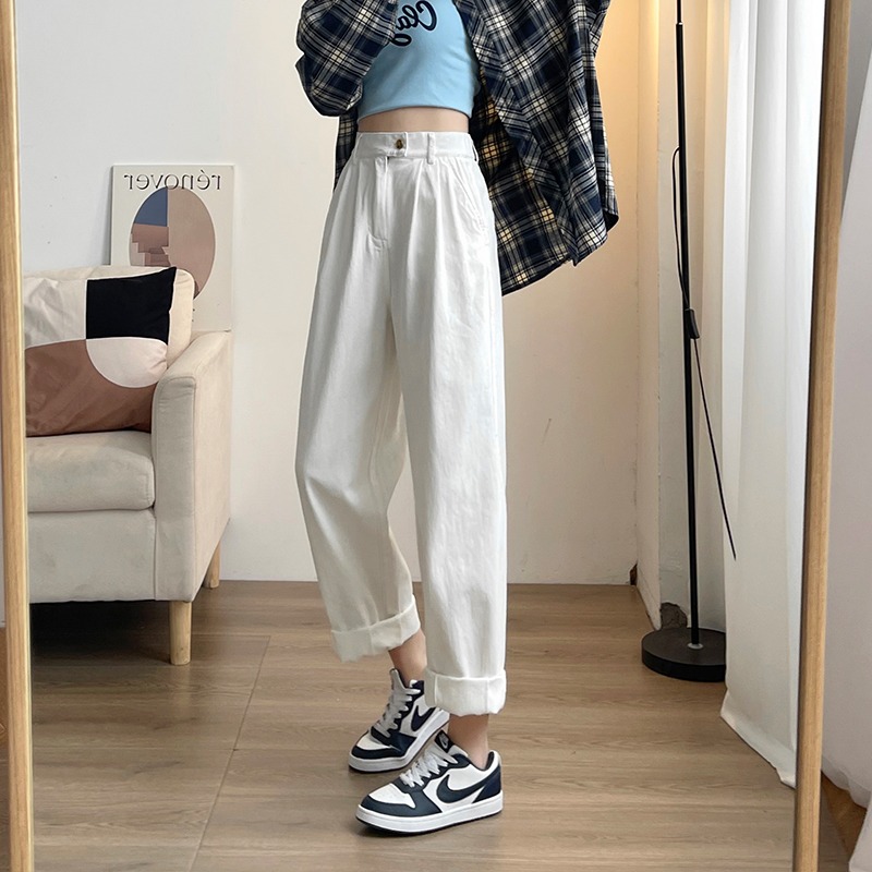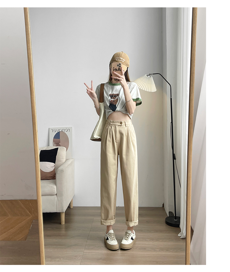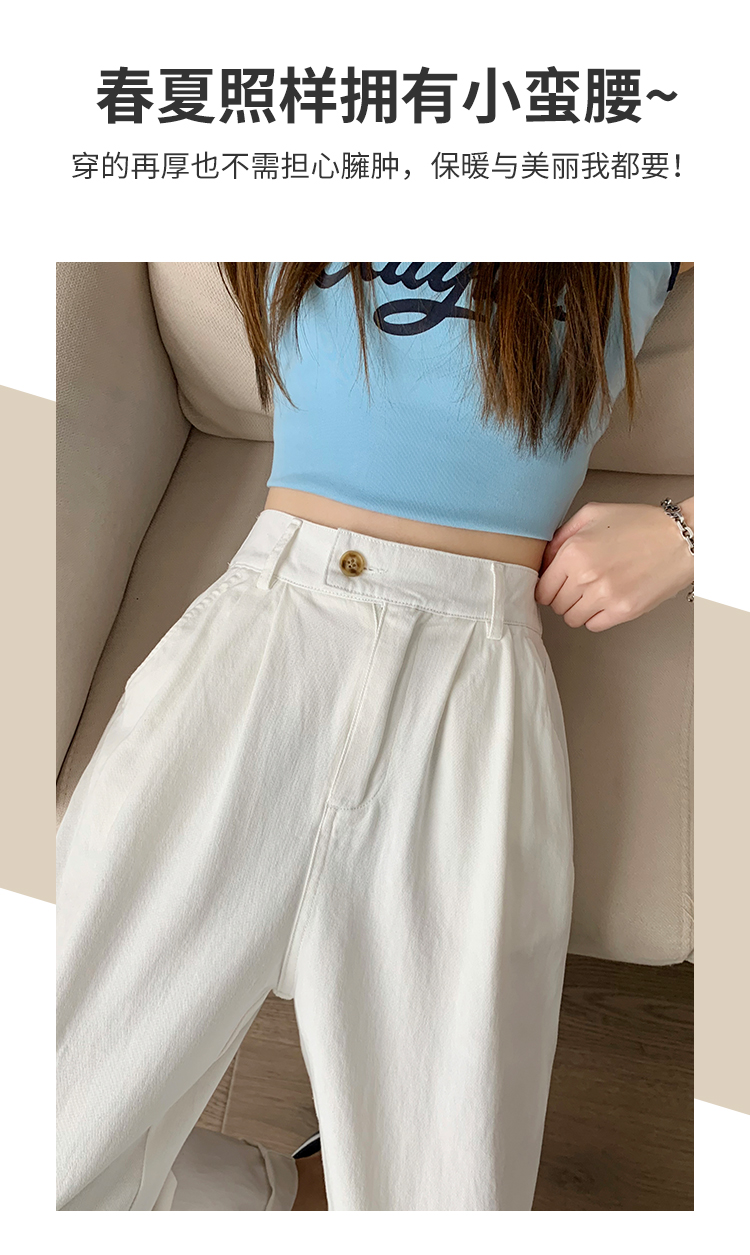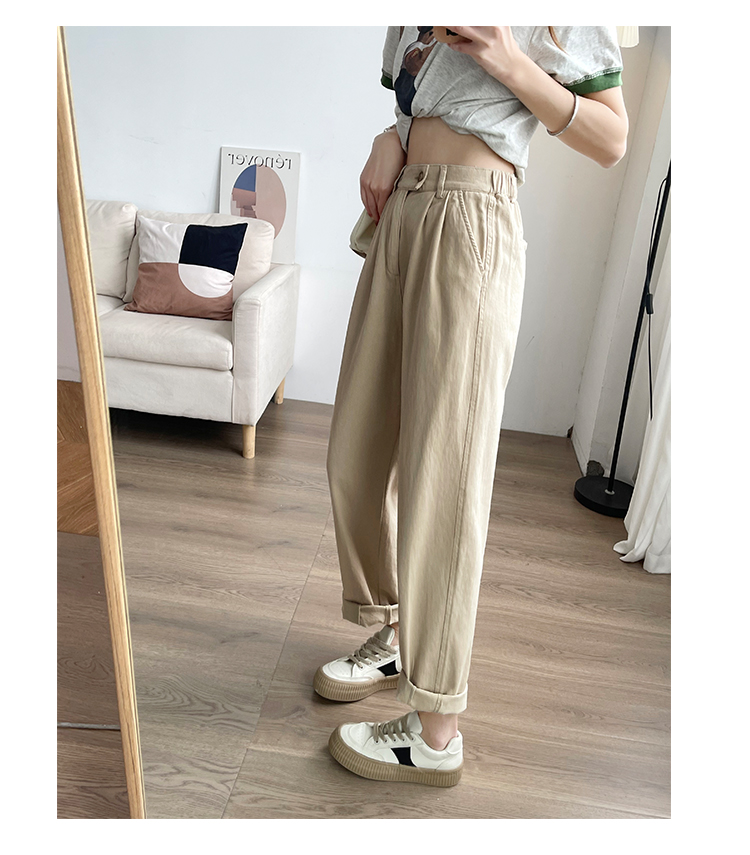 洗水棉工裝哈倫褲女秋季新款日系寬鬆羅蔔褲高腰顯瘦直筒老爹褲子