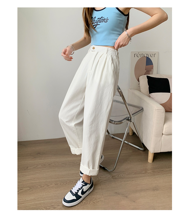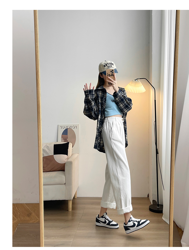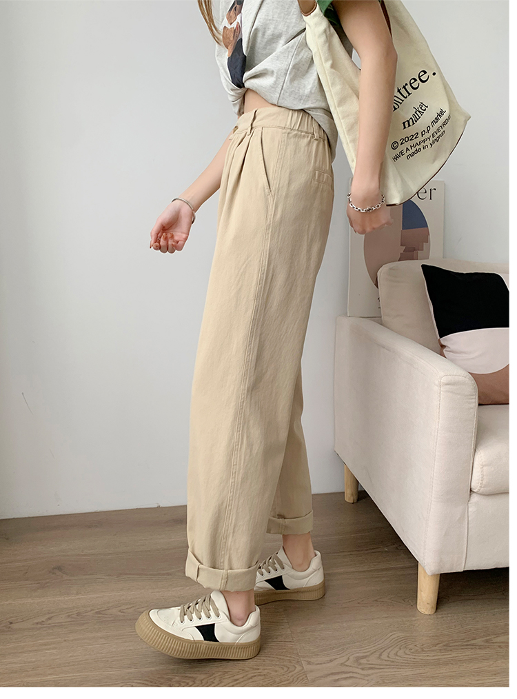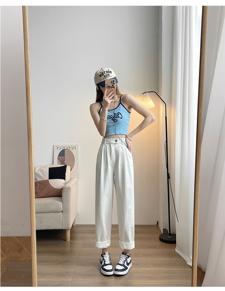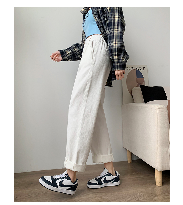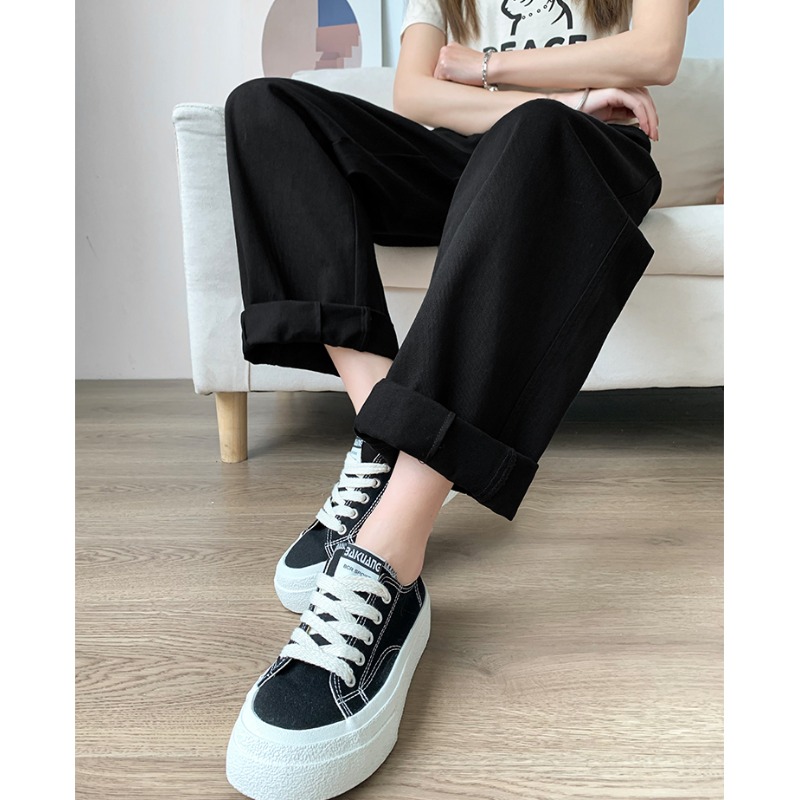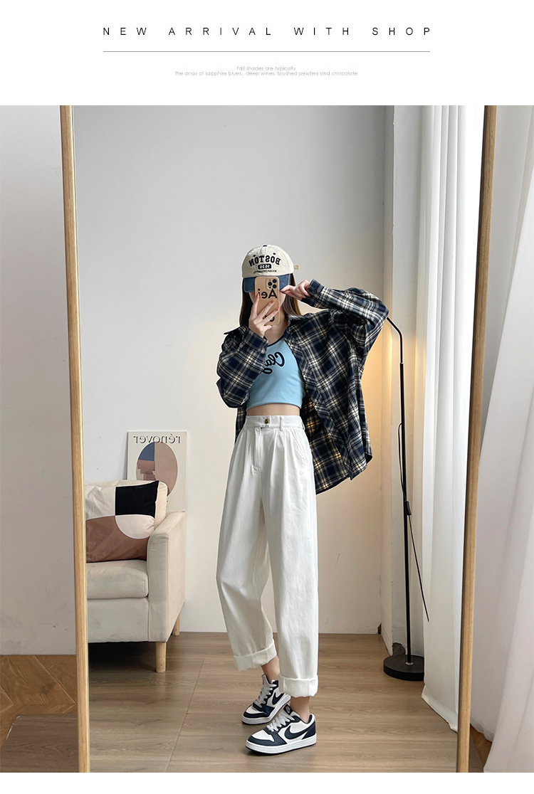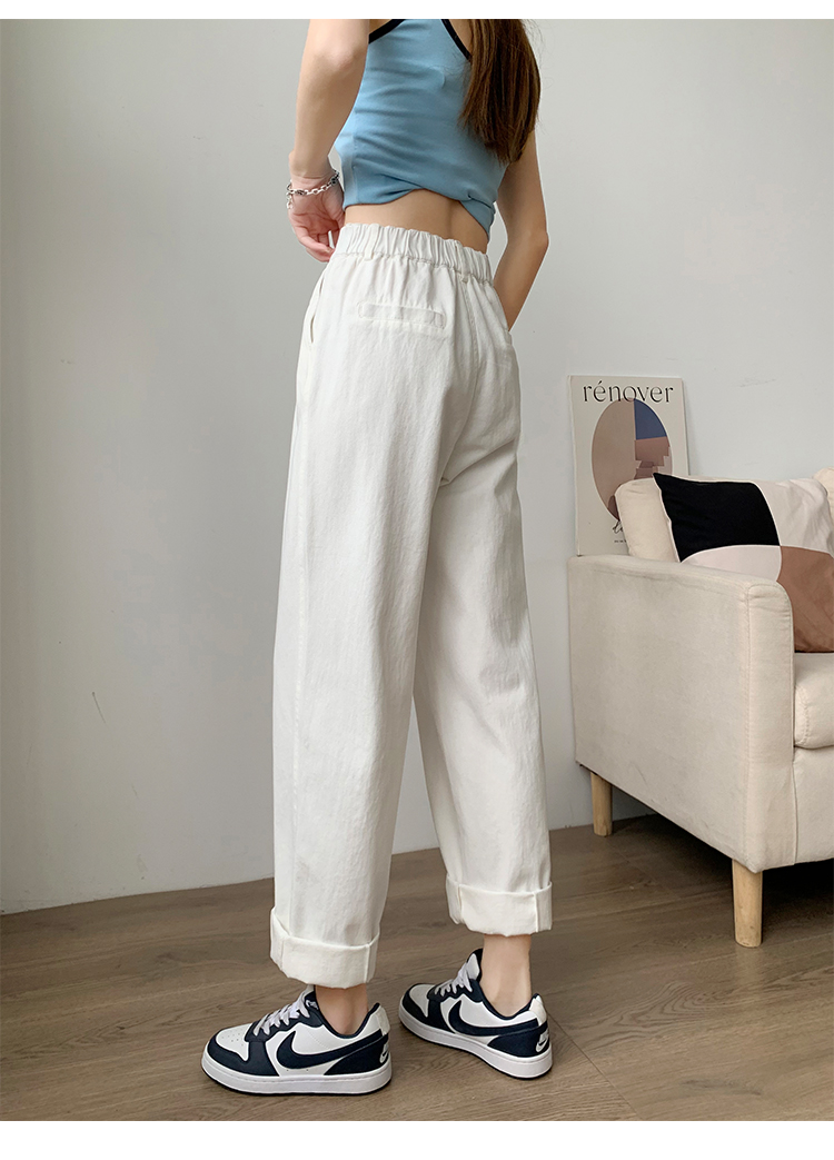 洗水棉工裝哈倫褲女秋季新款日系寬鬆羅蔔褲高腰顯瘦直筒老爹褲子