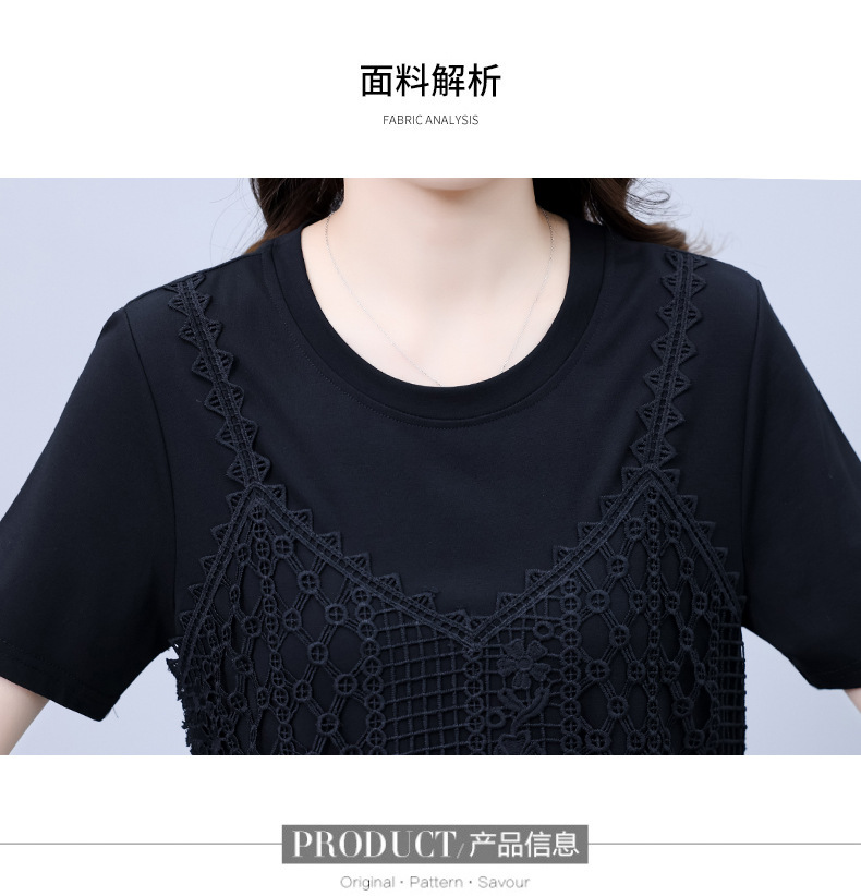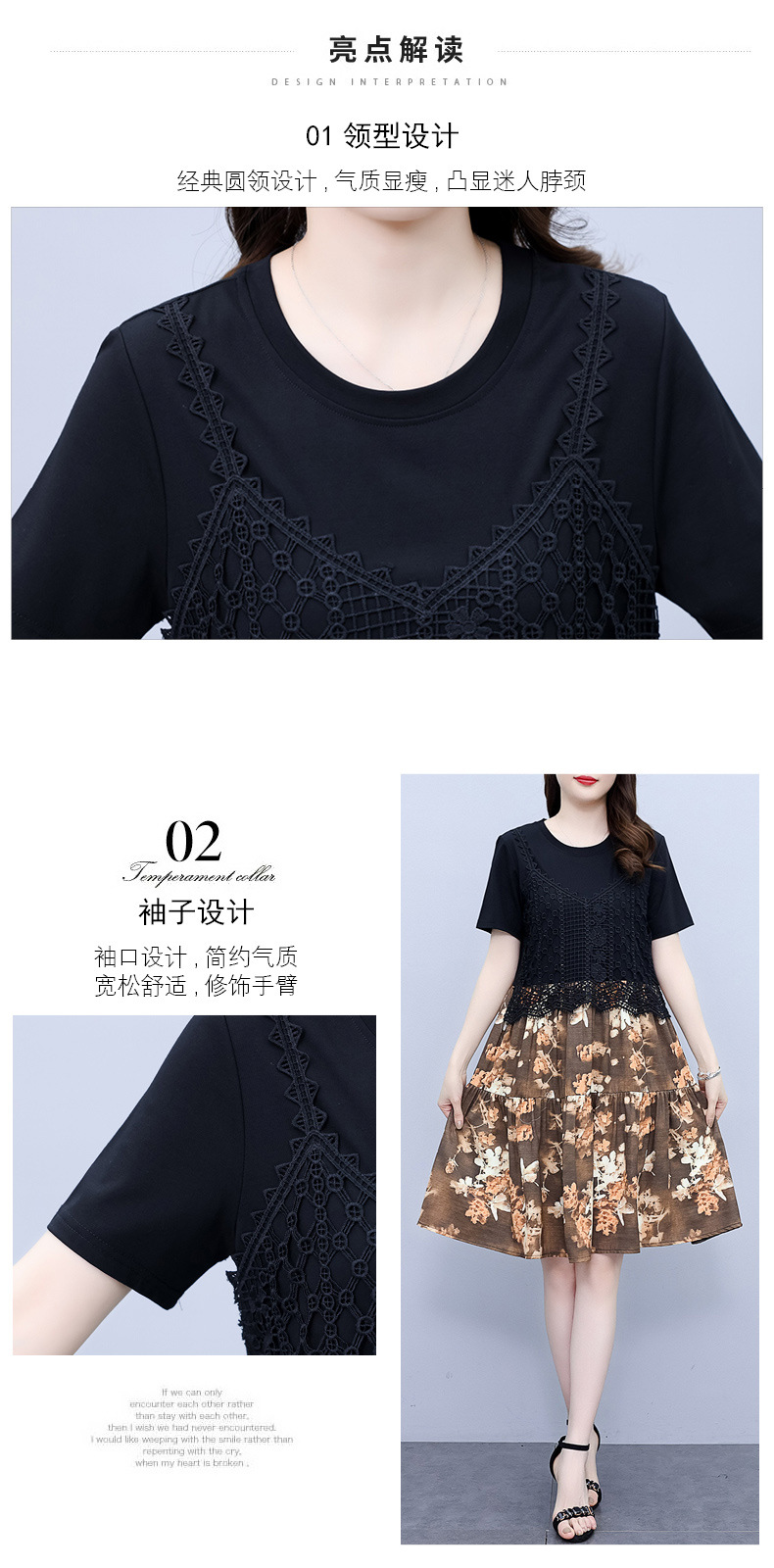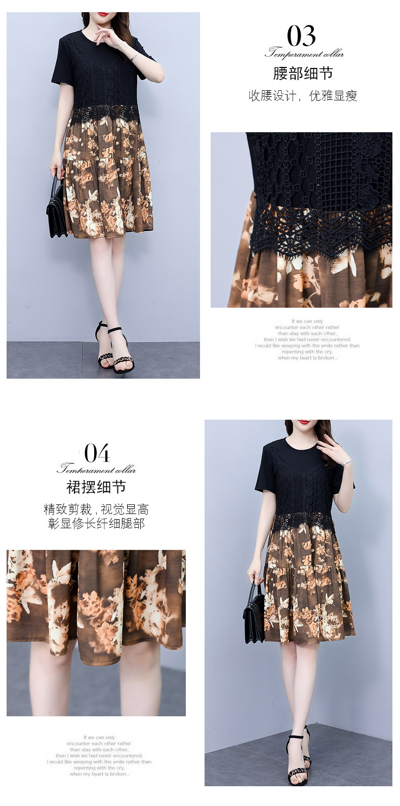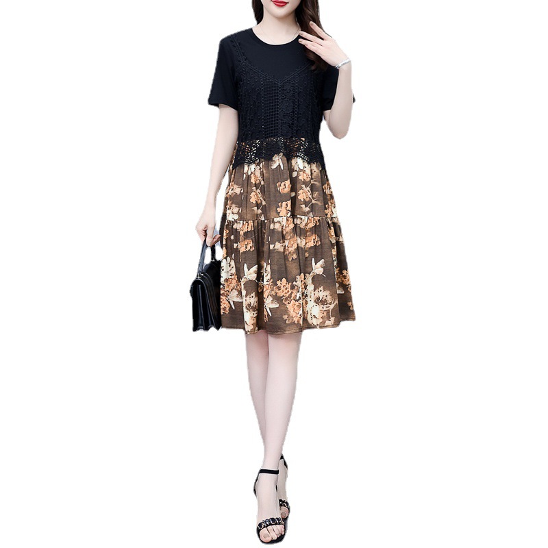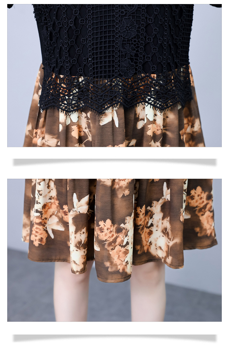 碎花连衣裙女2023夏季新款时尚气质胖MM遮肚显瘦蕾丝印花假两件