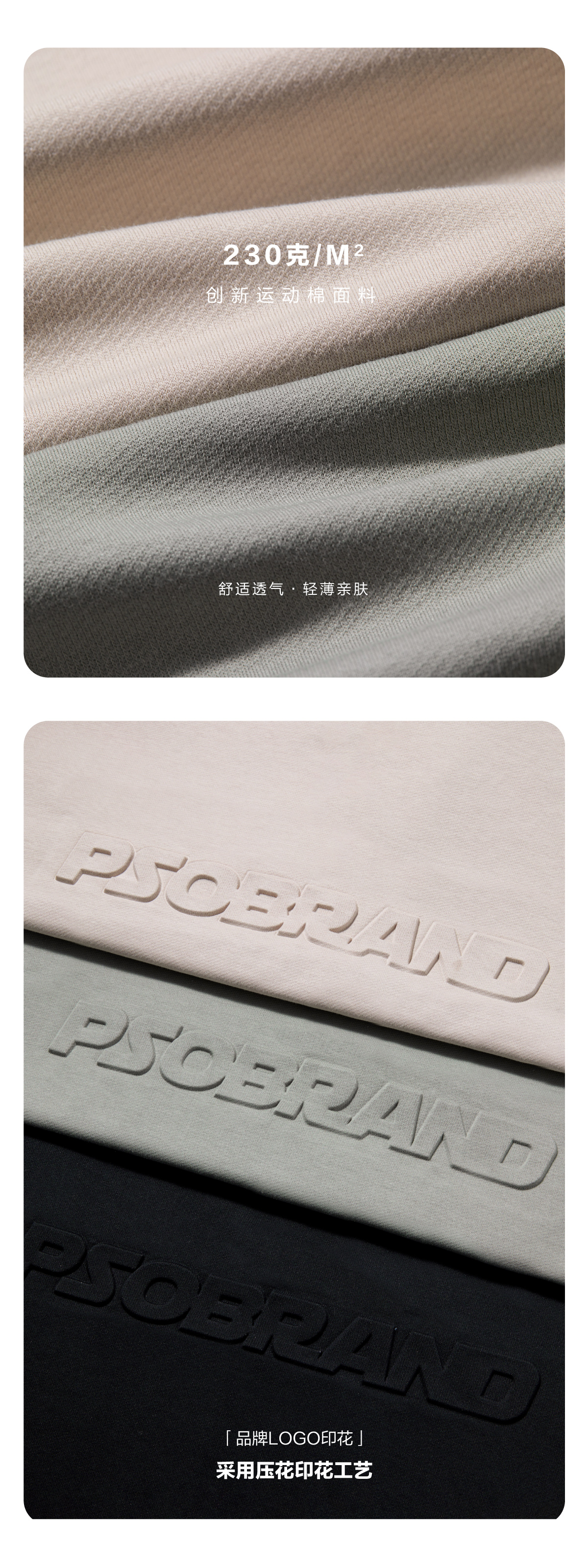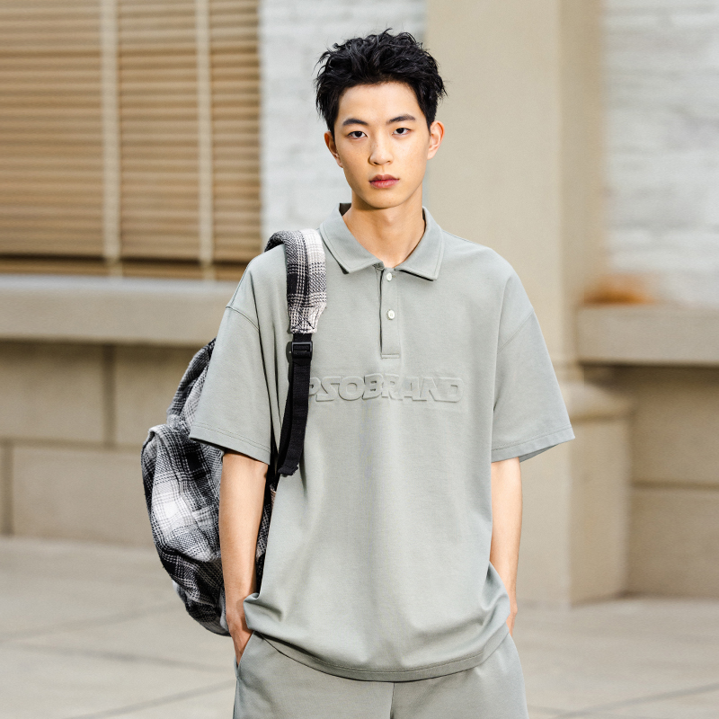 PSO Brand 230克透氣運動棉面料LOGO立體壓花短袖POLO衫男翻領T恤