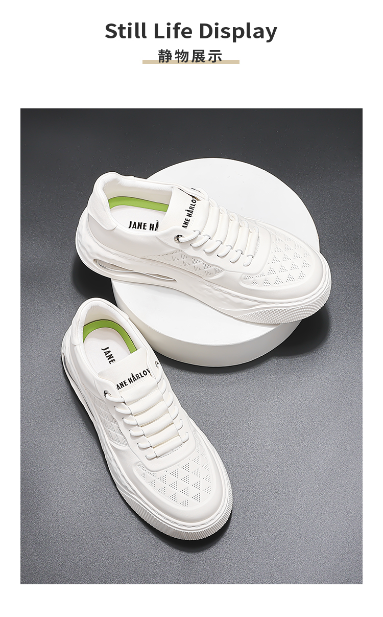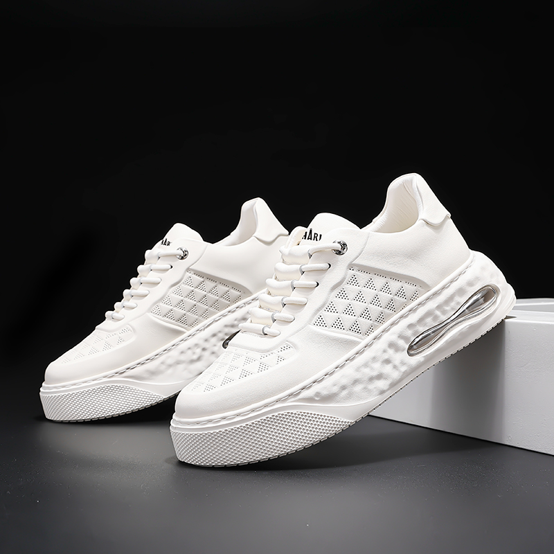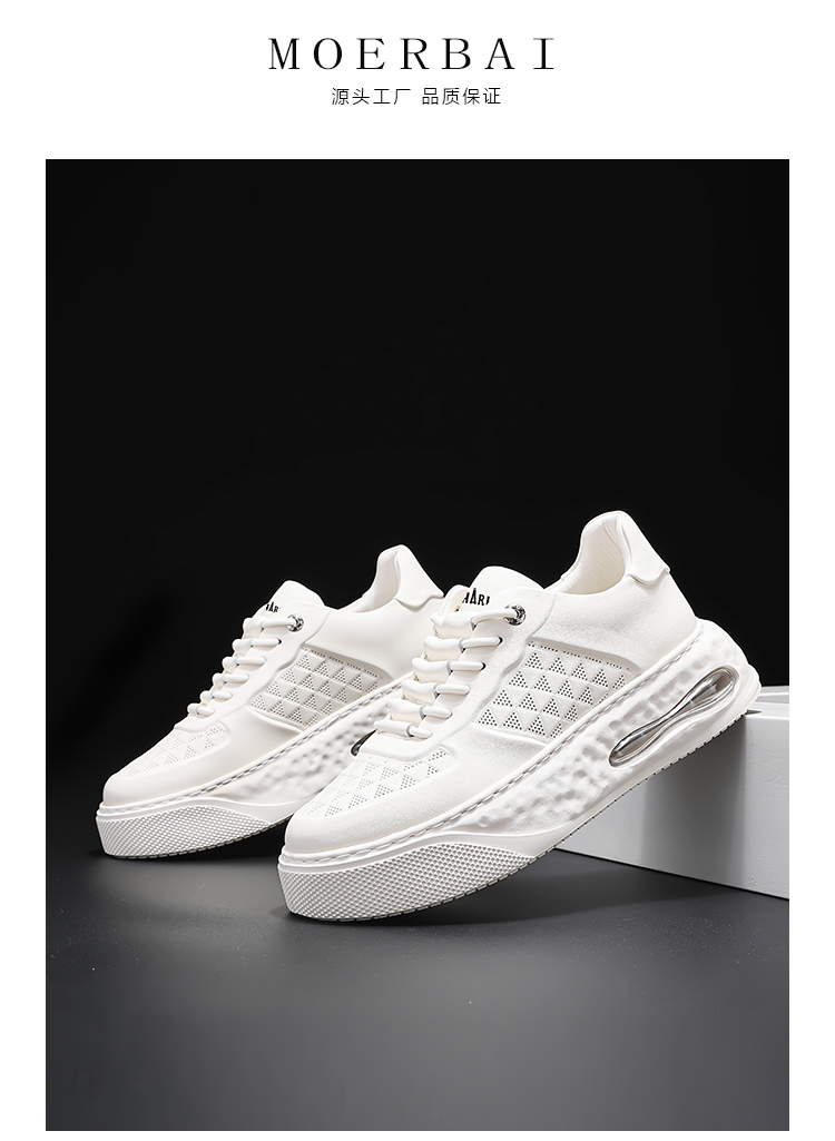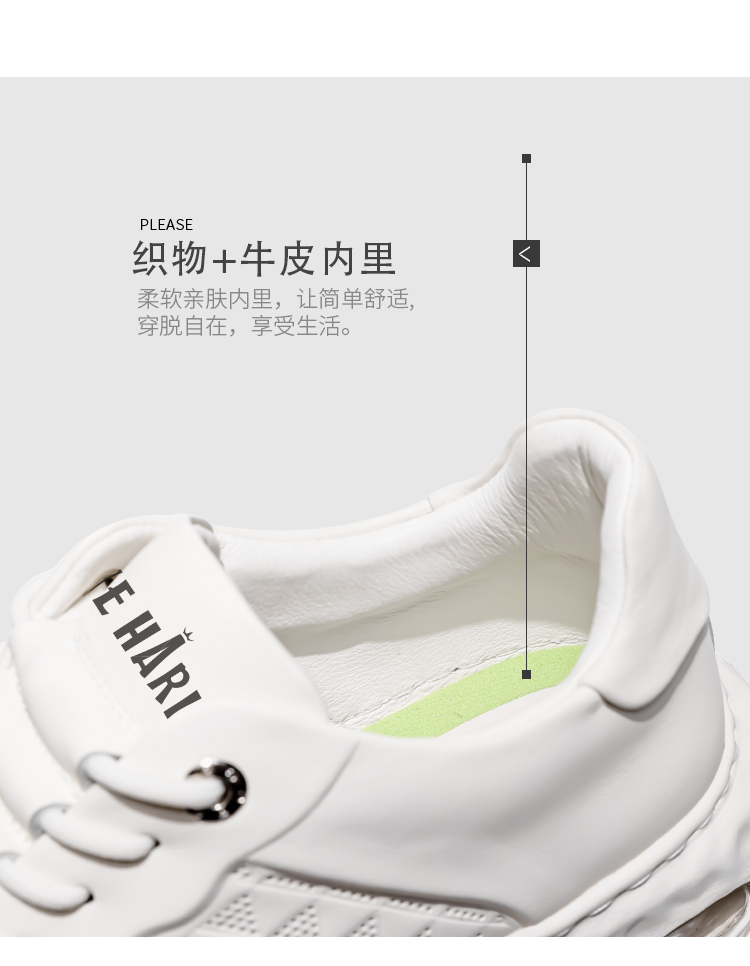 頭層牛皮小白鞋男2023新款夏季增高男士氣墊百搭休閒運動板鞋男鞋
