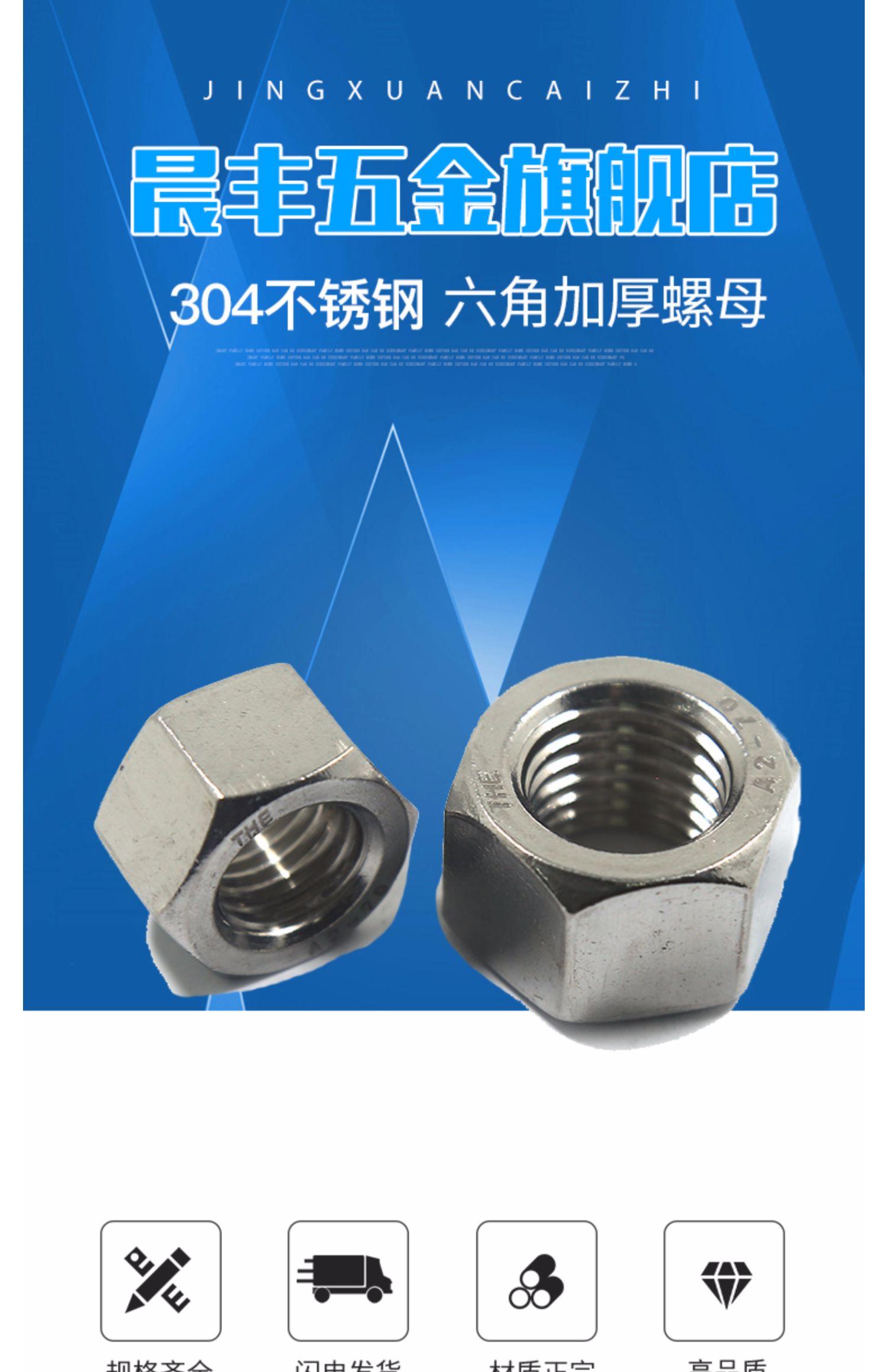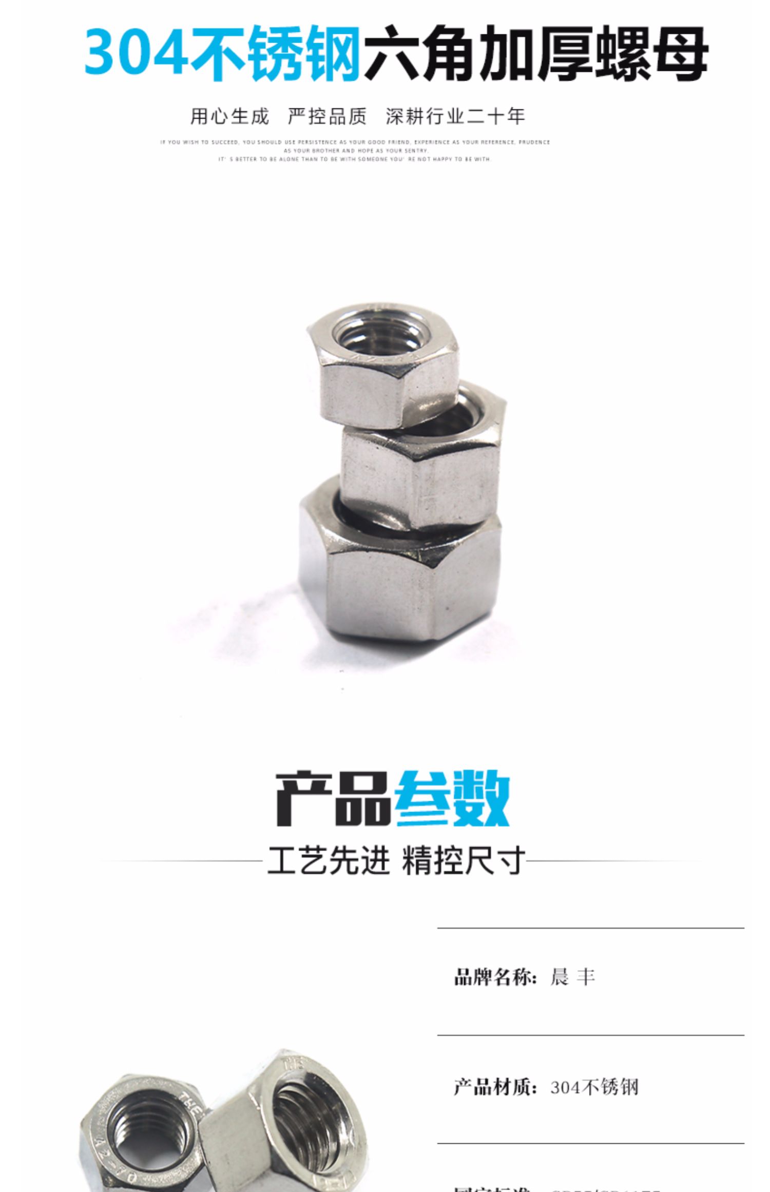 SG8Y批发晨丰 304不锈钢六角加厚螺母加高螺帽 GB55/GB6175 M3M4M
