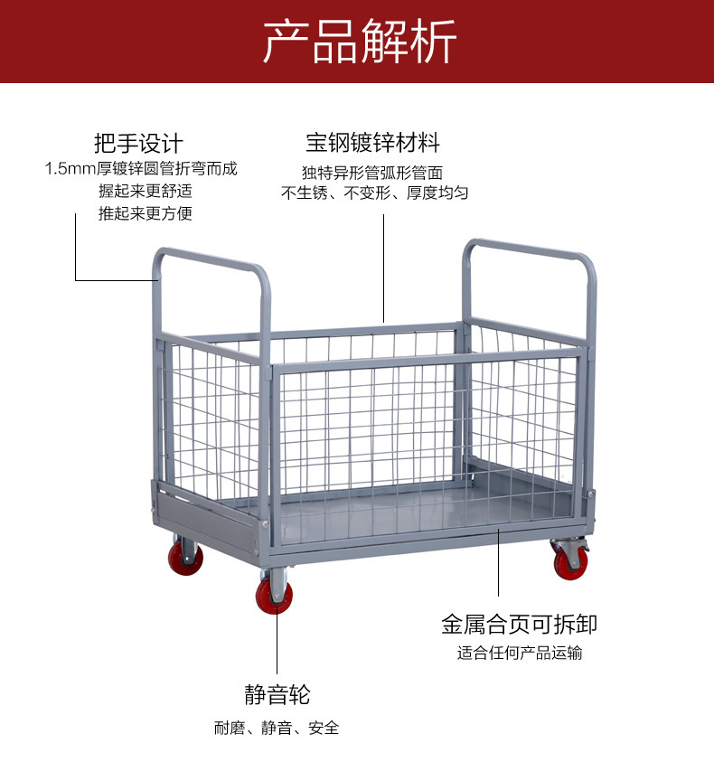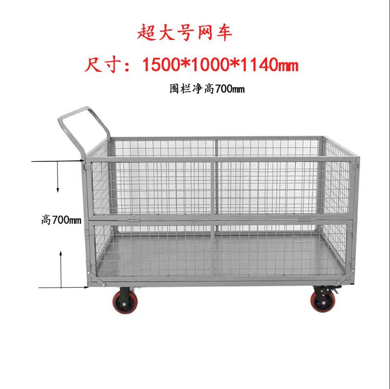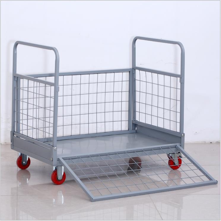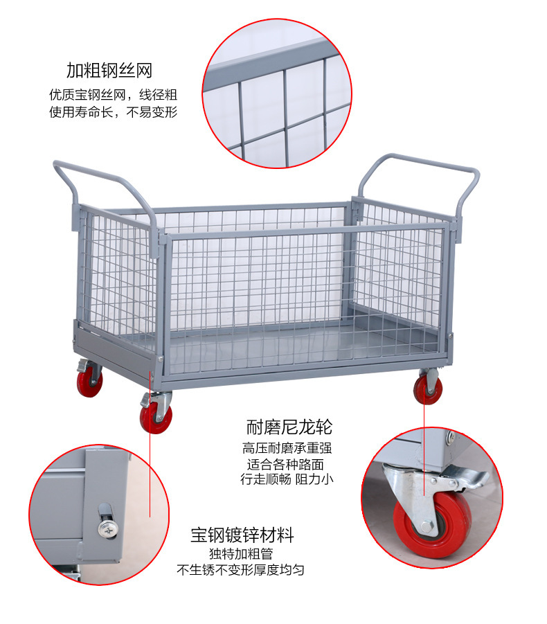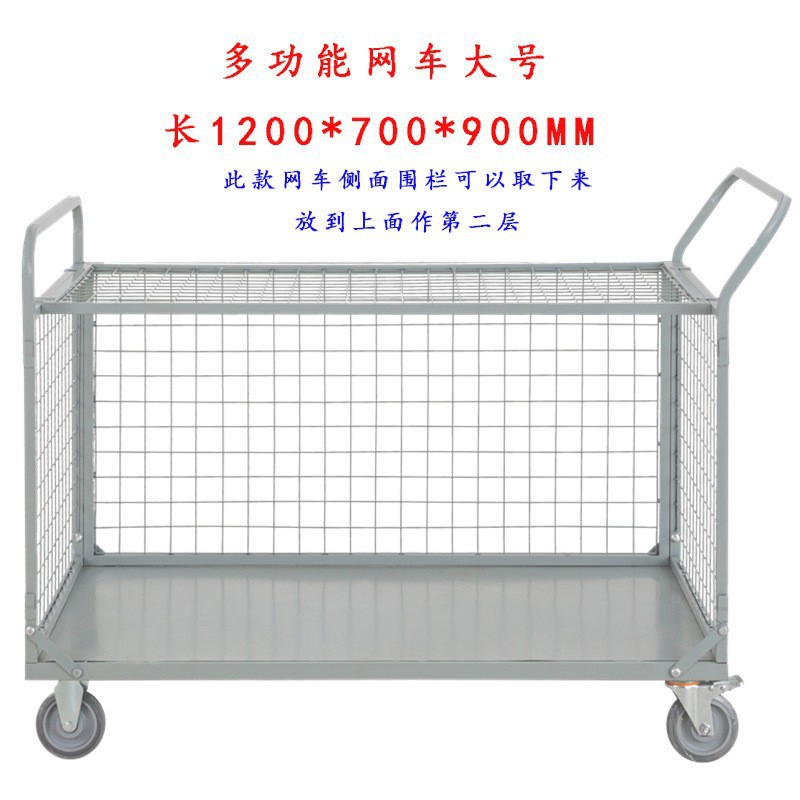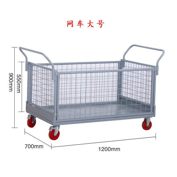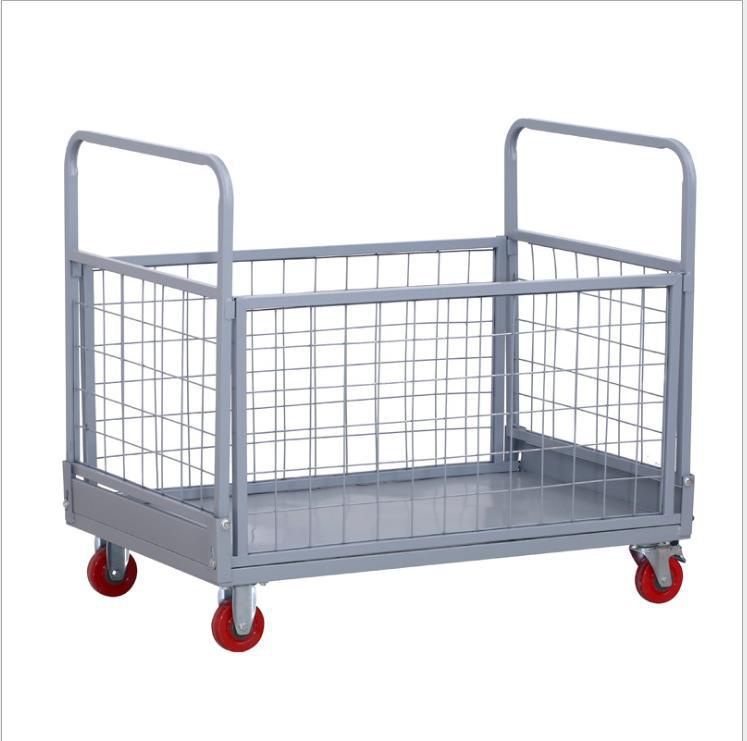 铁艺推车摆摊拉货小推车折叠带框围栏快递周转仓库货物搬运手推车