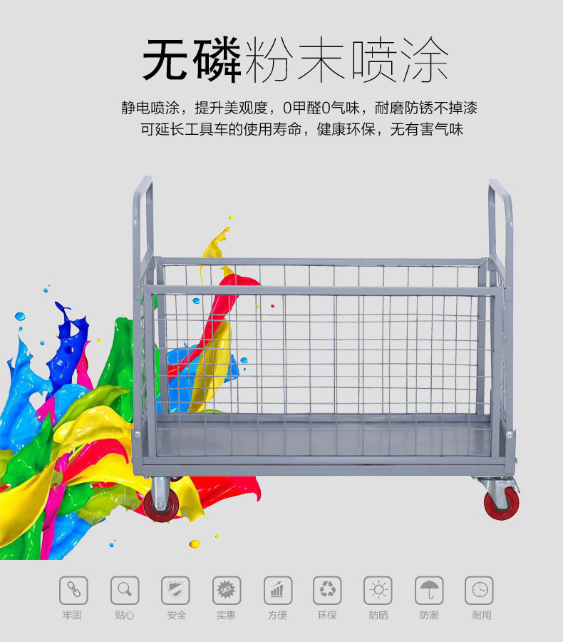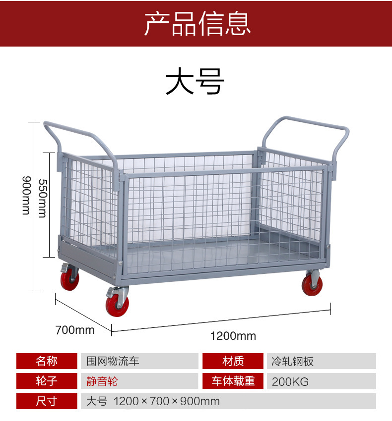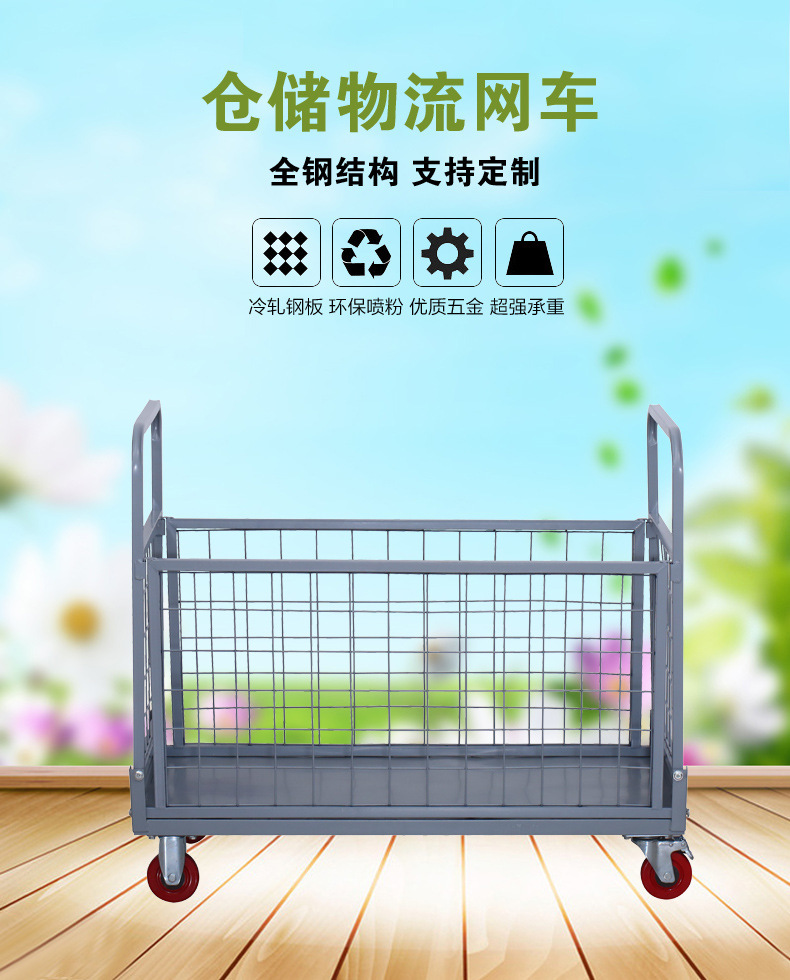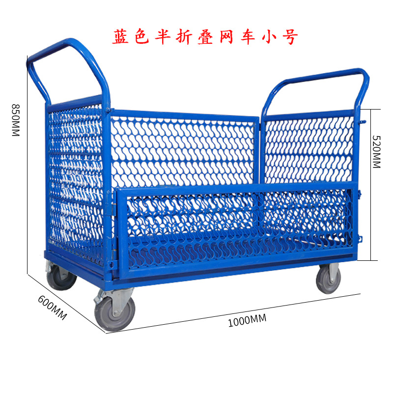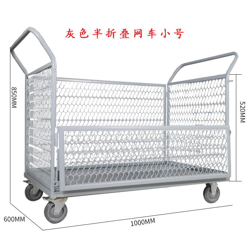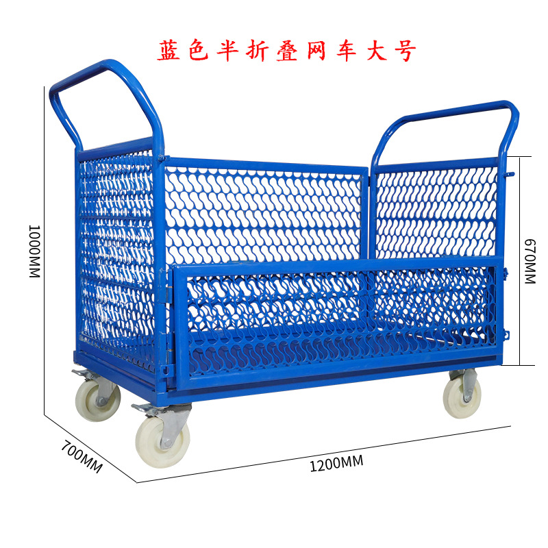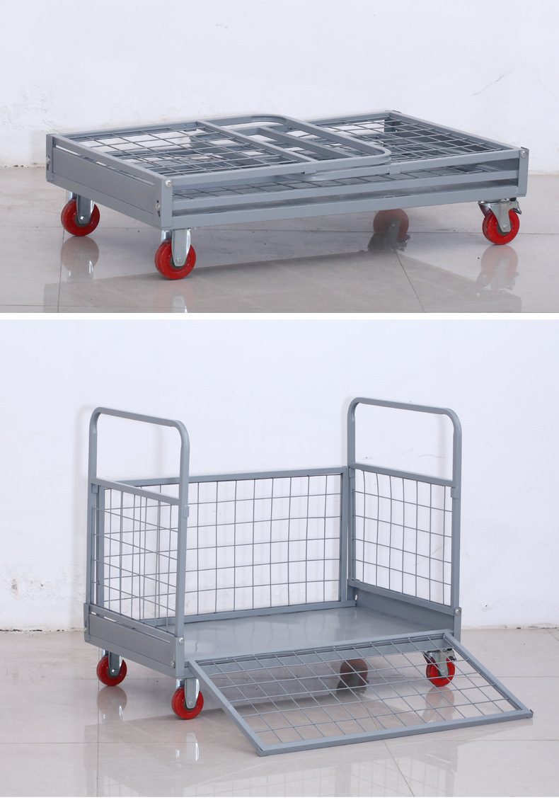 铁艺推车摆摊拉货小推车折叠带框围栏快递周转仓库货物搬运手推车