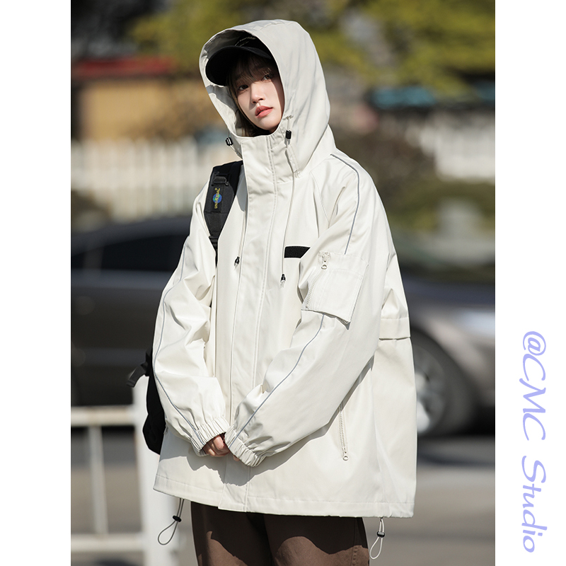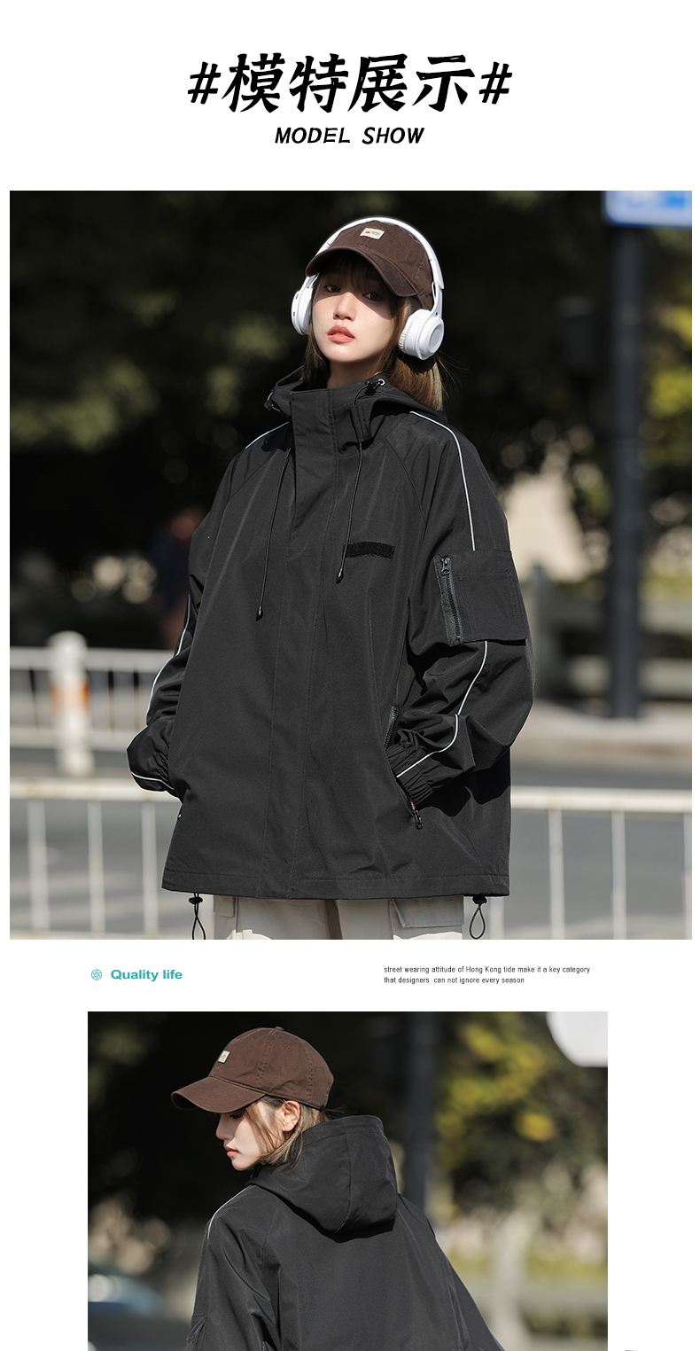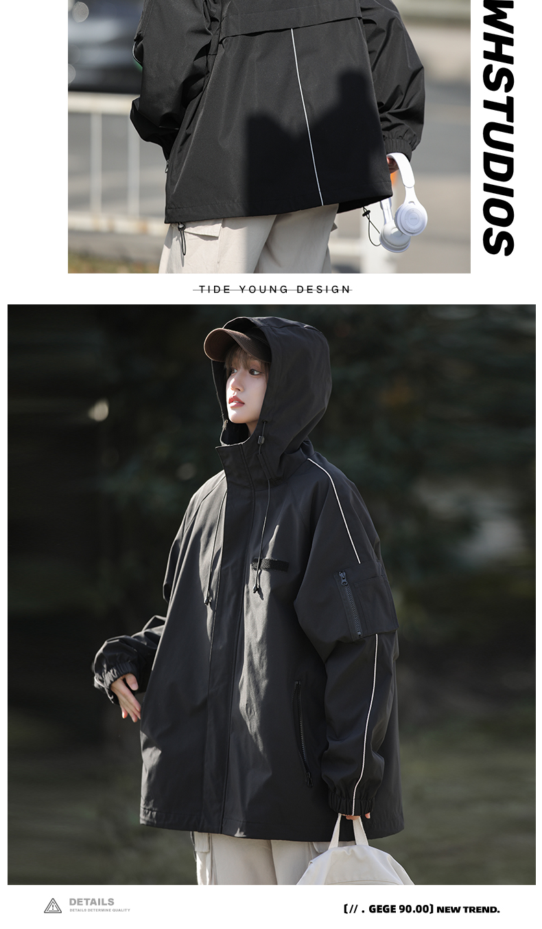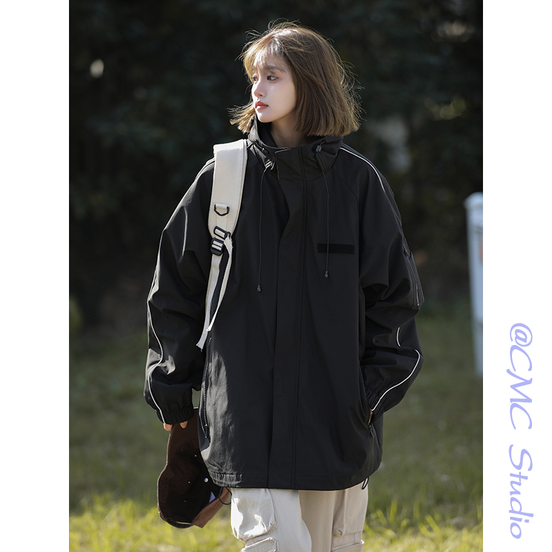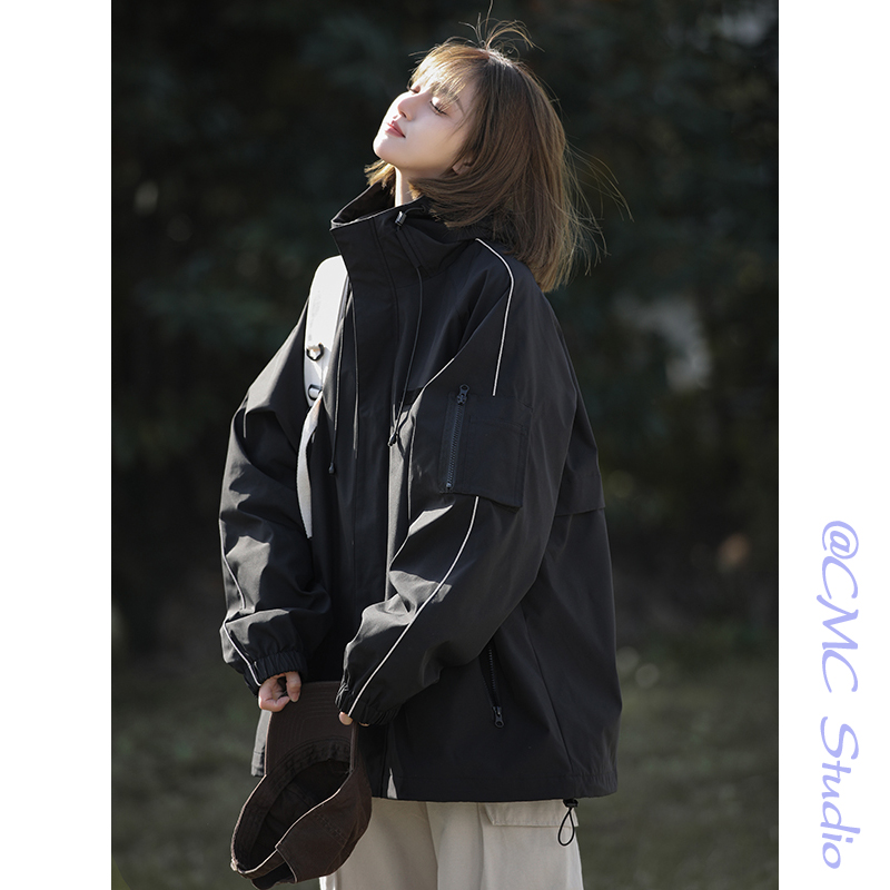 黑色高級感衝鋒衣女春秋戶外運動工裝夾克今年流行漂亮設計感外套