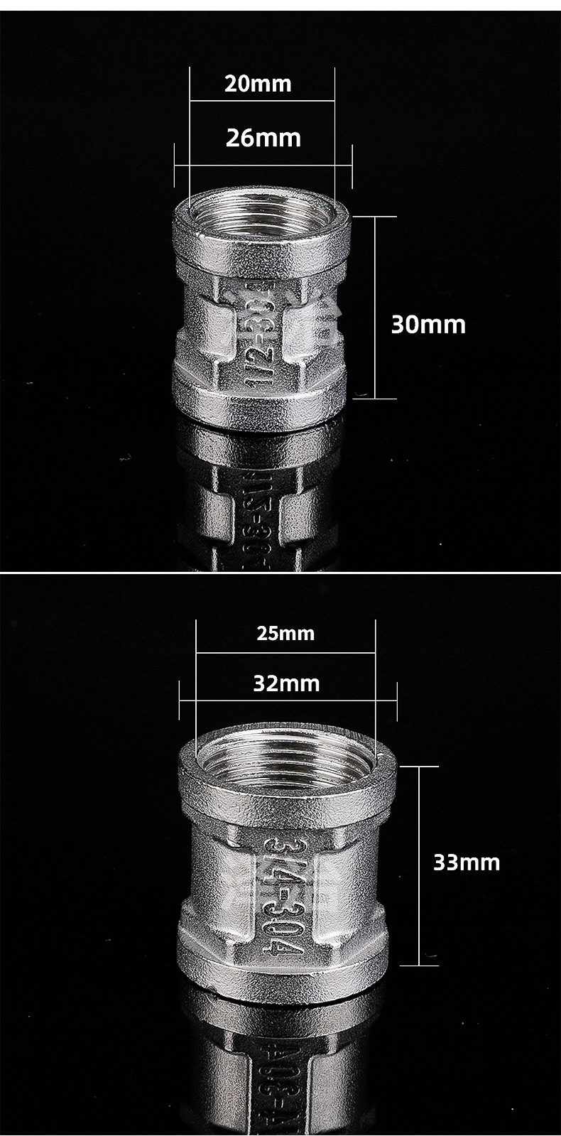 不锈钢管古 双内丝管古 内螺纹1/2 3/4 1寸不锈钢内丝管箍
