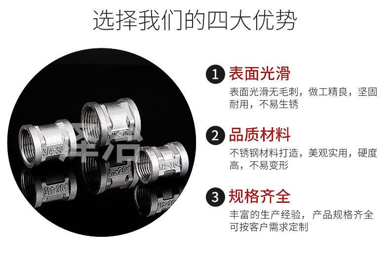 产品规格 4分(304材质),4分中体(201材质),4分大体(201材质),6分(201材质),1寸(201材质)