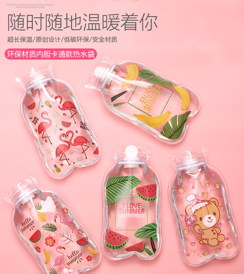 新款卡通热水袋迷你透明PVC热水袋 小号注水暖手袋充水暖手宝批发