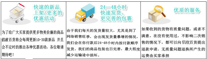由本店售出的产品,若有质量问题,一律负责到底。 恕不接受任何非质量原因的退货及换货。