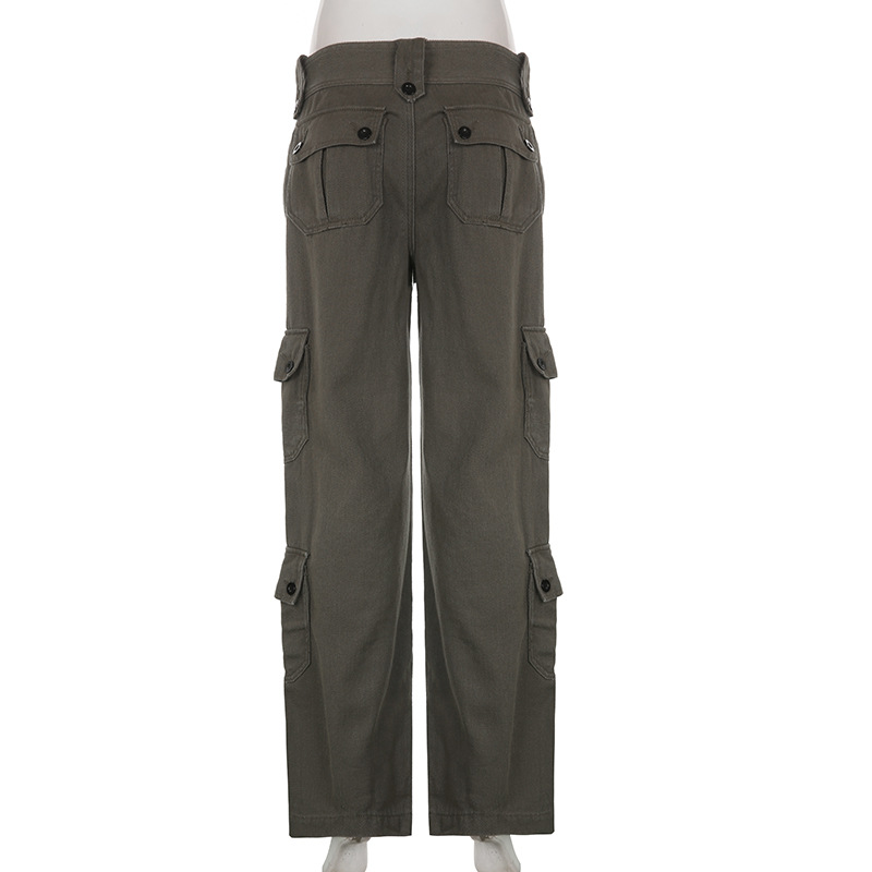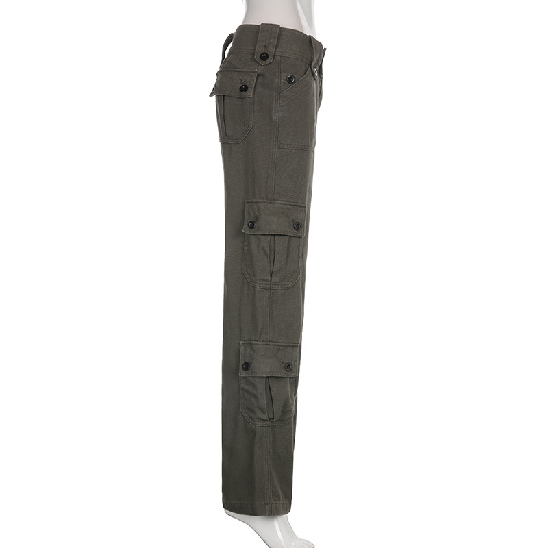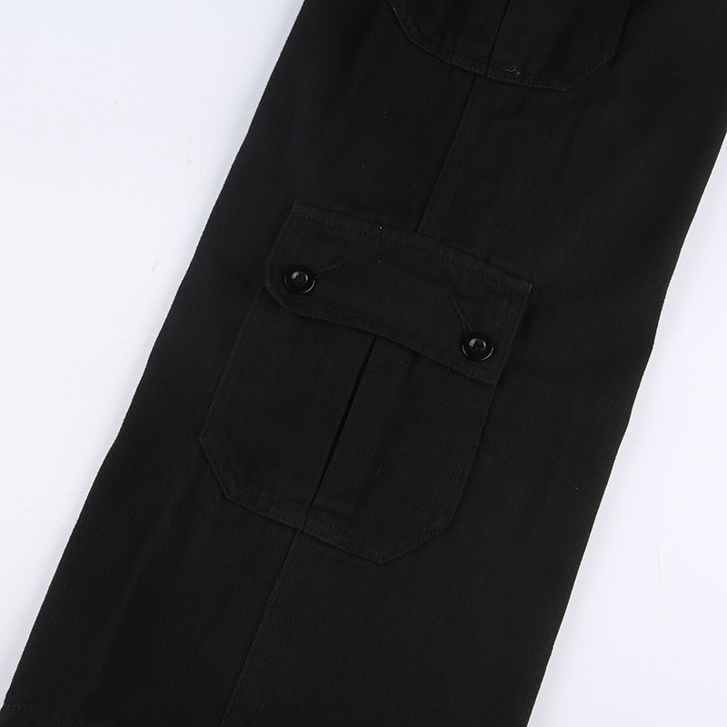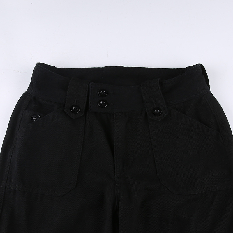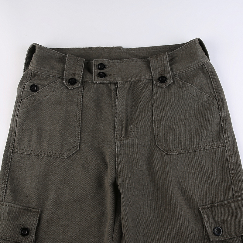 美式街头辣妹跨境2022夏季低腰双排系扣潮人工装多口袋牛仔休闲裤