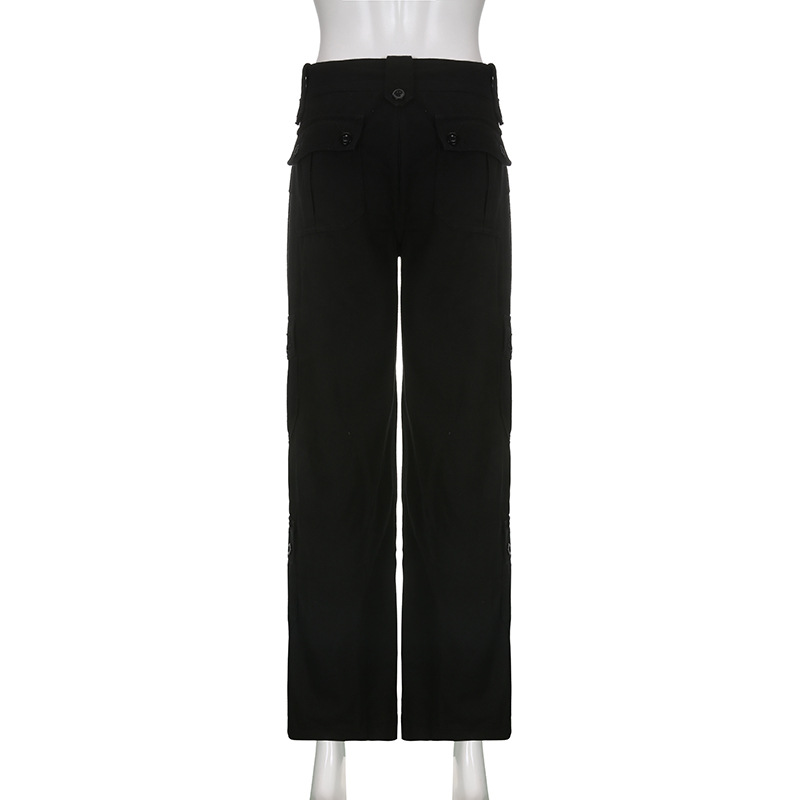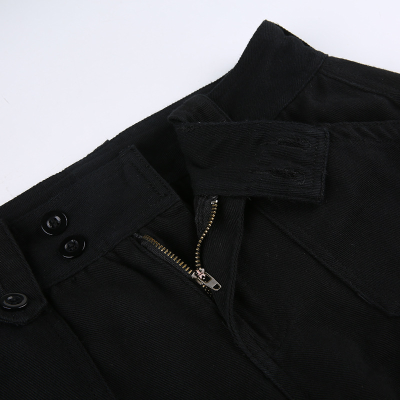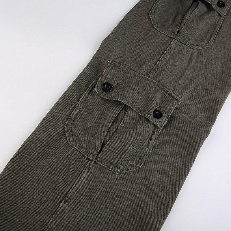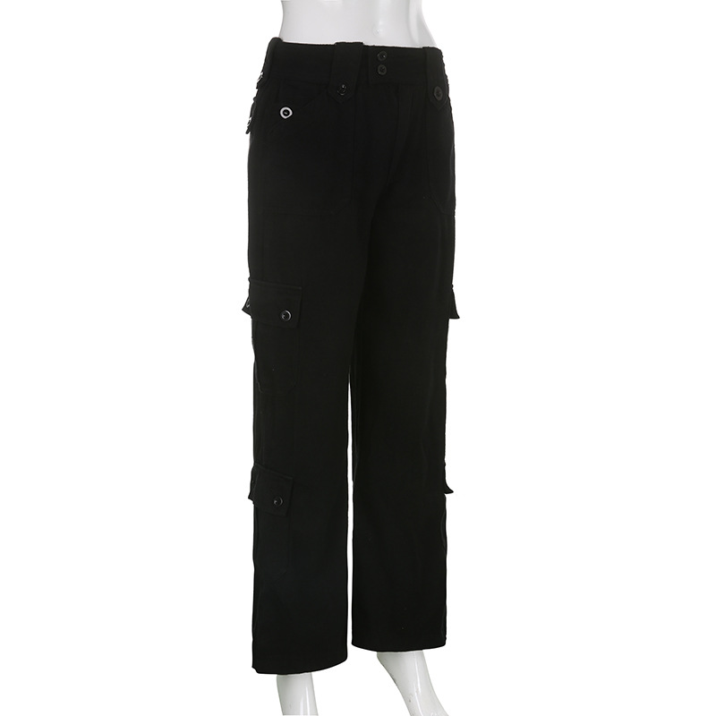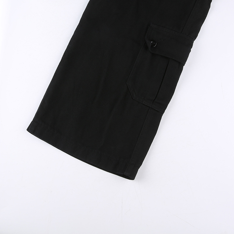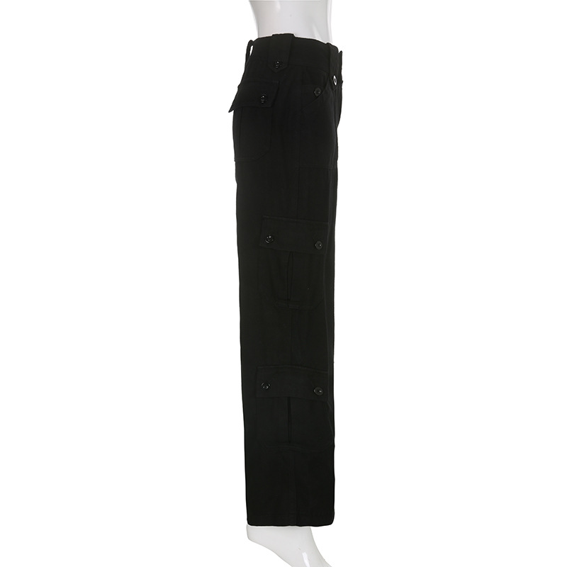 美式街头辣妹跨境2022夏季低腰双排系扣潮人工装多口袋牛仔休闲裤