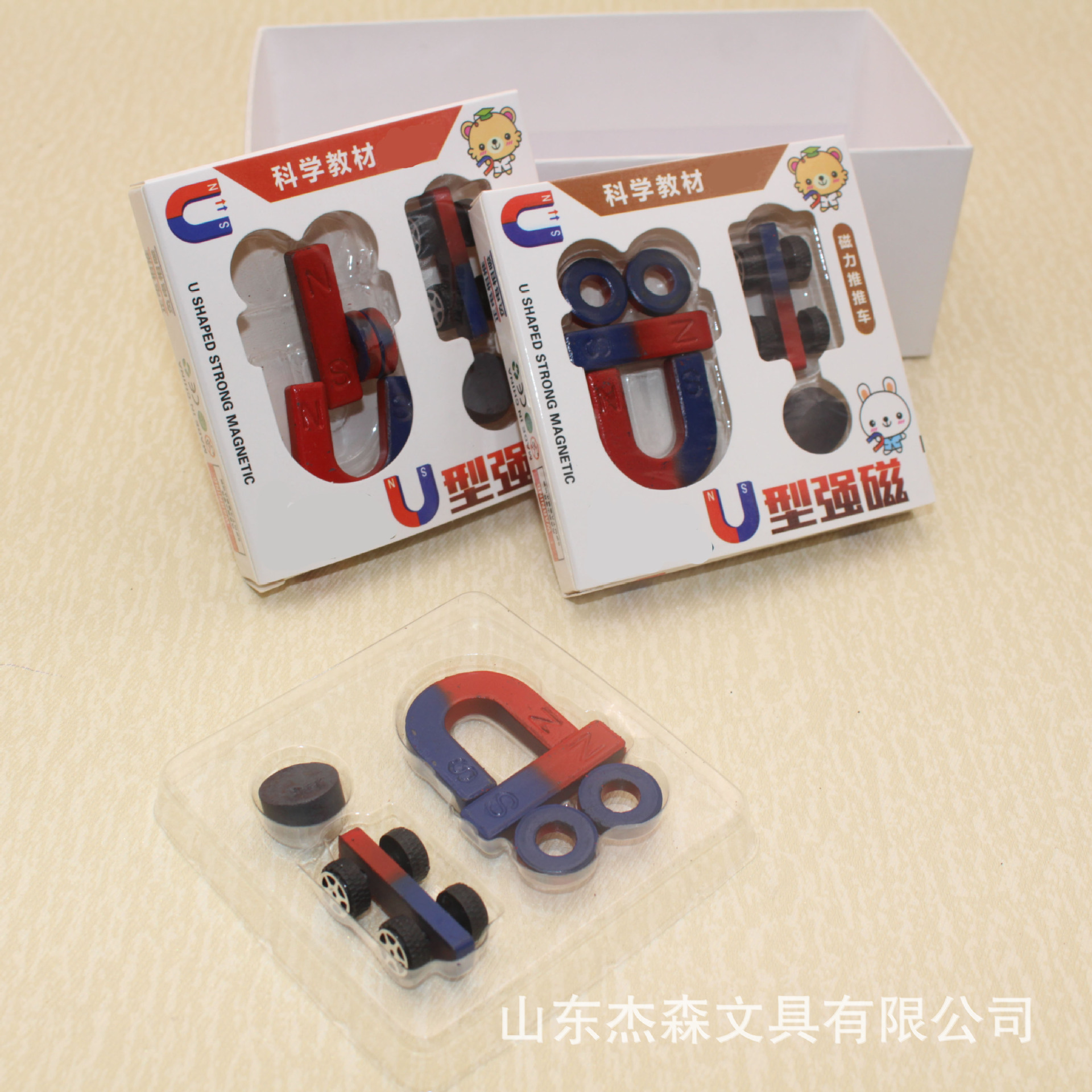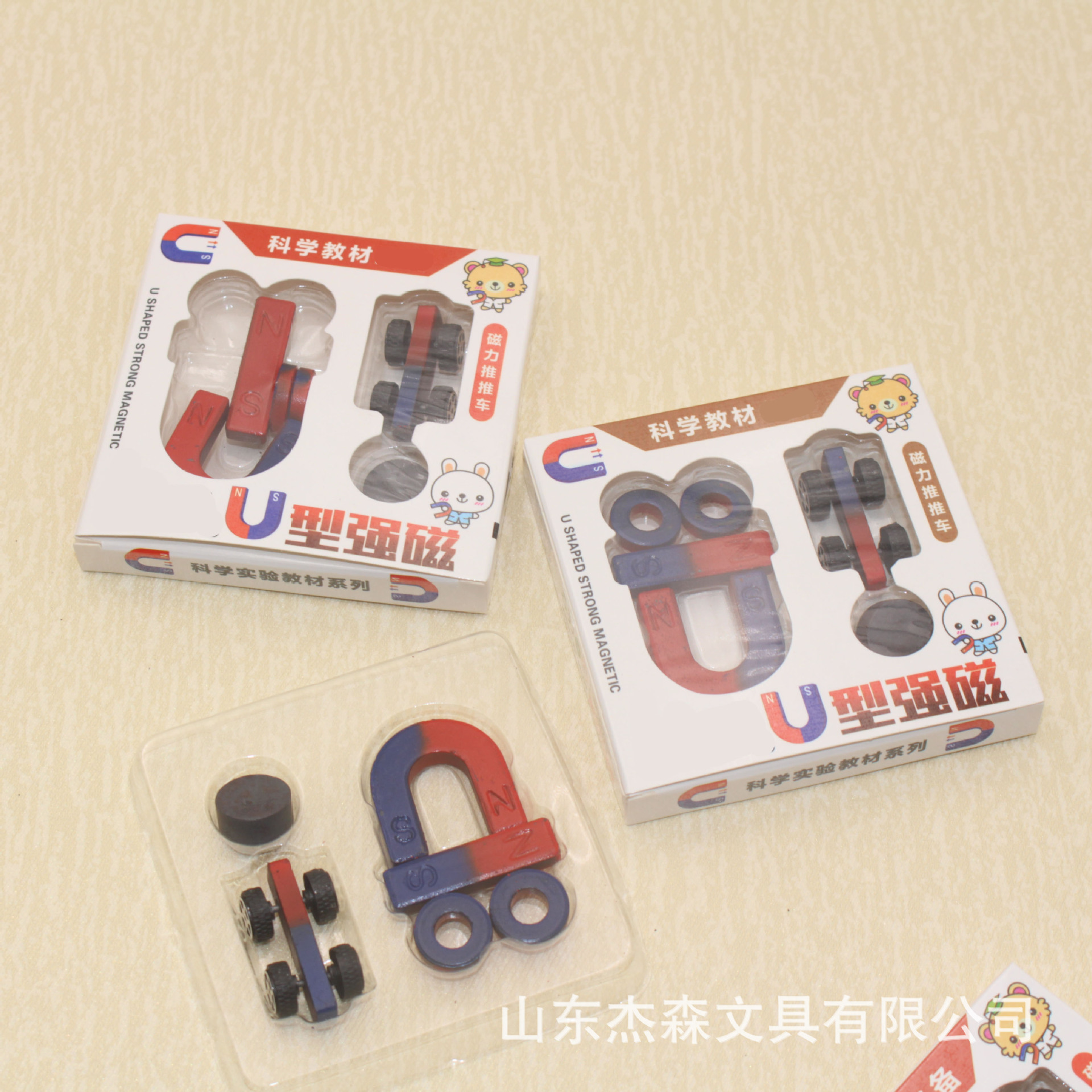 磁力推推车U型磁铁强磁套装 磁性小车学生物理课实验玩具教学磁铁