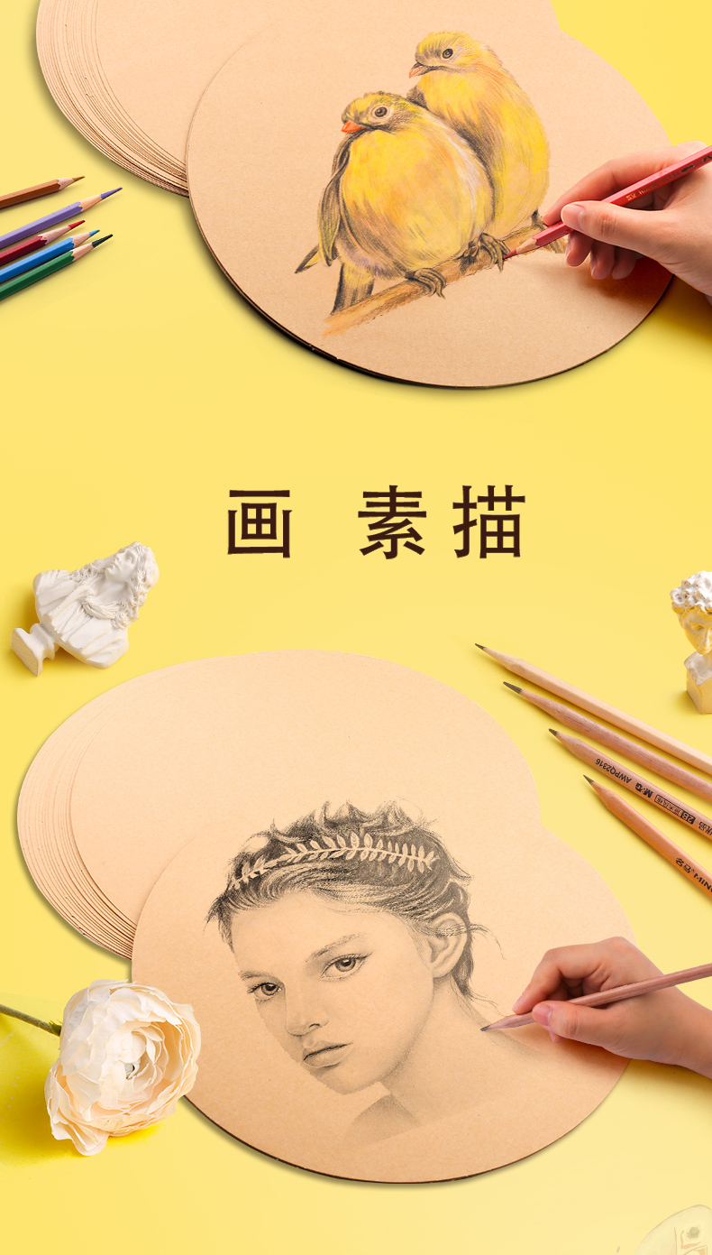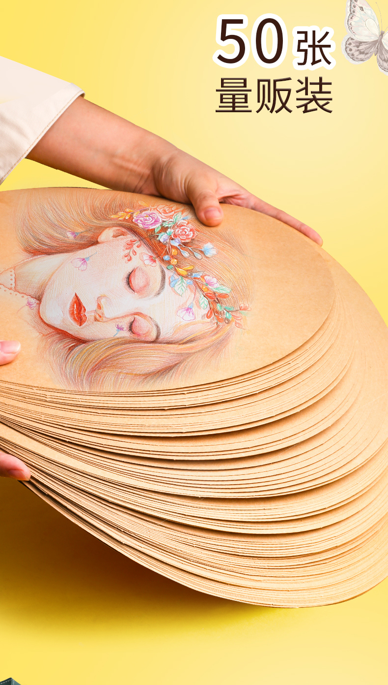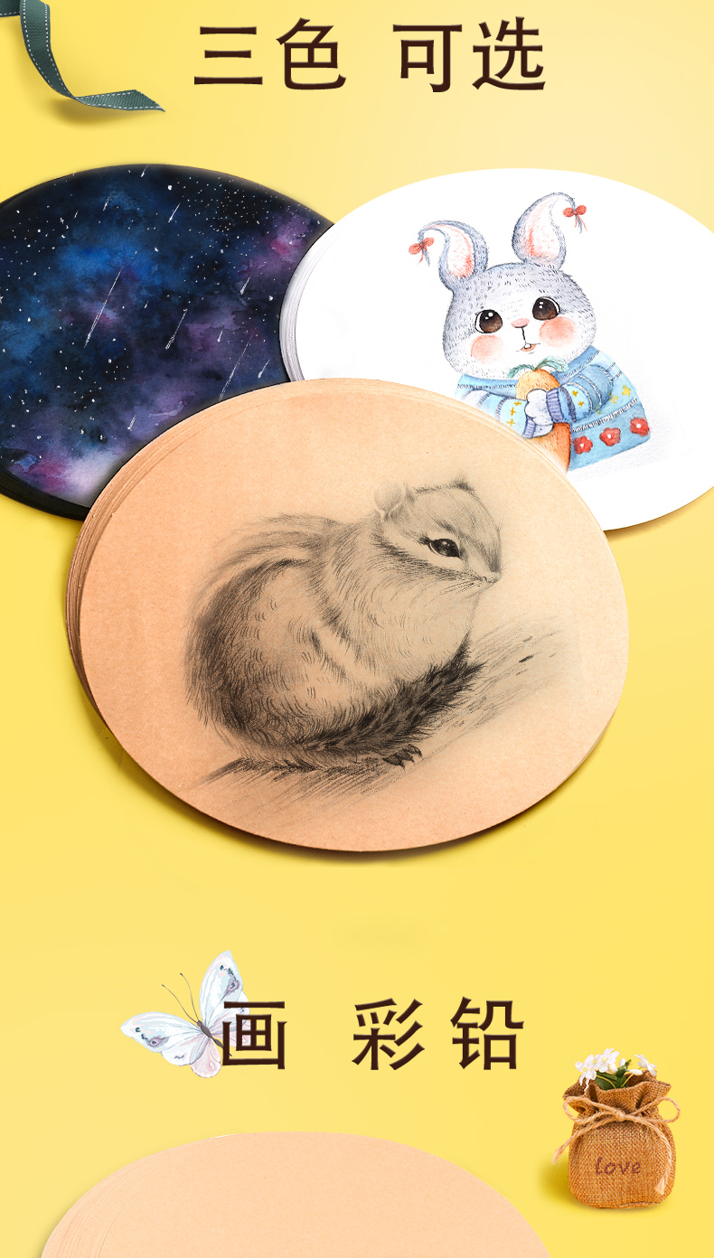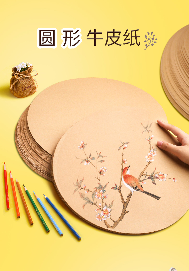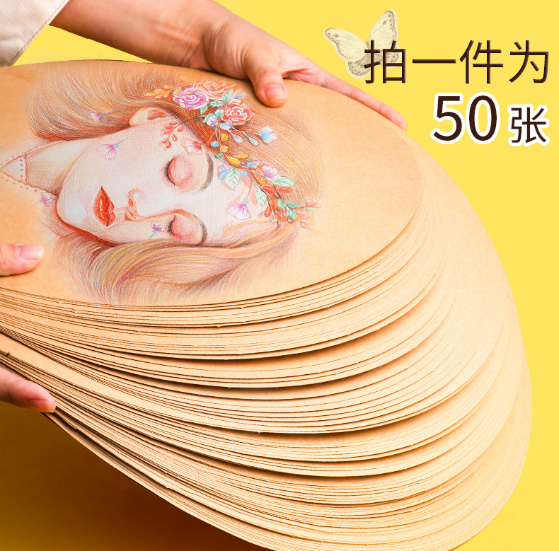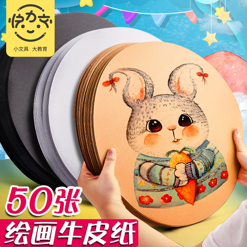 50张圆形牛皮纸加厚画画用美术画纸绘画彩铅水粉素描业手绘卡