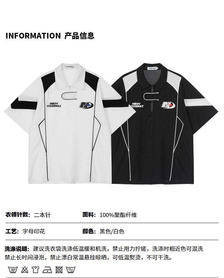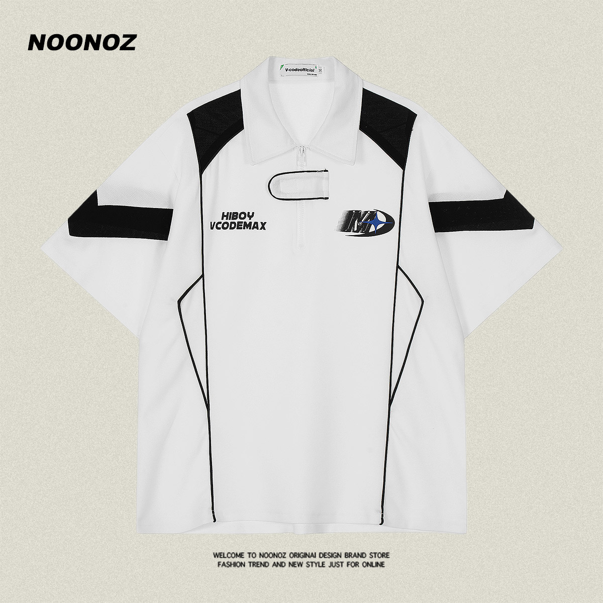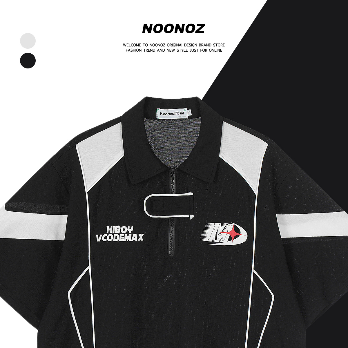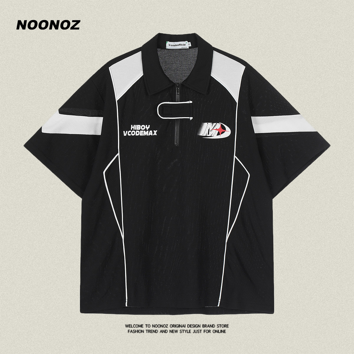 NOONOZ美式潮牌短袖Polo衫男小眾設計感撞色拼接運動學院風情侶裝